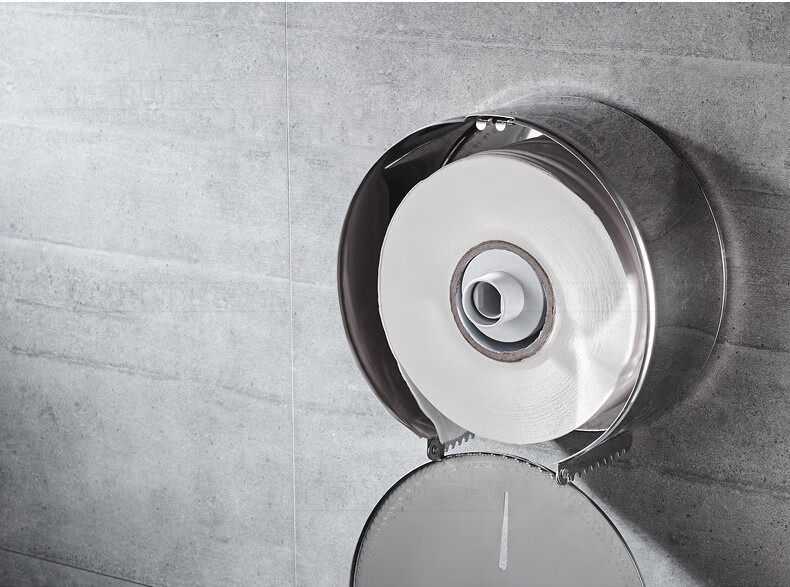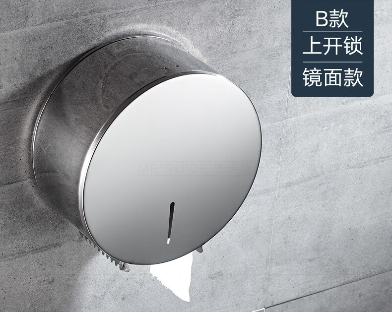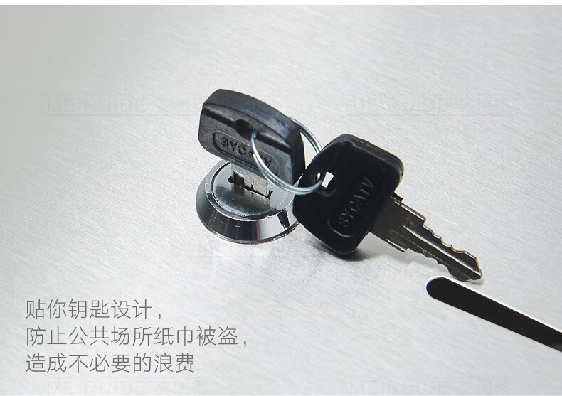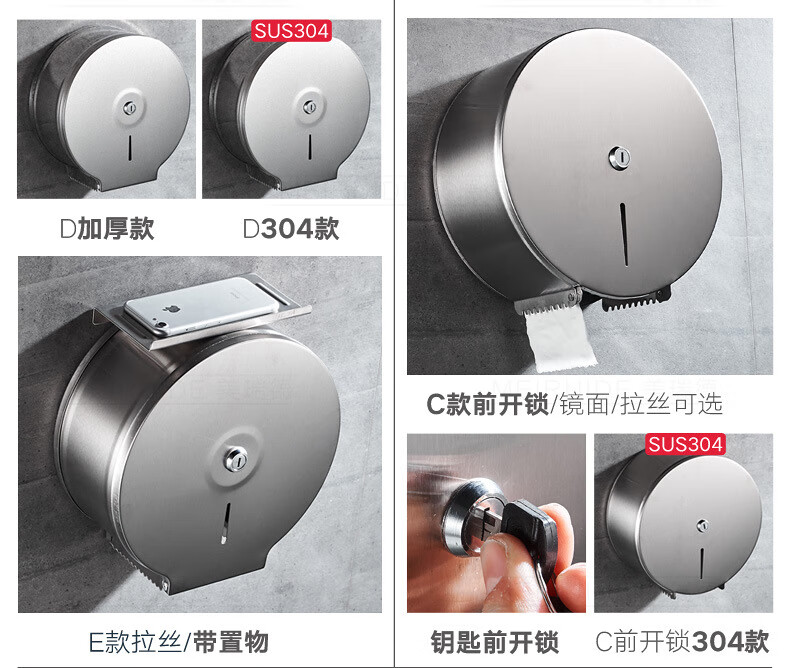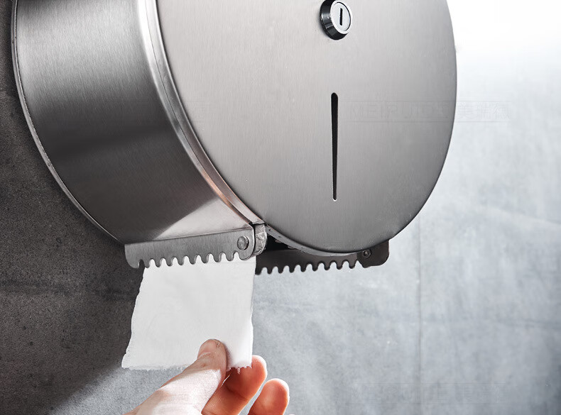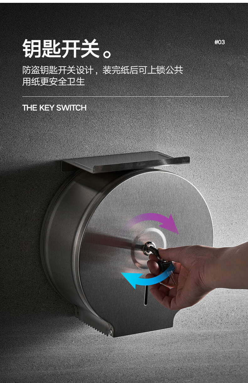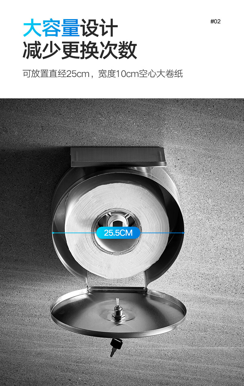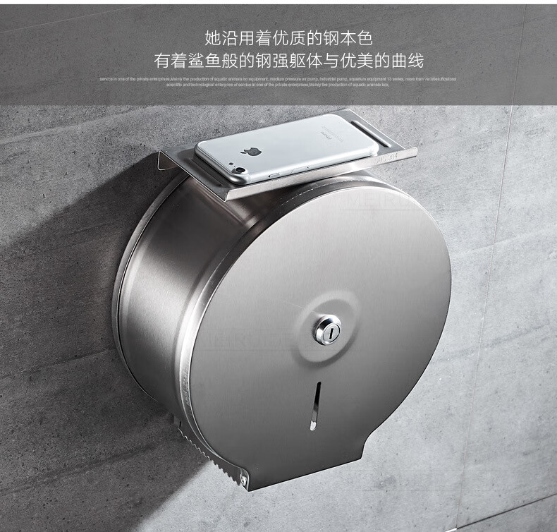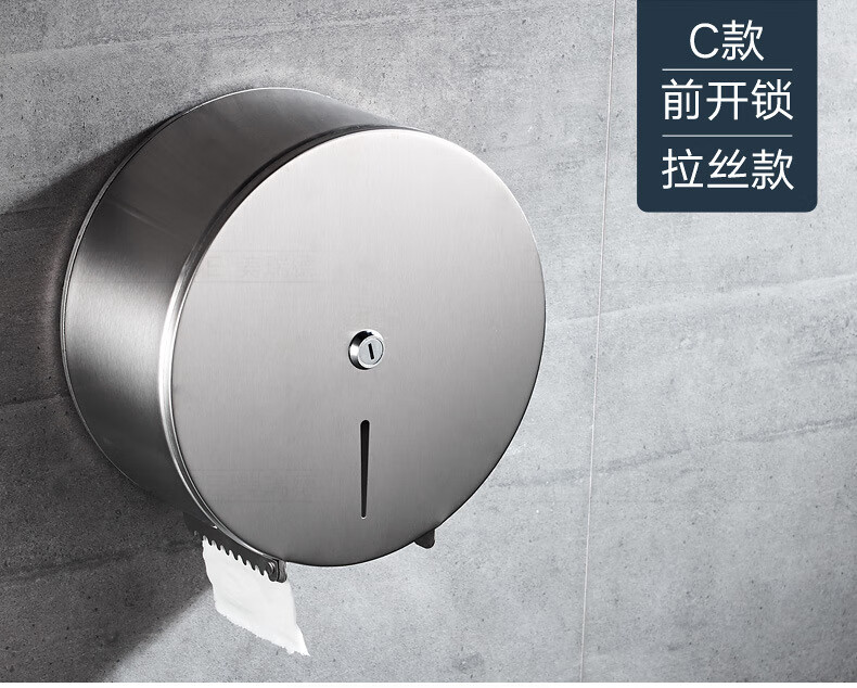 Shantou Lincun 304 stainless steel roll paper box hotel commercial public toilet bathroom wall-mounted large-capacity paper towel holder brushed style + key