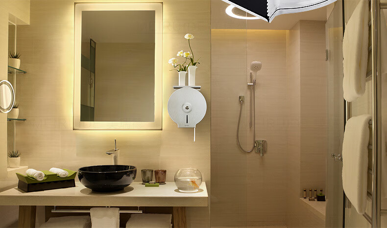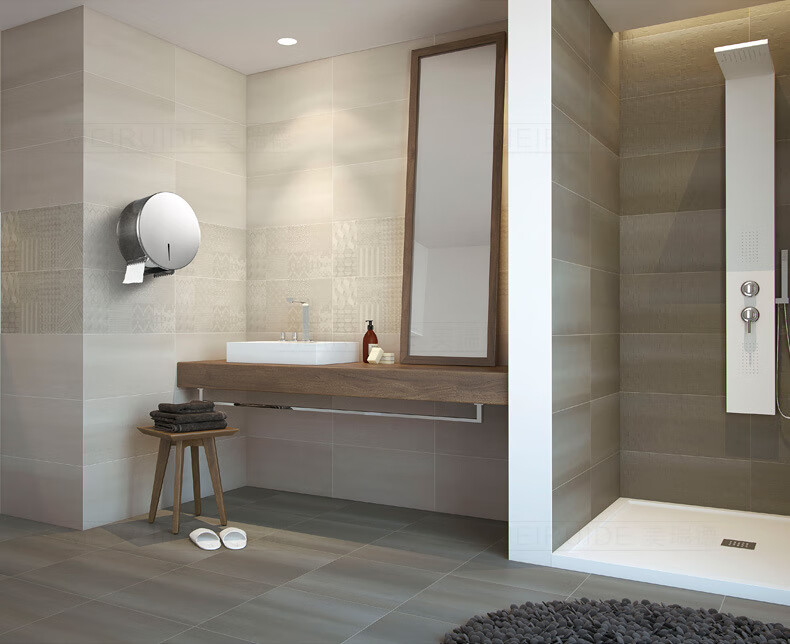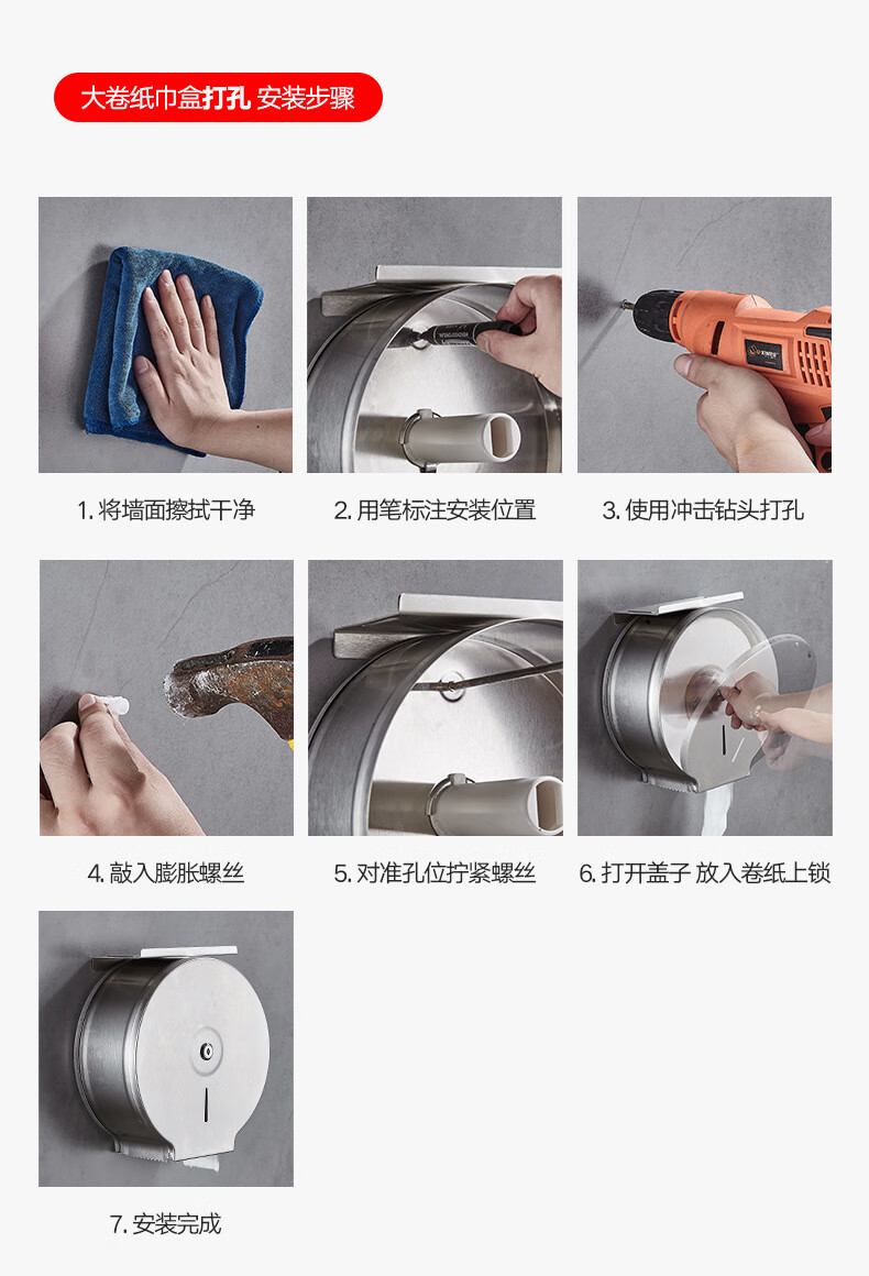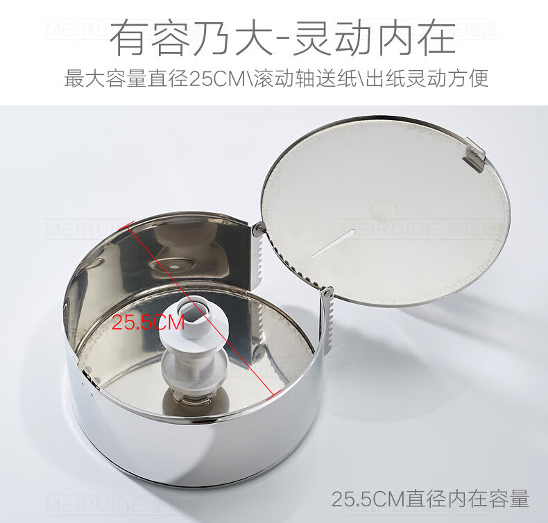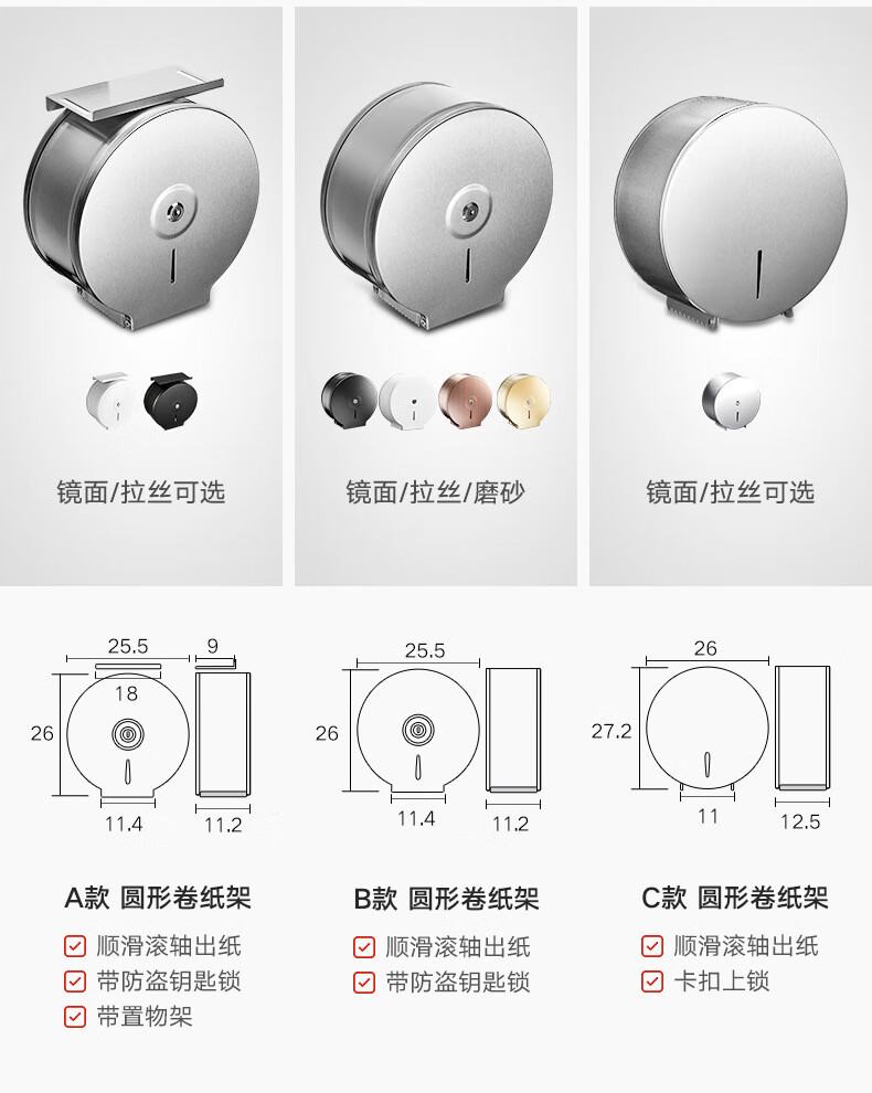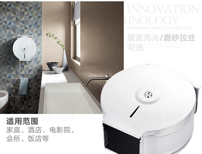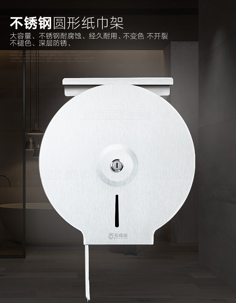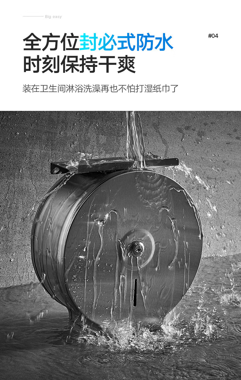 Shantou Lincun 304 stainless steel roll paper box hotel commercial public toilet bathroom wall-mounted large-capacity paper towel holder brushed style + key