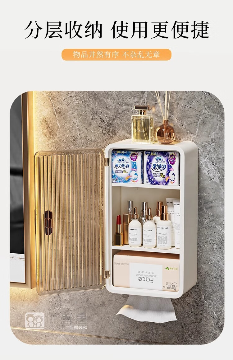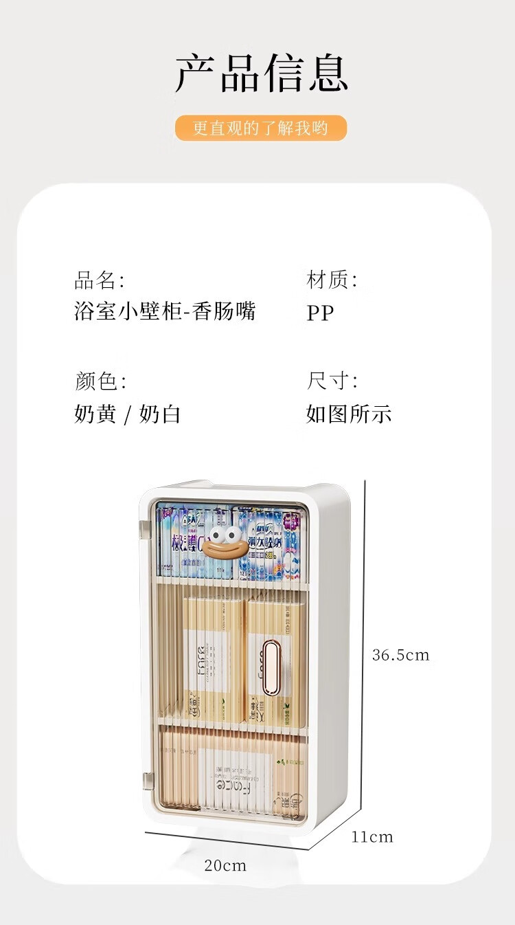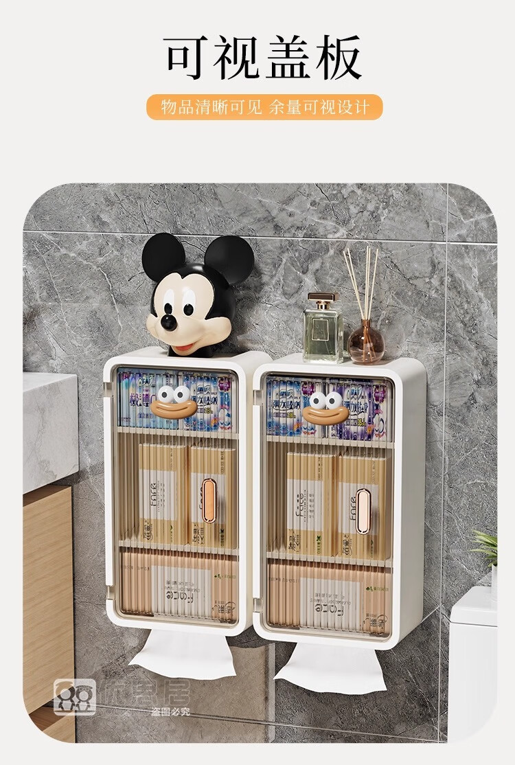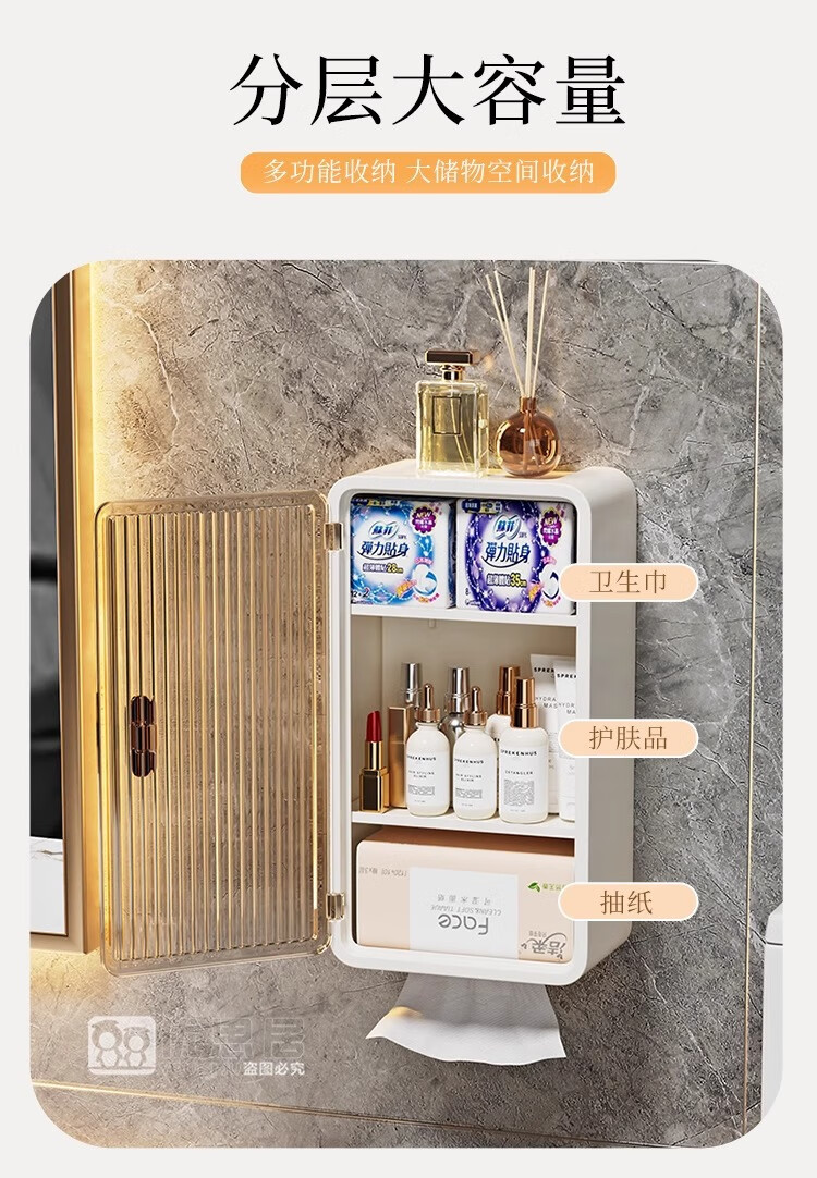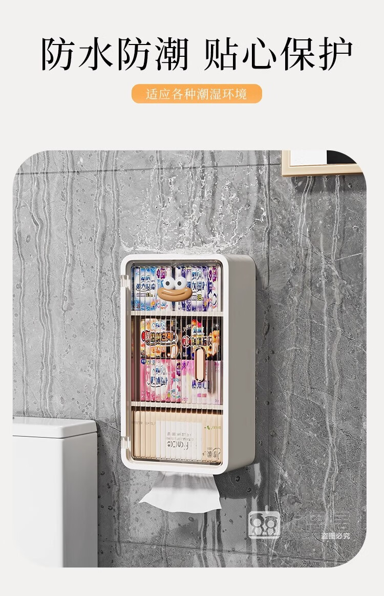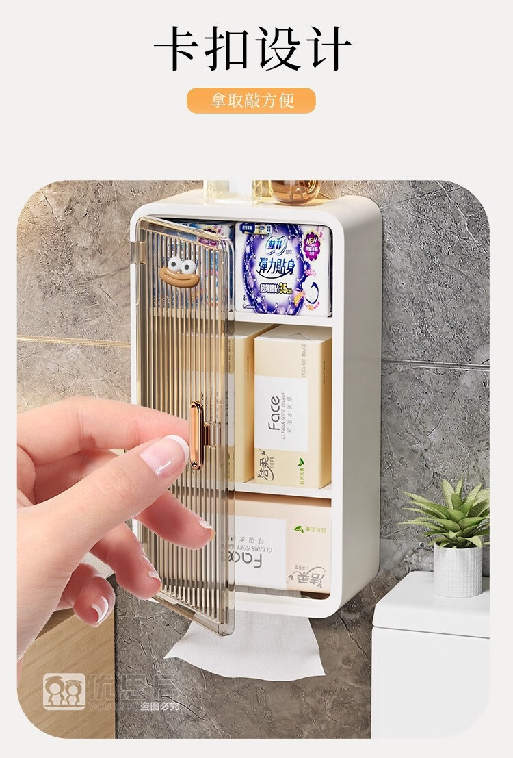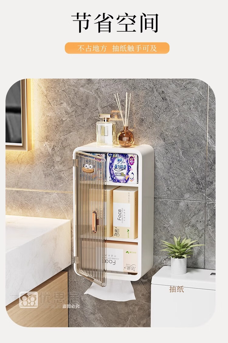 Shantou Lincun customized facial tissue and sanitary napkin storage box wall-mounted bathroom toilet tissue box storage rack toilet paper box (2 pieces) sausage mouth milk yellow with partition/no partition