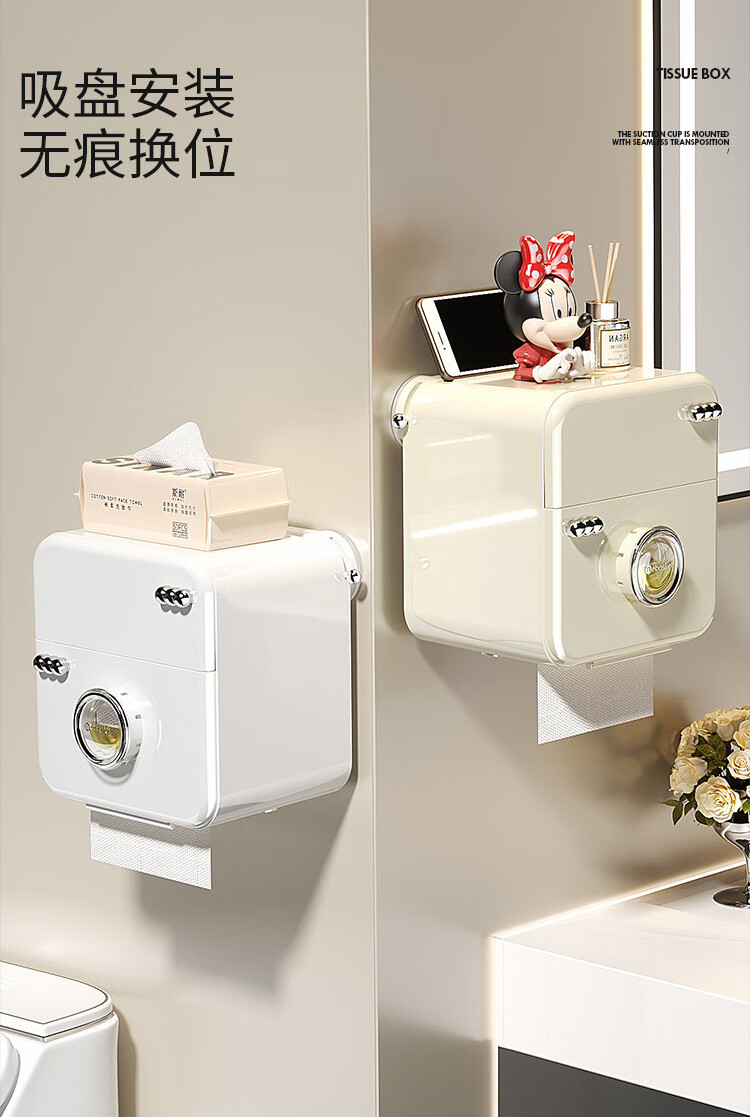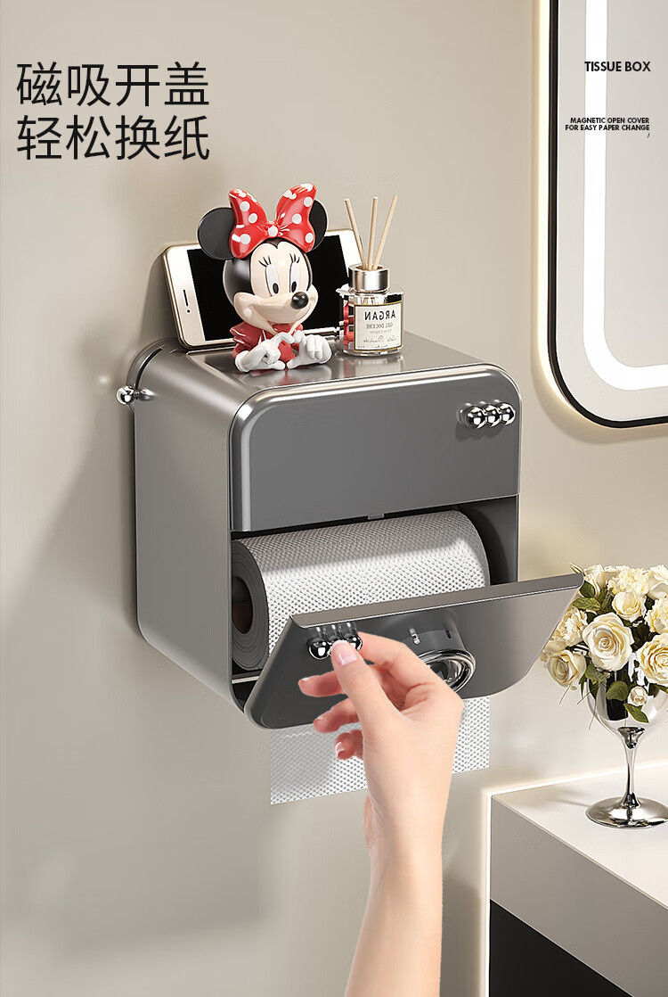 Shantou Lincun Suction Cup Bathroom Aromatherapy Toilet Paper Box No Punching Toilet Tissue Box Bathroom Wall-Mounted Toilet Paper Shelf Gun Ash Single Pack