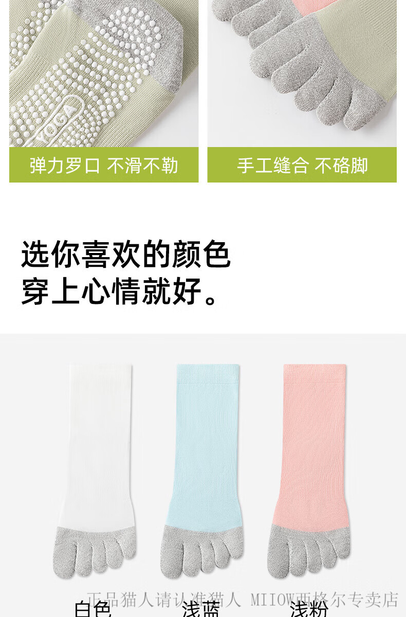 Catman Five Finger Yoga Socks Women's Silicone Anti-Slip Pilates Indoor Sports Fitness Dancing Split Toe Floor Socks One Size (Light Blue + Green) 2 Pairs
