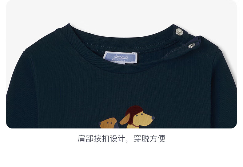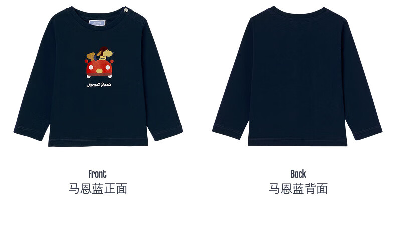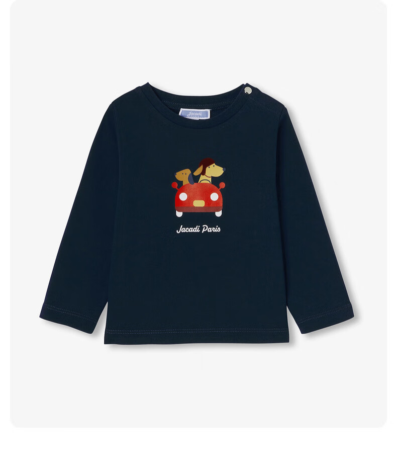 JACADI French boys pure cotton long-sleeved T-shirt spring new versatile round neck top 2044357 Marne blue 112 86 /24M