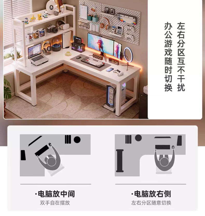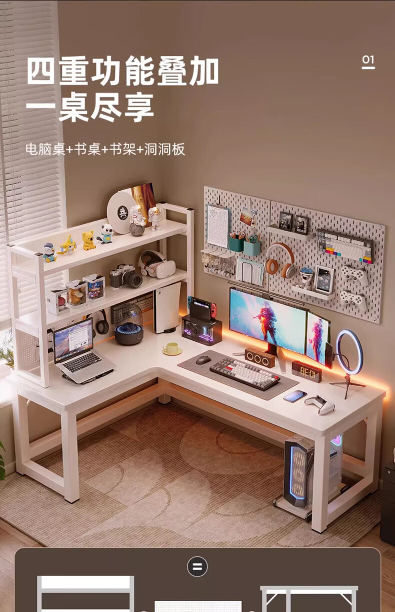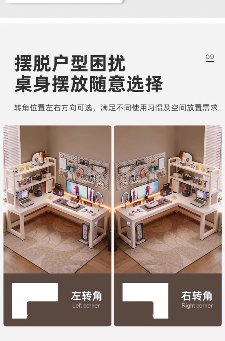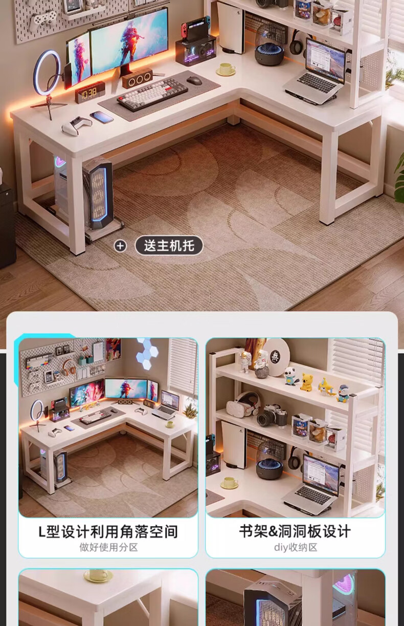Shouzheng corner computer desk desktop e-sports table home L-shaped desk bedroom study table simple office desk workbench single table + storage rack milky white right style - free host holder 180x120x75cm