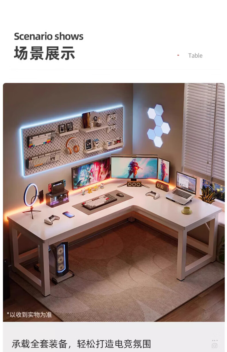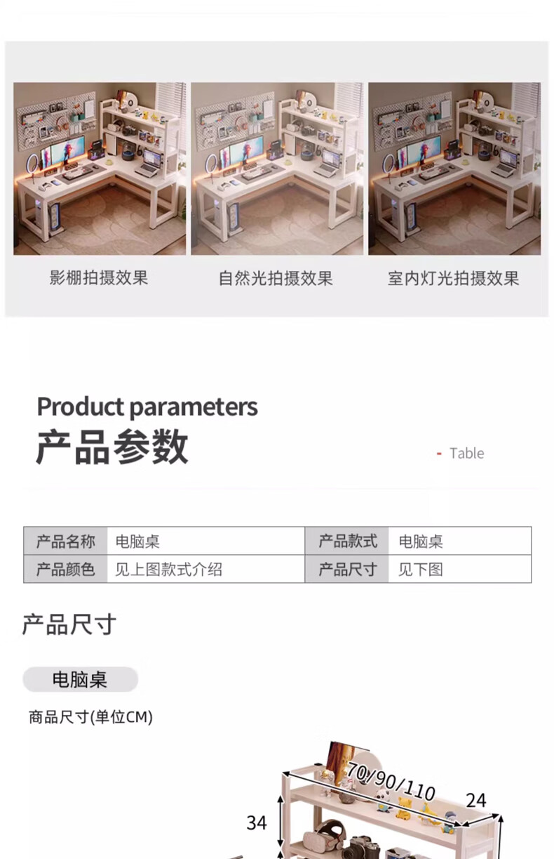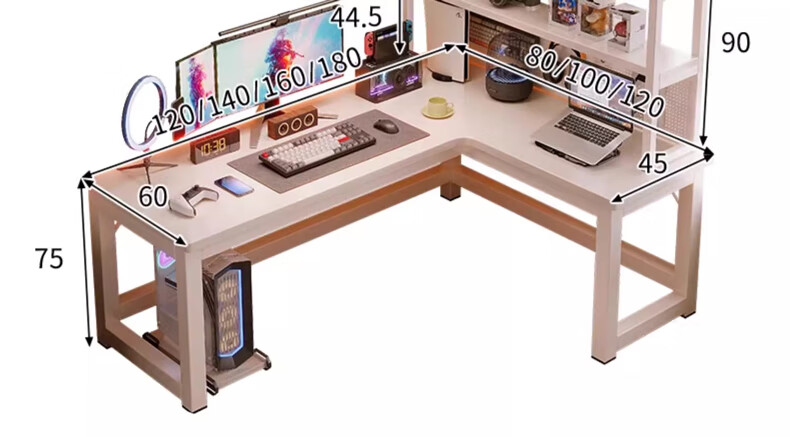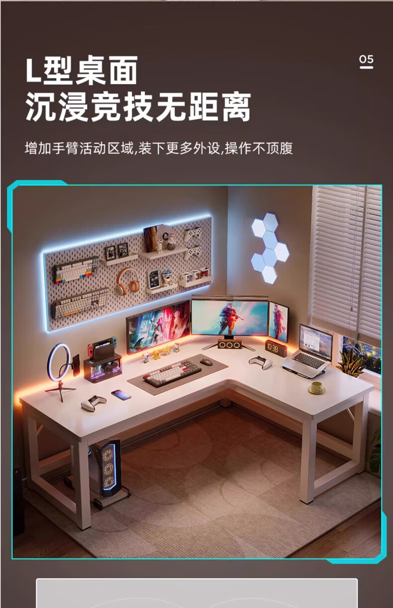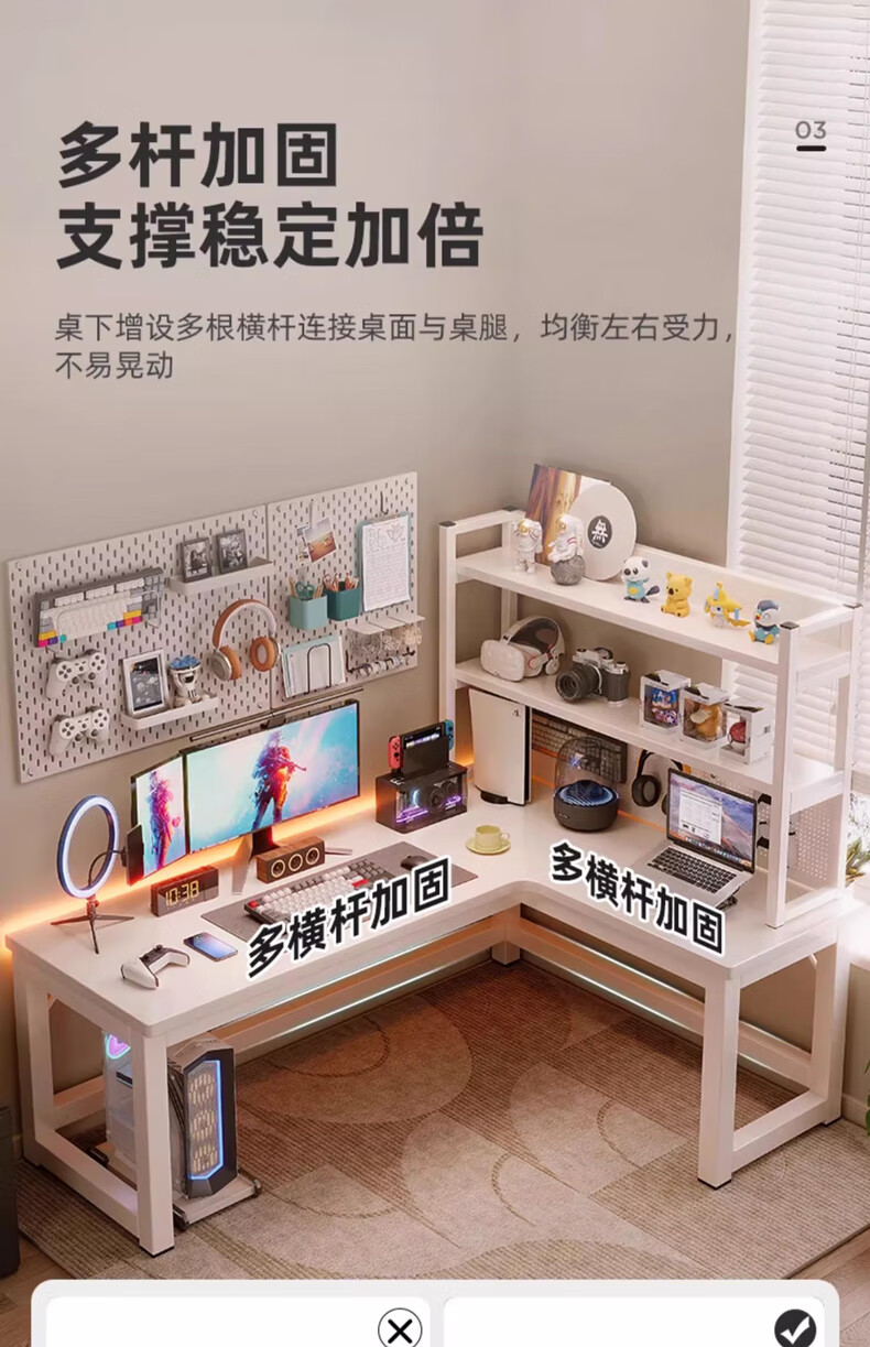Shouzheng corner computer desk desktop e-sports table home L-shaped desk bedroom study table simple office desk workbench single table + storage rack milky white right style - free host holder 180x120x75cm