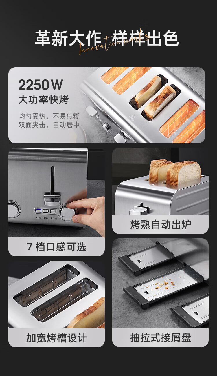 Youpin ecological chain same model Youpin 2024 new toaster toaster commercial hotel 4 pieces 6 pieces 4 pieces upgraded version thickened version manual version