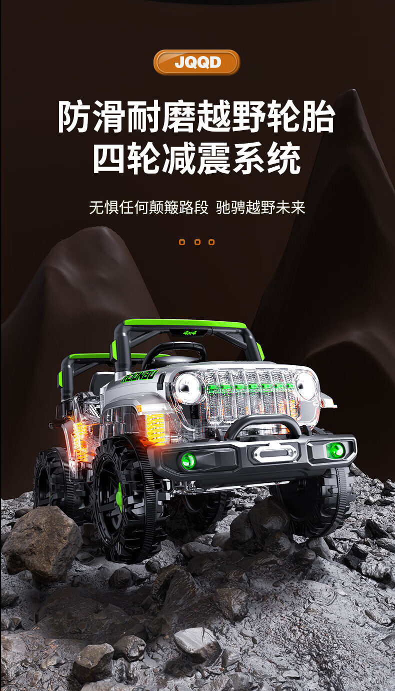 Stroller, children's electric car, four-wheeled, with remote control, baby electric car, four-wheeled off-road vehicle, can sit on children's toy, high color matching + four-wheel drive 12V4.5A battery + full function