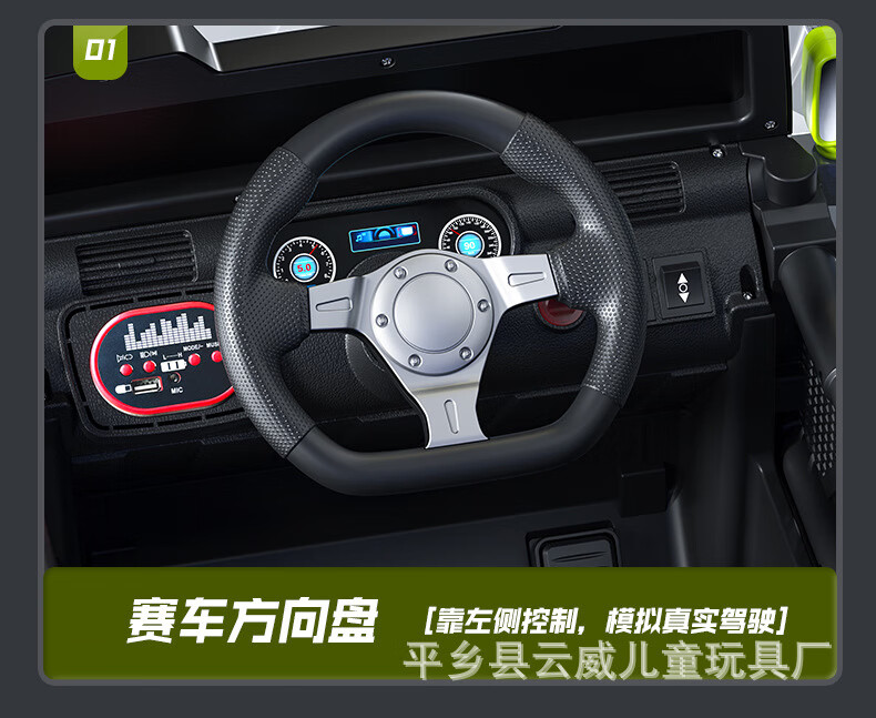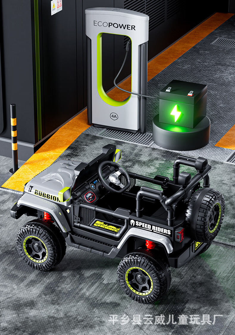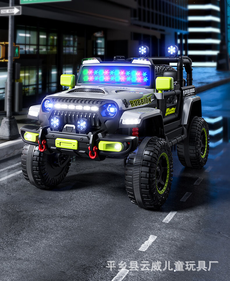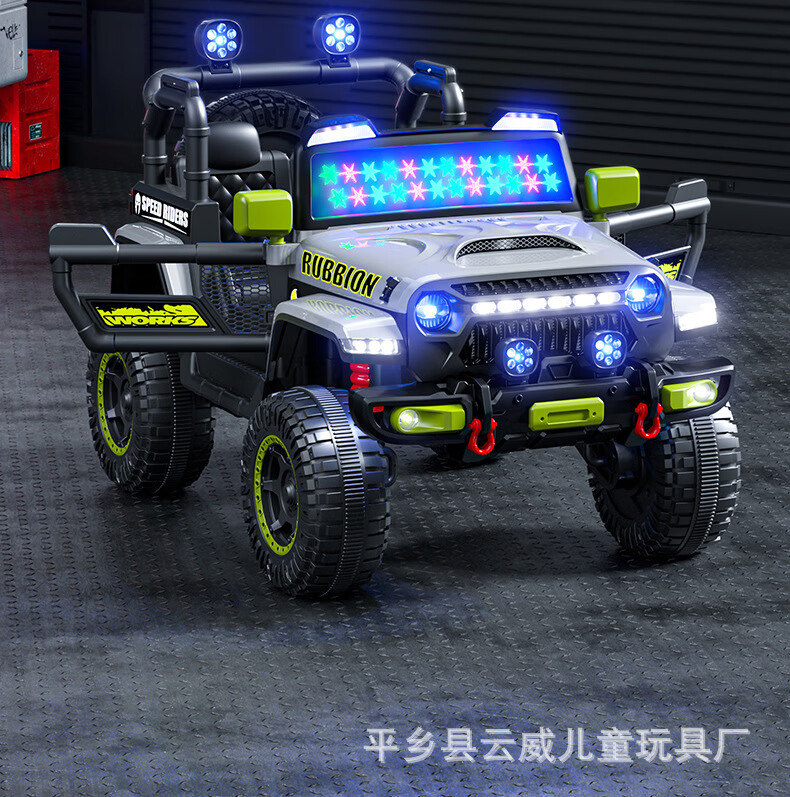 Stroller, children's electric car, four-wheel off-road car, remote control toy car that can seat men and women, children 1-6 years old, high-end painted silver-12v7ah-four-wheel drive-full flashing lights + leather seat