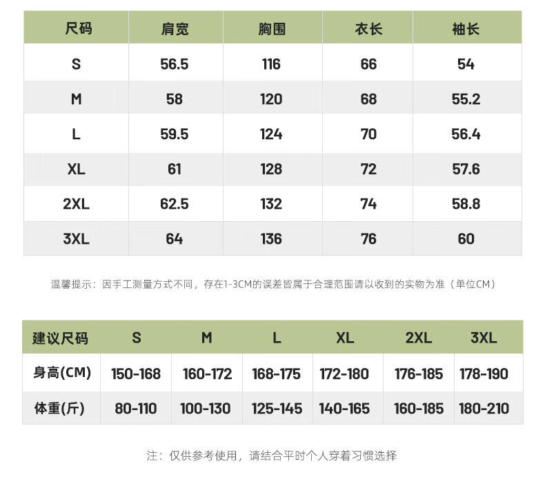 China (cm) 165 / 88-90 170 / 96-98 175 / 108-110 180 / 118-122 185 / 126-130
