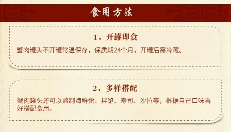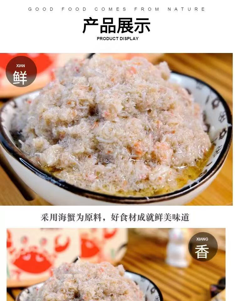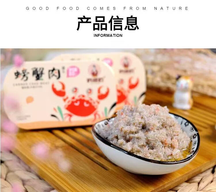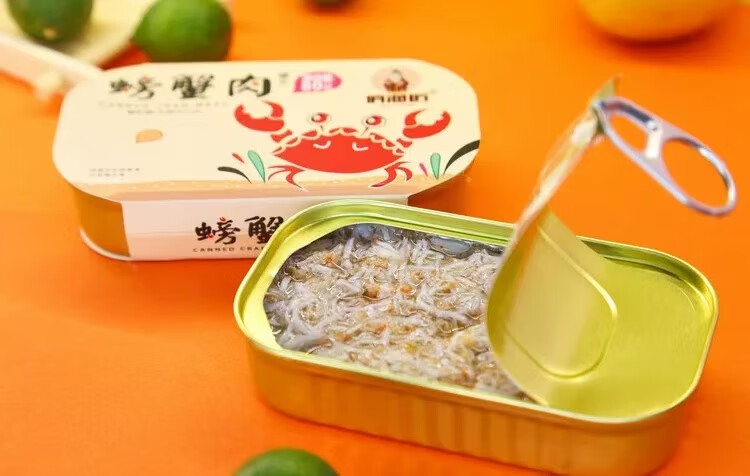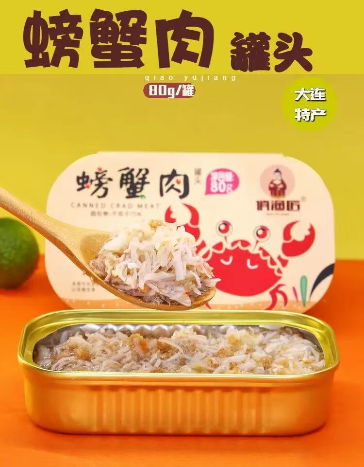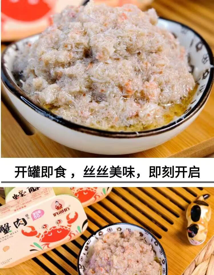 Ready-to-eat canned crab meat 80g, seafood, crab meat fillet, Dalian specialty crab meat, cooked food for rice and sushi snacks, 4 cans*80g/can