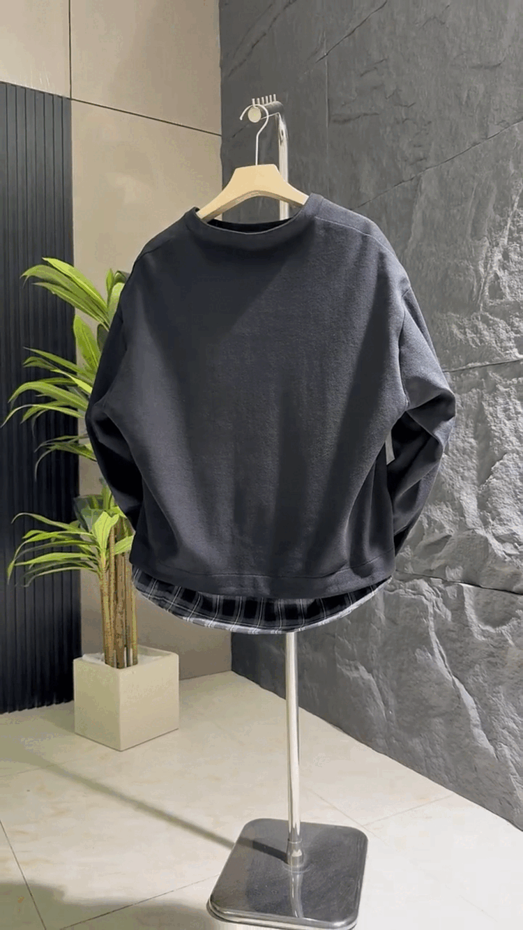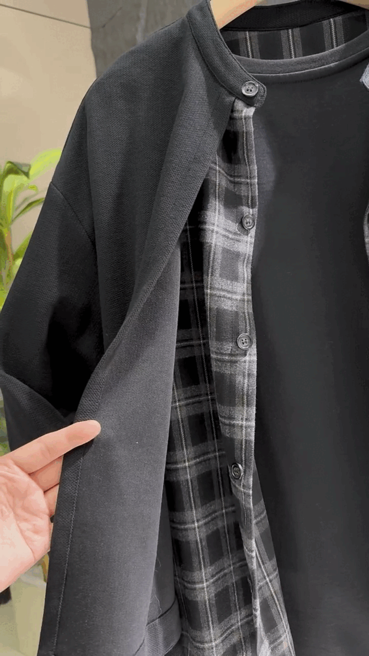 Xiaohongshu Autumn New Simple Fake Two Piece Henley Collar Cardigan Sweater Men's Trendy Loose and Versatile Black M 100-120Jin Jin is equal to 0.5kg