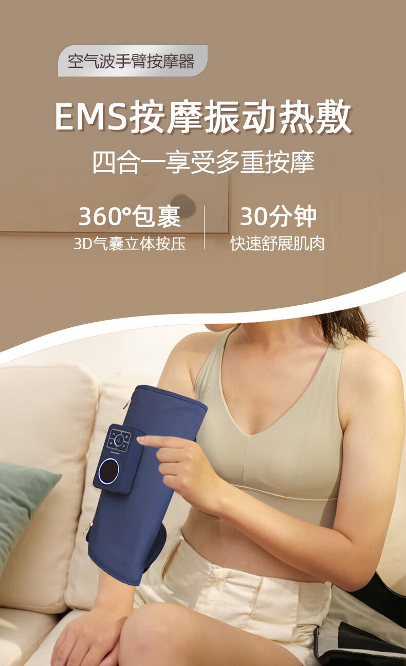 Lingkai rechargeable pulse arm massager, electric air pressure kneading arm pain and numbness plus a pair of pulse + air pressure massage hot compress