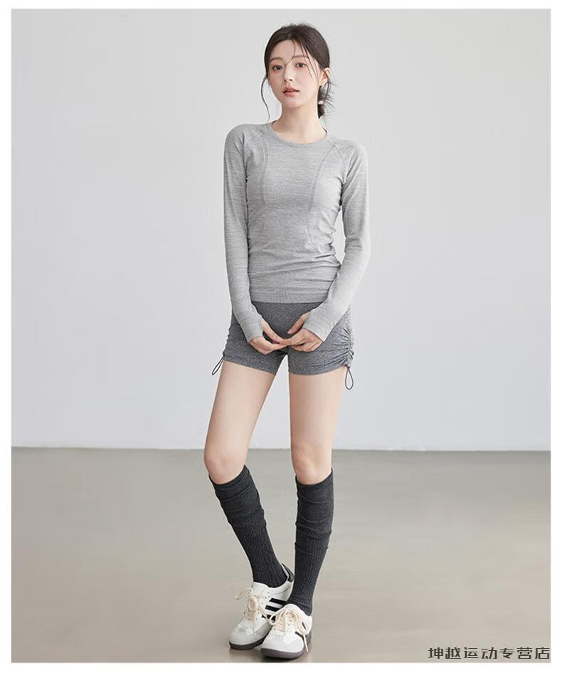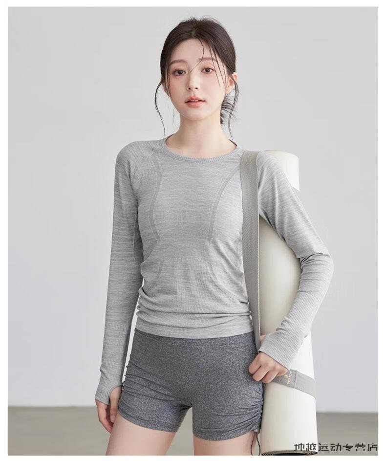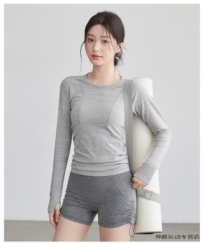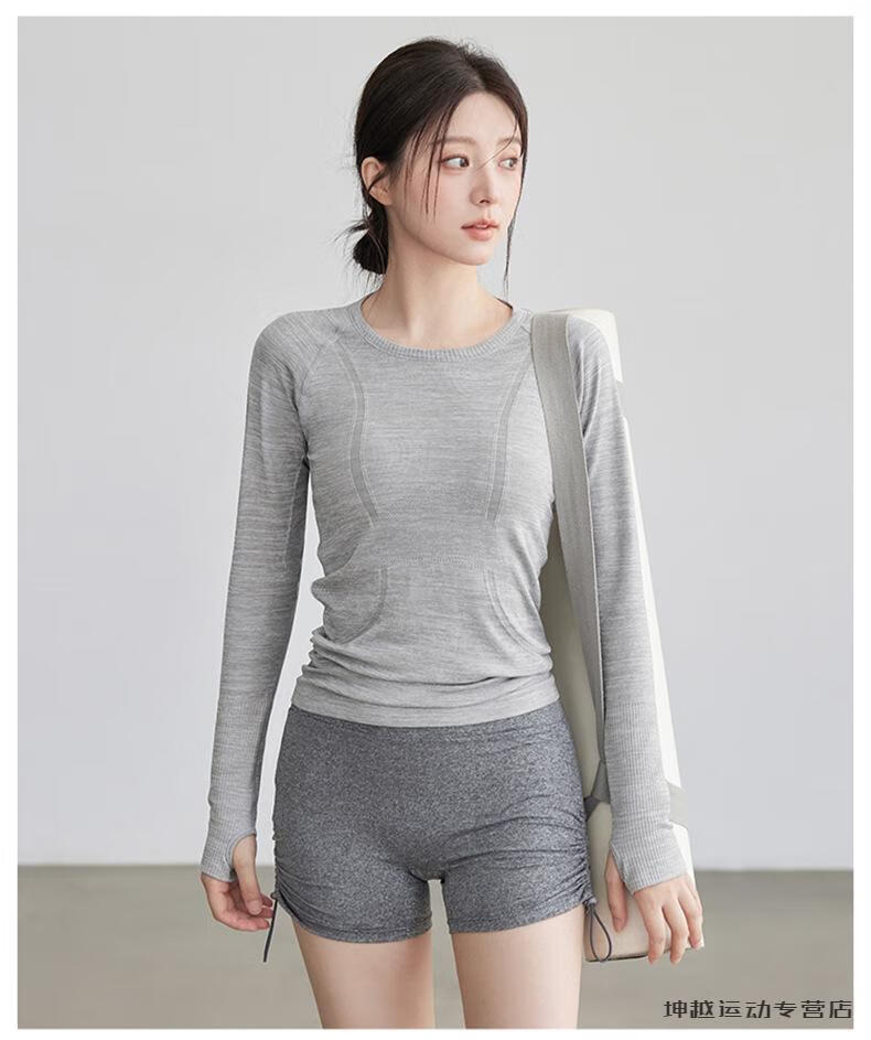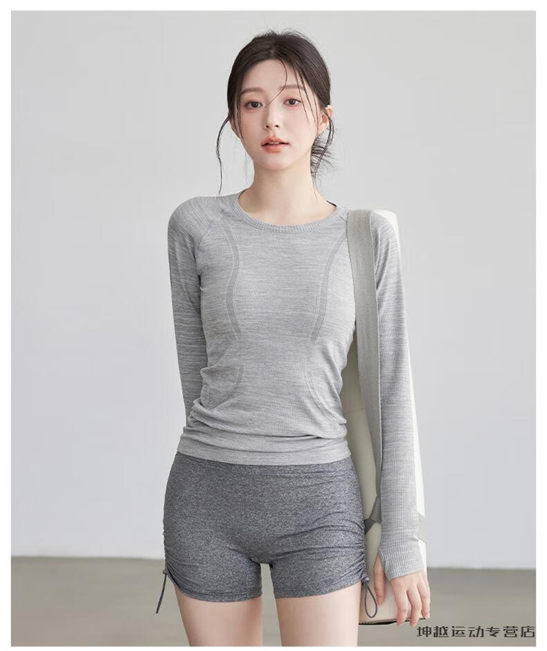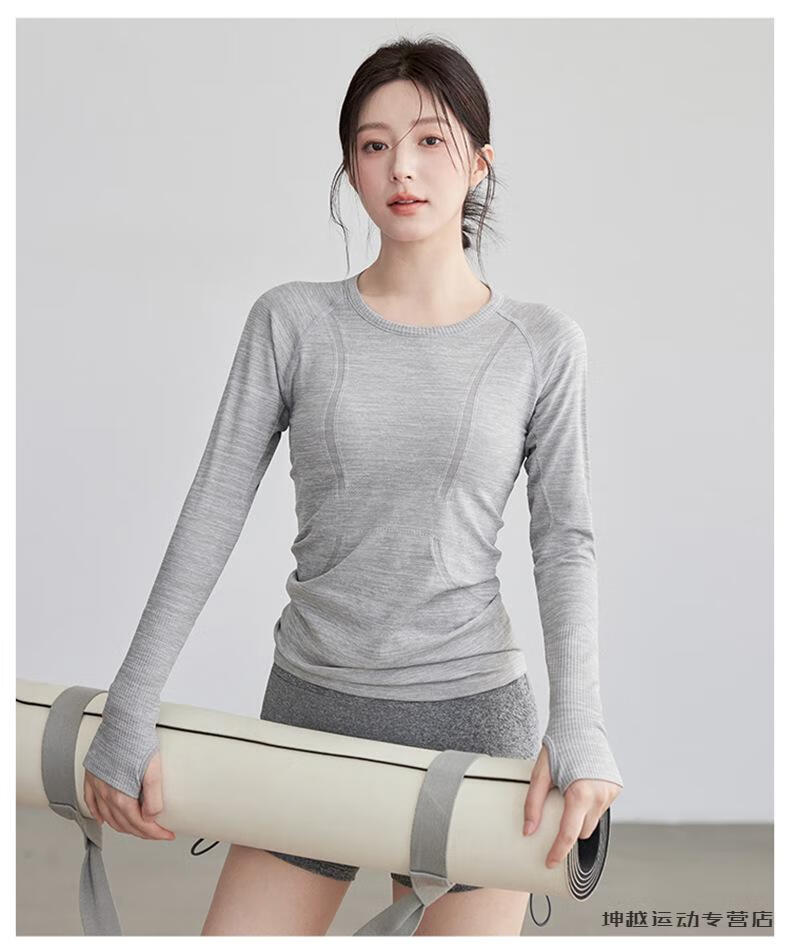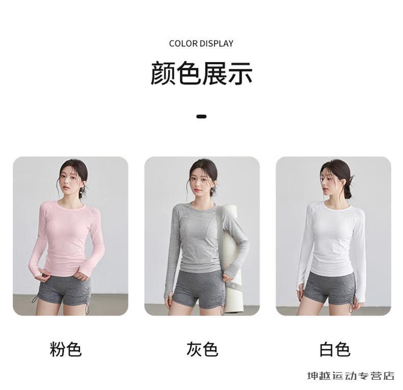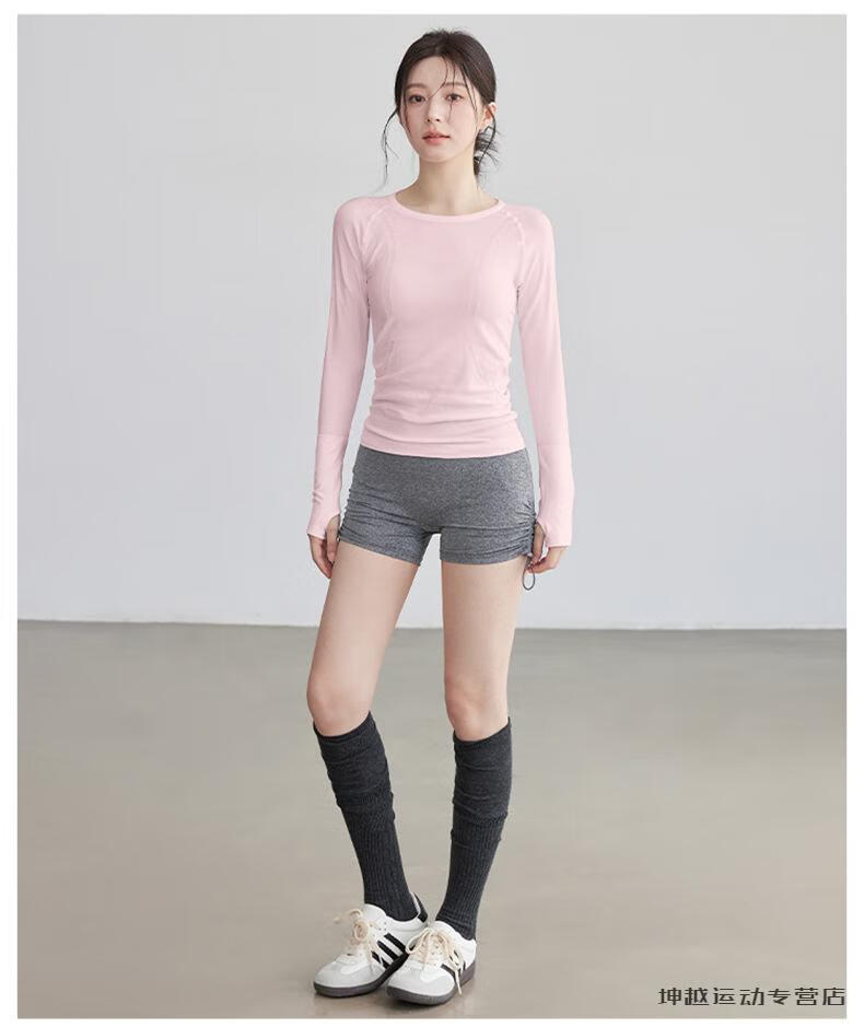 Youyou round neck quick-drying yoga clothes for women slim and elastic sports long-sleeved Pilates running training fitness clothes Falling cherry powder seamless one-piece weaving S recommended 80-95 Jin Jin equals 0.5 kg