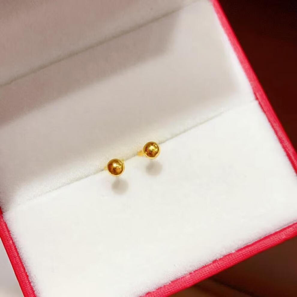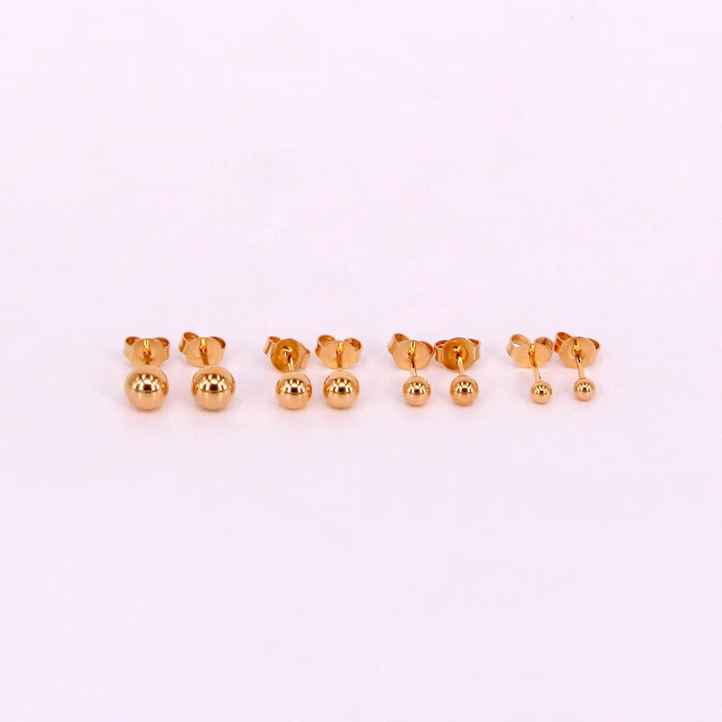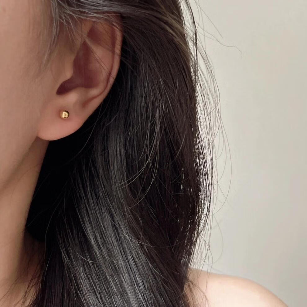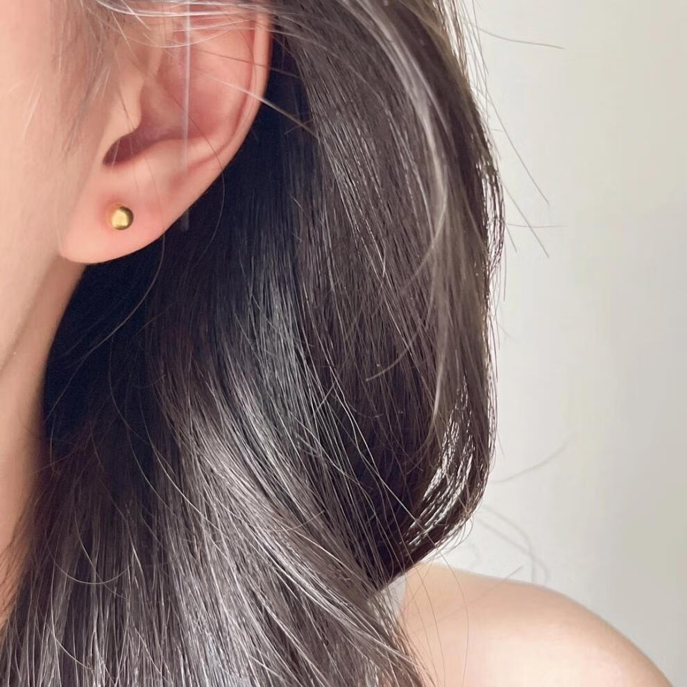 Pumanzhuji is highly practical, retro, compact, 18K gold gold bean gold ball for daily commuting, ear piercing, gold-covered, anti-allergic and versatile, a pair of 3MM bean earrings, titanium anti-allergenic