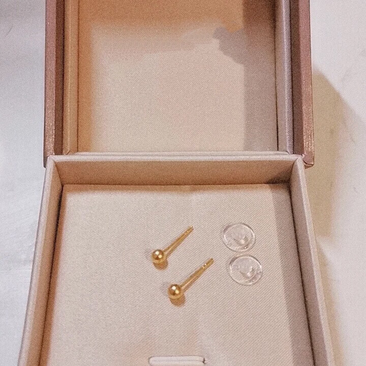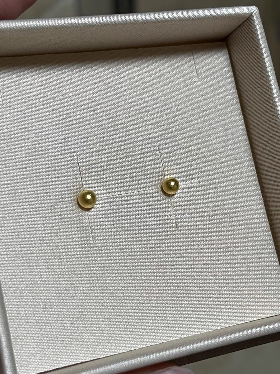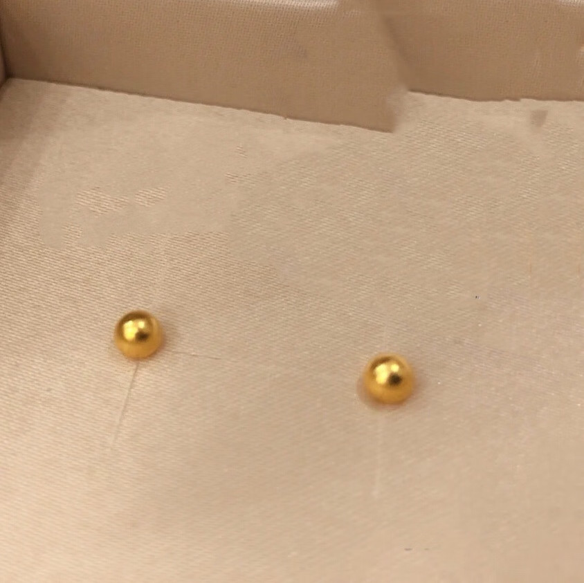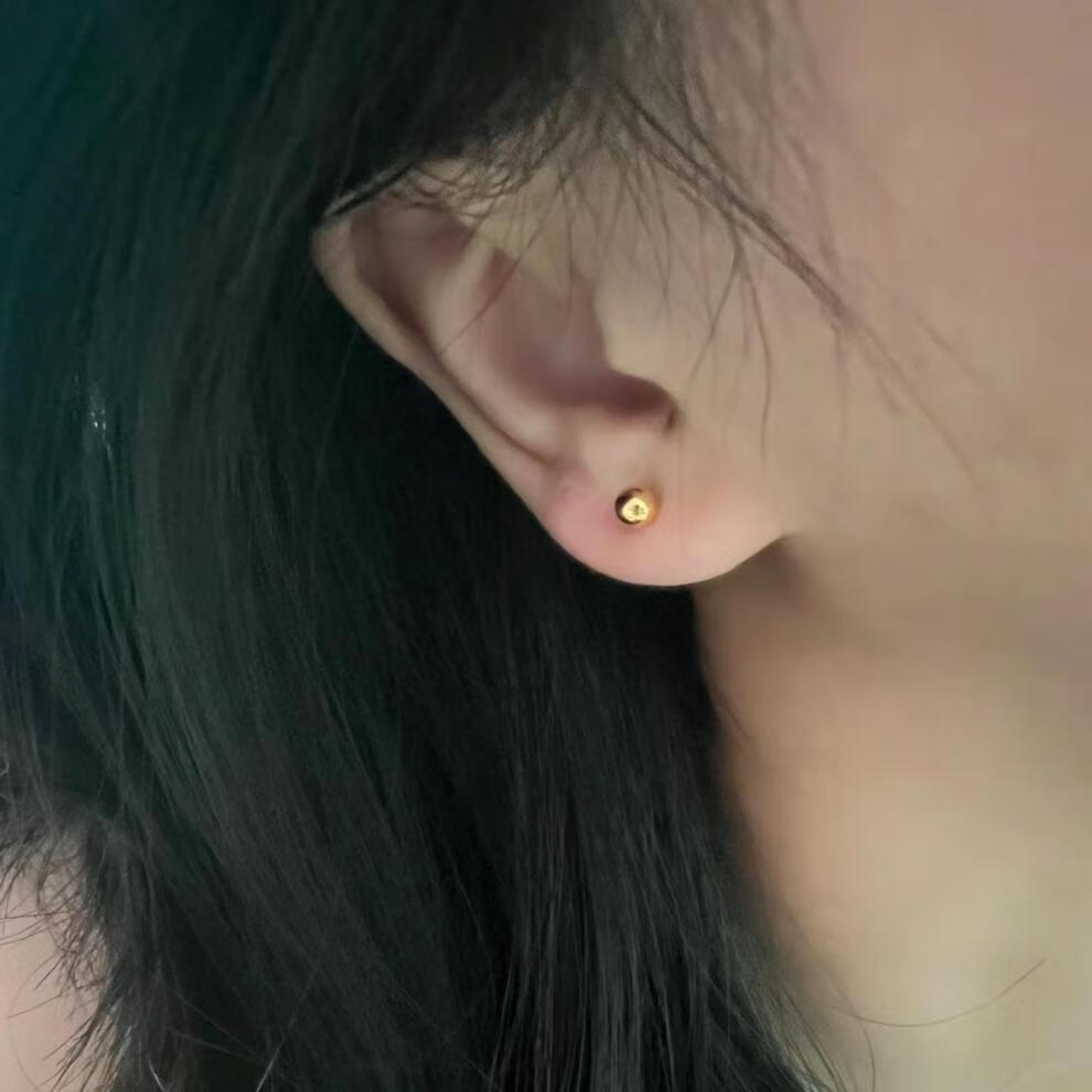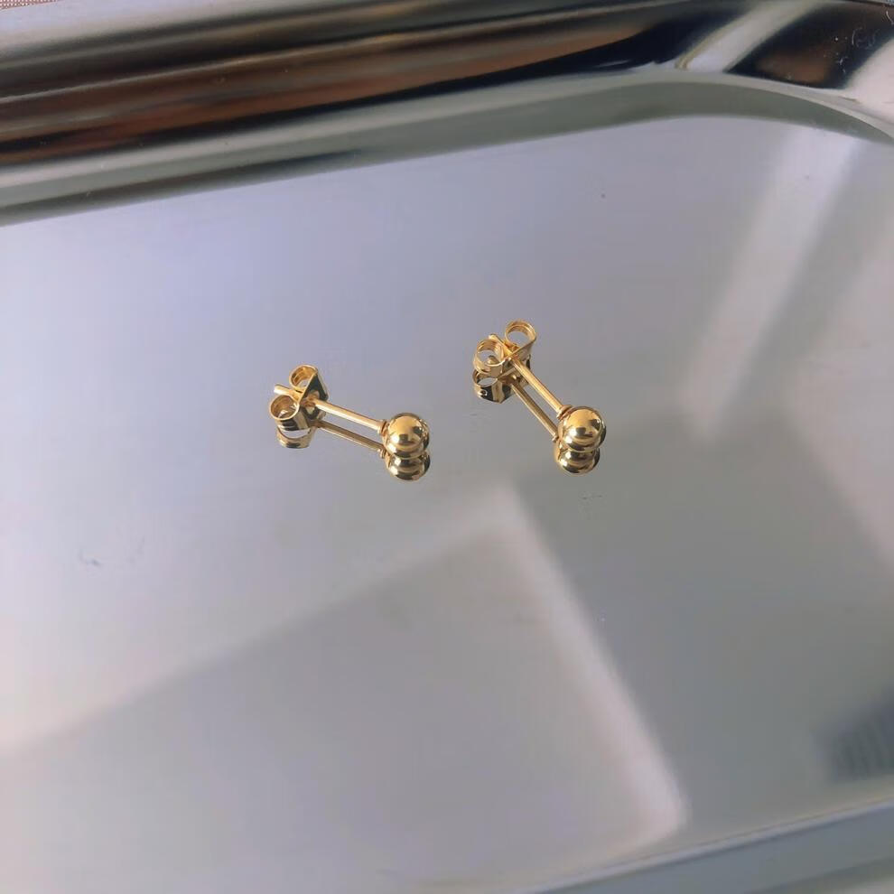 Pumanzhuji is highly practical, retro, compact, 18K gold gold bean gold ball for daily commuting, ear piercing, gold-covered, anti-allergic and versatile, a pair of 3MM bean earrings, titanium anti-allergenic