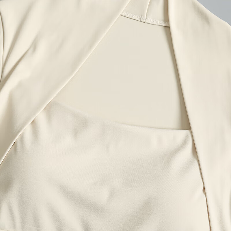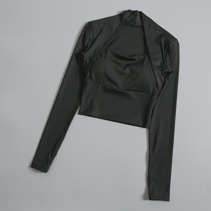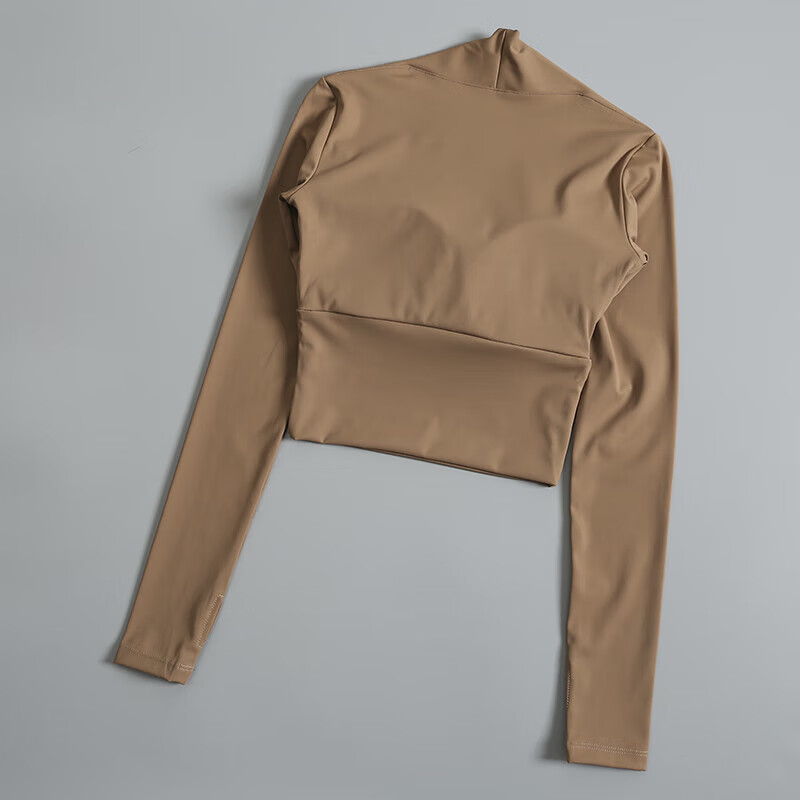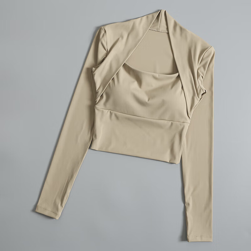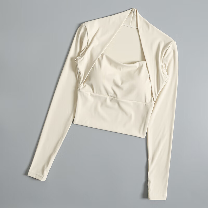 Ayub Flagship Store Sports Top Women's Spring and Summer Vacation Two-piece with Breast Pads Tight Long Sleeve Pilates Training Fitness Wear Milky White S