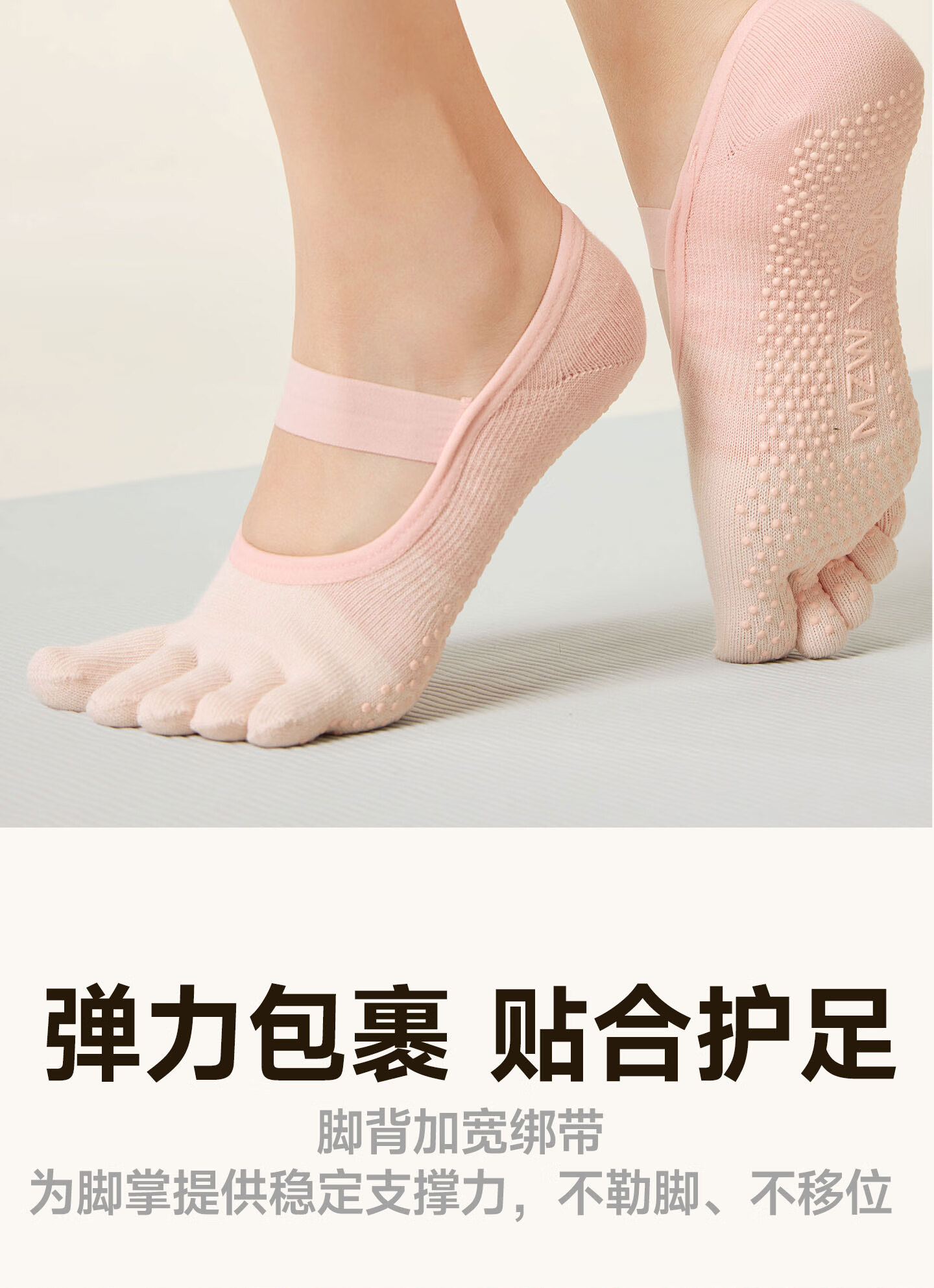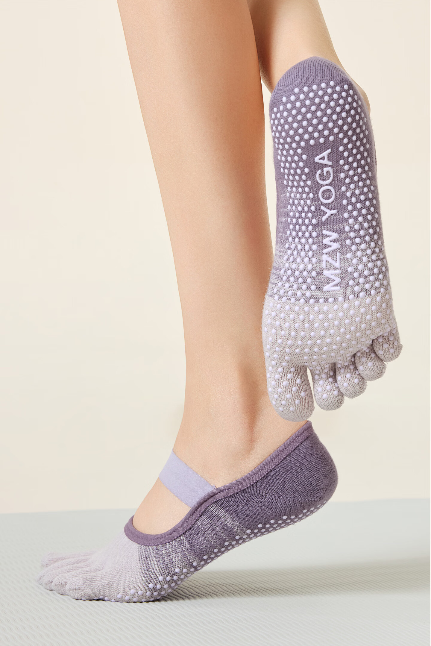 Mianzhuwu Yoga Socks Women's Pilates Five Toe Socks Separated Toe Autumn and Winter Professional Non-Slip Dance Sports Fitness Socks Combination 1 (Ballet Pink + Haze Blue)
