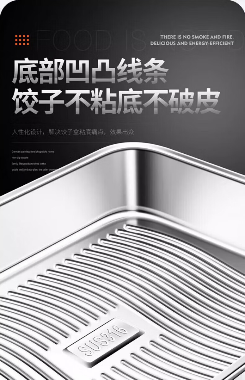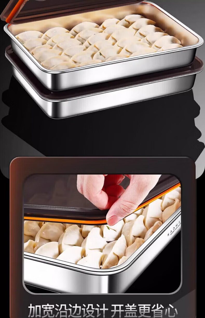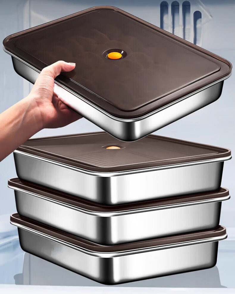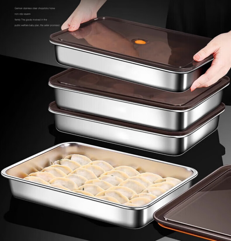 KDISV German crisper food-grade 316 stainless steel dumpling and wonton storage square box with lid, refrigerator quick-freezing sealed box (light style) + sealing lid, 3 layers, concave and convex texture, non-stick to the bottom