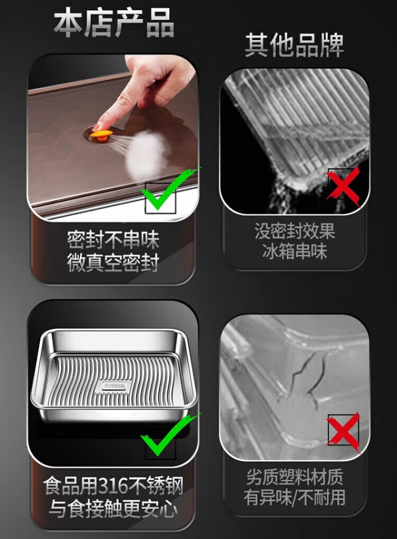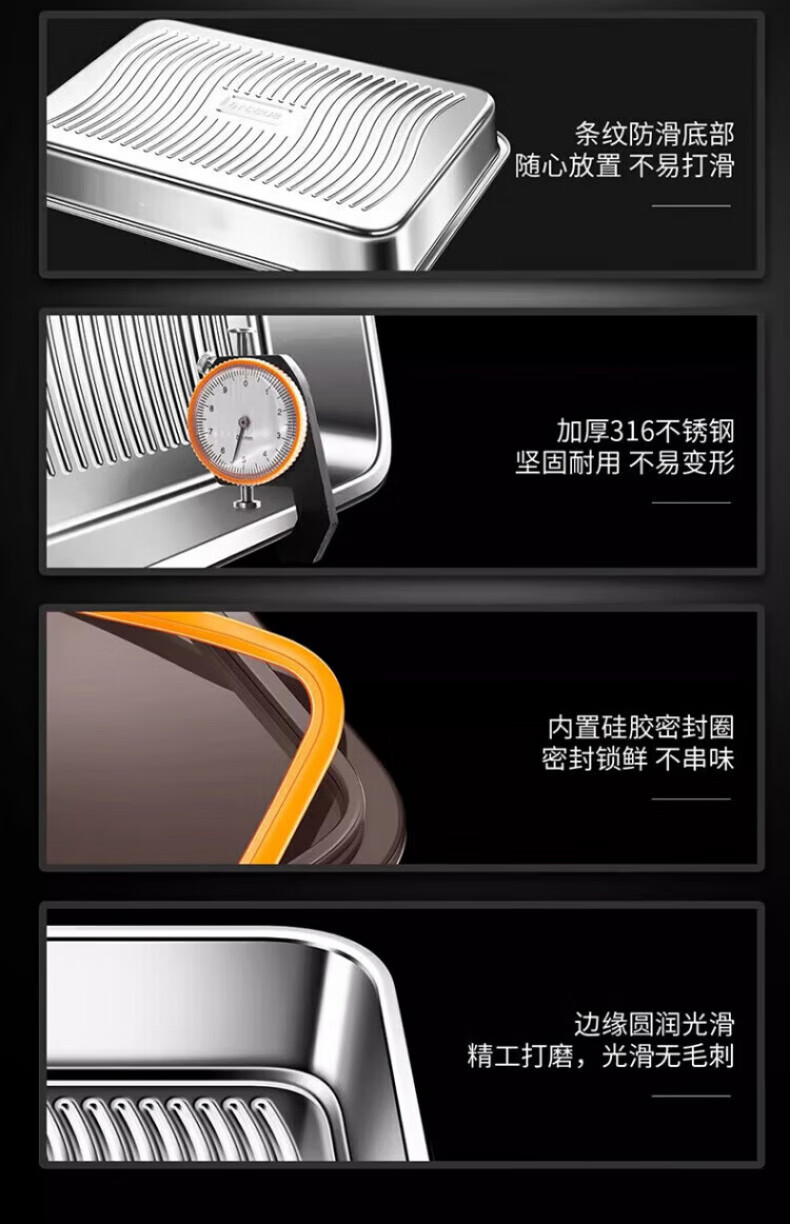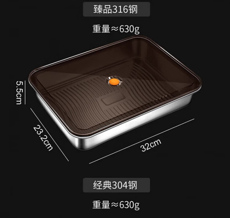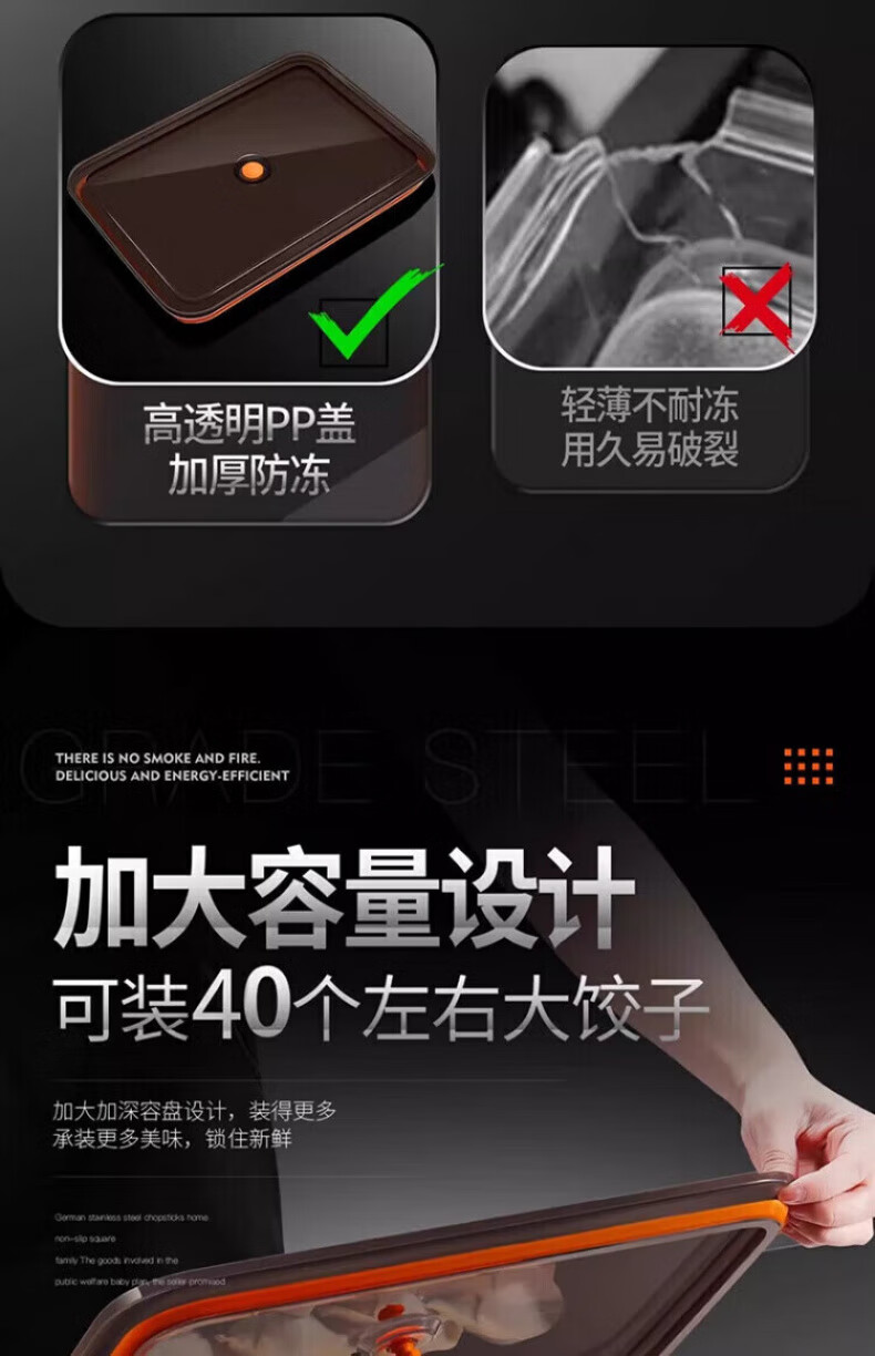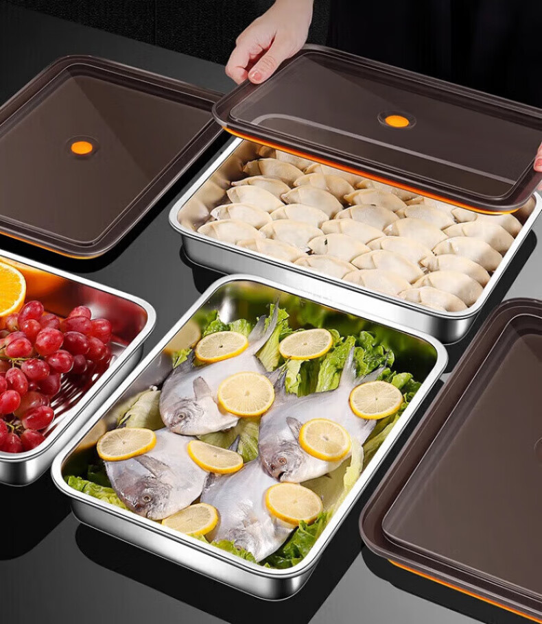 KDISV German crisper food-grade 316 stainless steel dumpling and wonton storage square box with lid, refrigerator quick-freezing sealed box (light style) + sealing lid, 3 layers, concave and convex texture, non-stick to the bottom