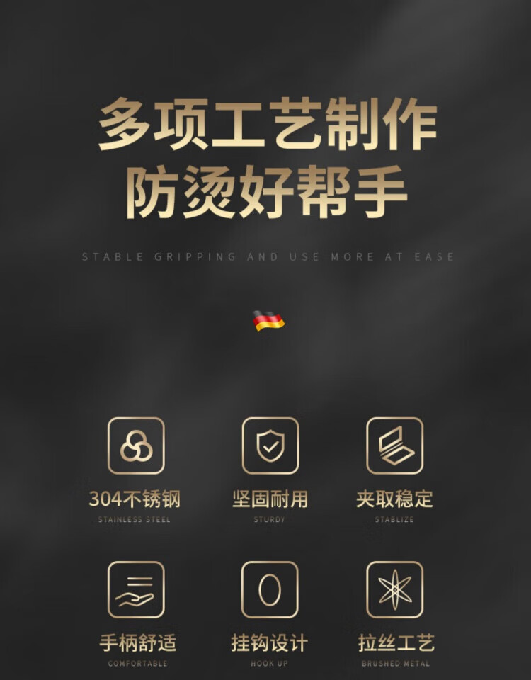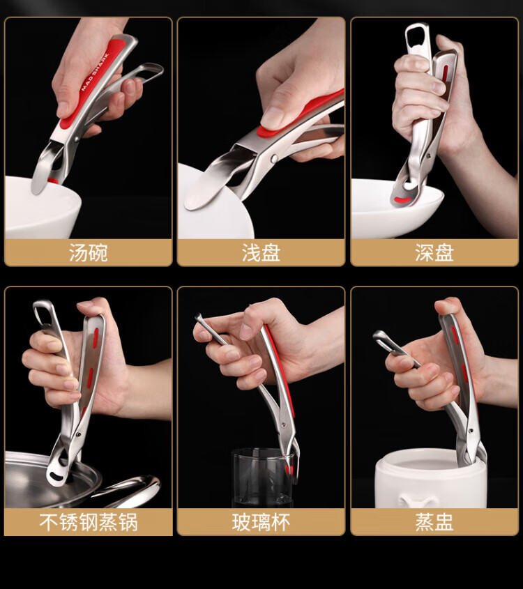 Yong Huan German high-end multi-functional anti-scalding bowl clamp artifact for taking dishes kitchen stainless steel heat-insulating anti-slip handle Elegant black-bowl clamp thickened anti-slip