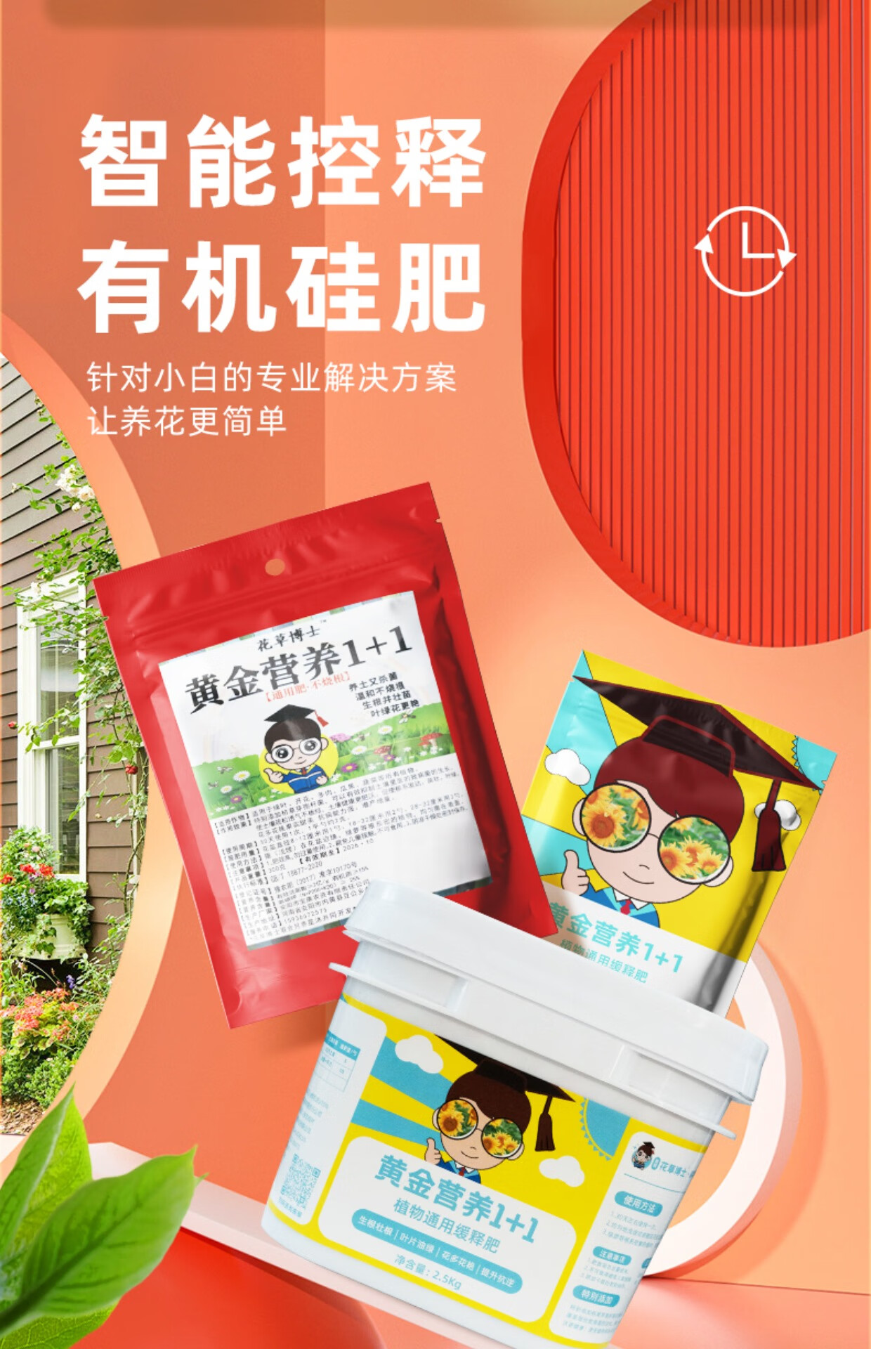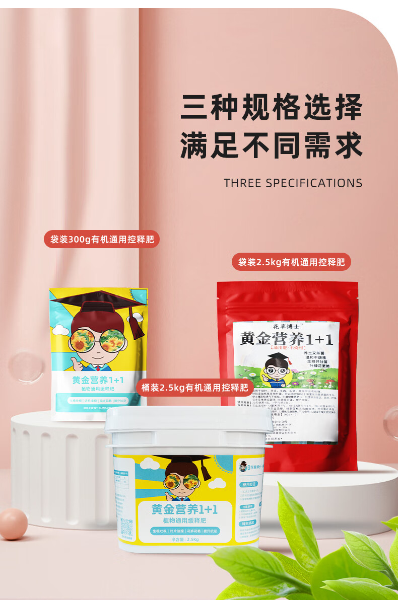 Golden Nutrition 1+1 Household General Plant Coated Fertilizer Granular Fertilizer Vegetable Nitrogen, Phosphorus and Potash Fertilizer Organic Silicon Fertilizer Golden Nutritional Fertilizer 300g/bag*1 bag free spoon