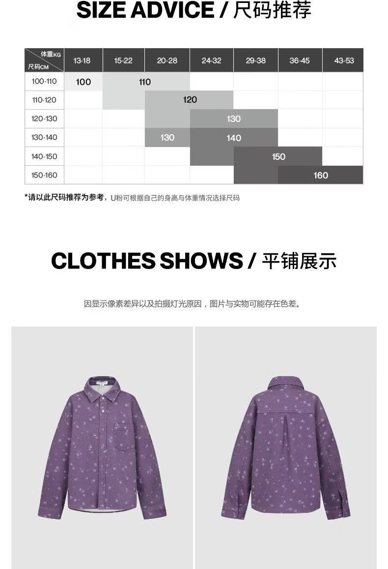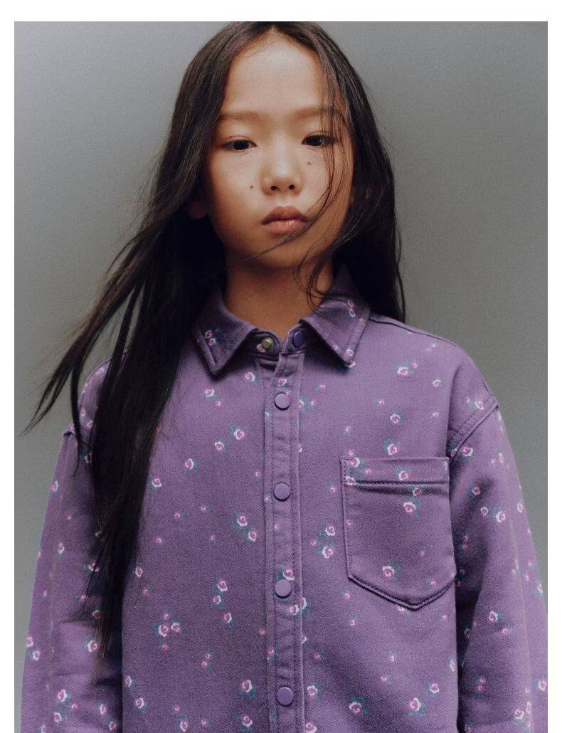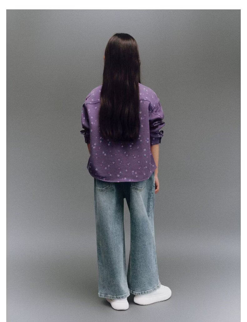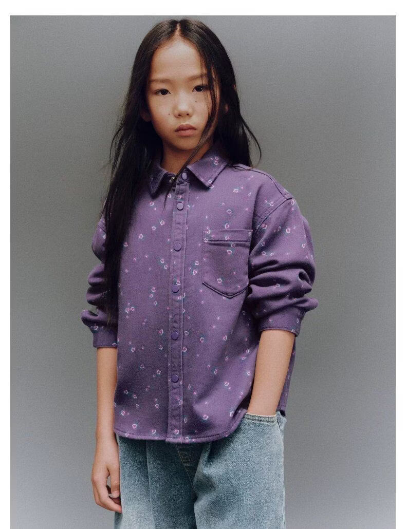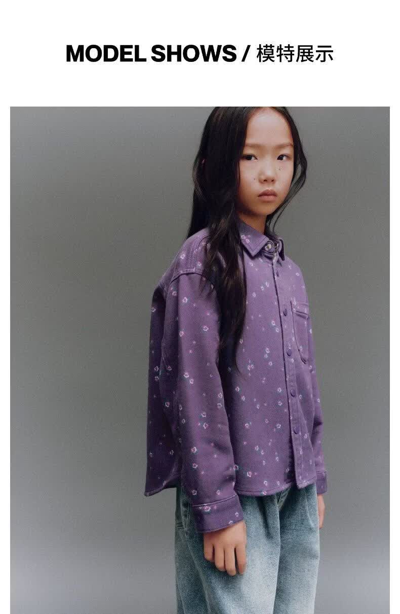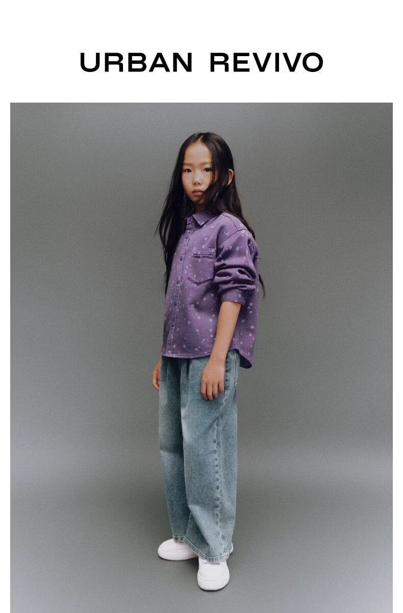 UR new winter children's clothing girls casual floral lapel patch pocket denim shirt UGH850006 purple print 140