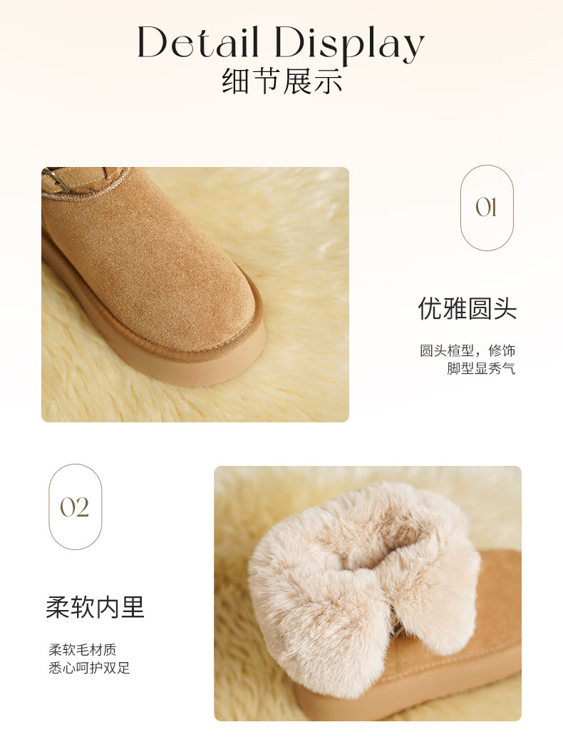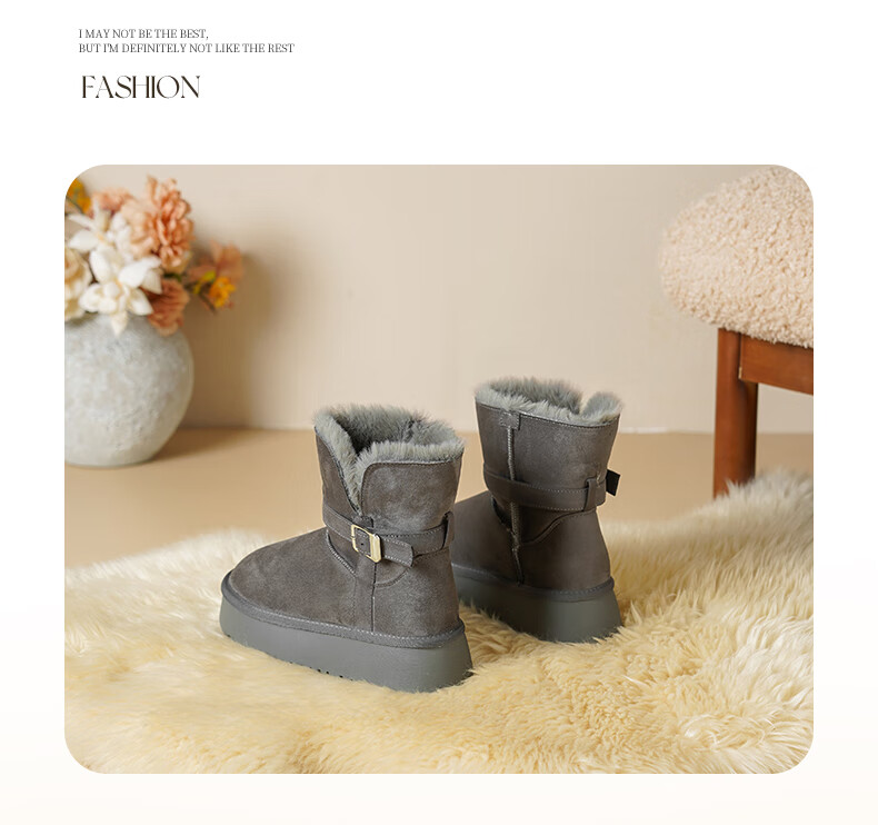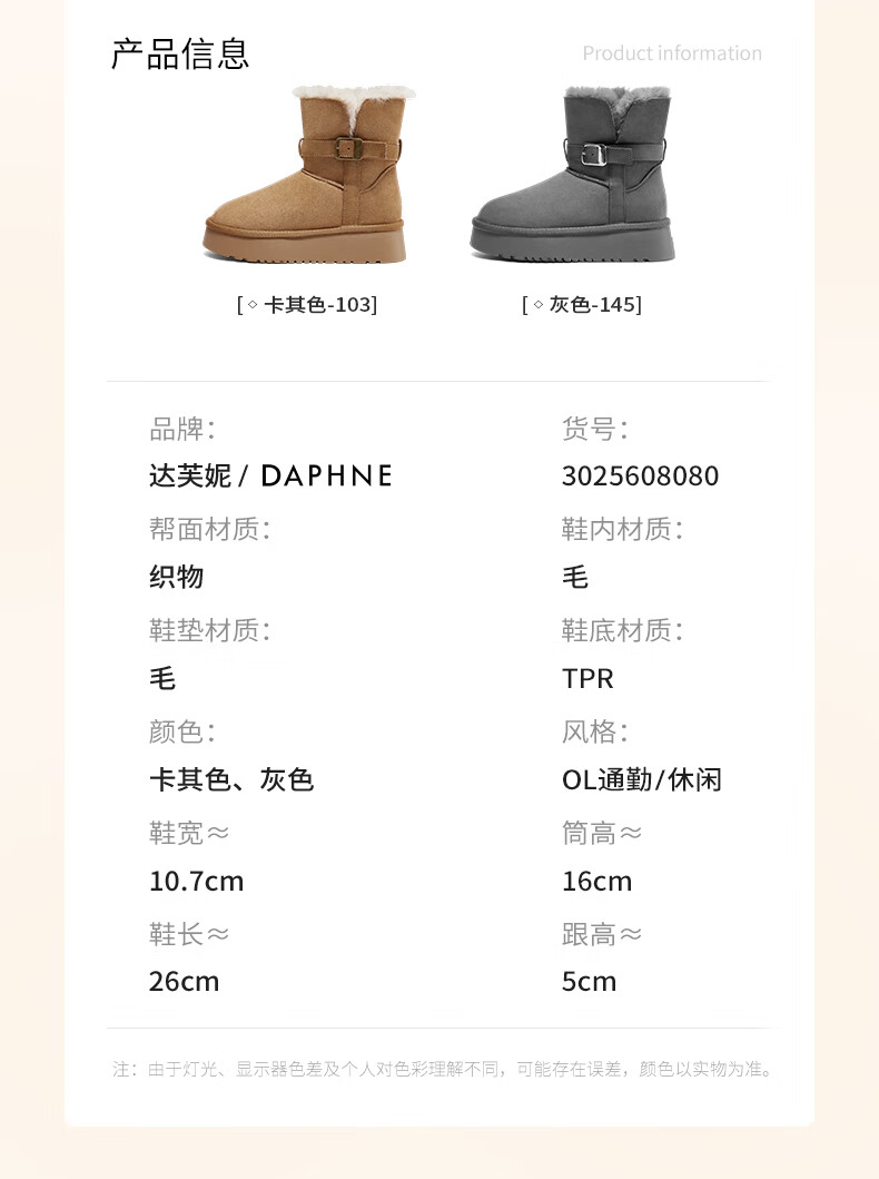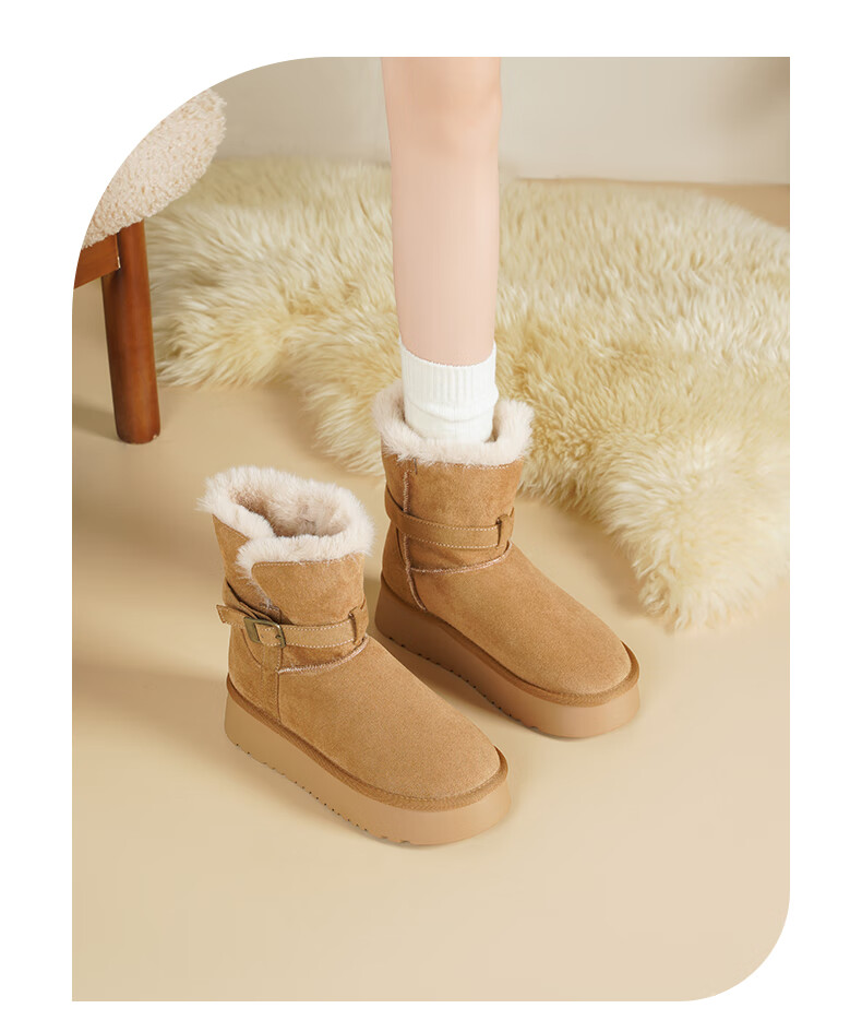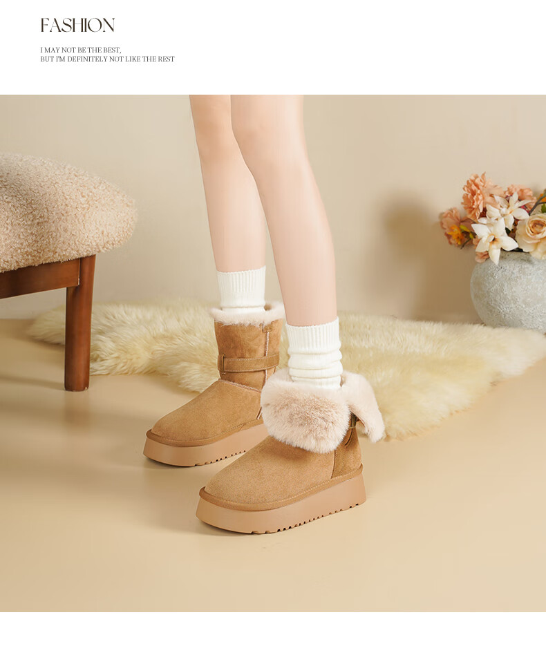Daphne official thick-soled snow boots for women 2025 winter new velvet warm short boots for women to increase height and cold-proof northeastern cotton shoes khaki color folded two-wear 5cm thick sole 37