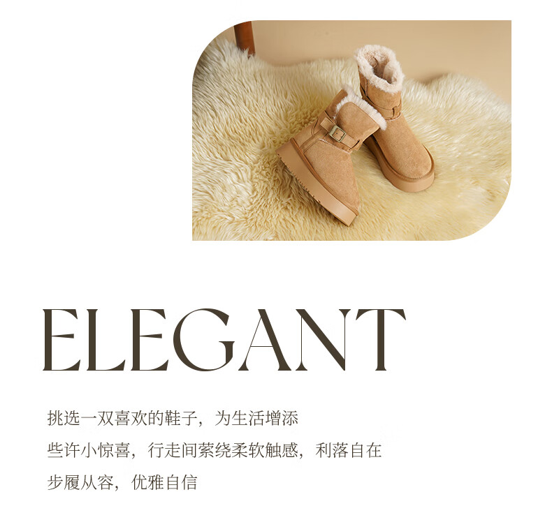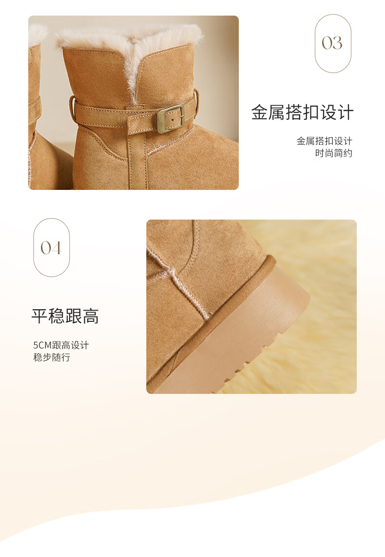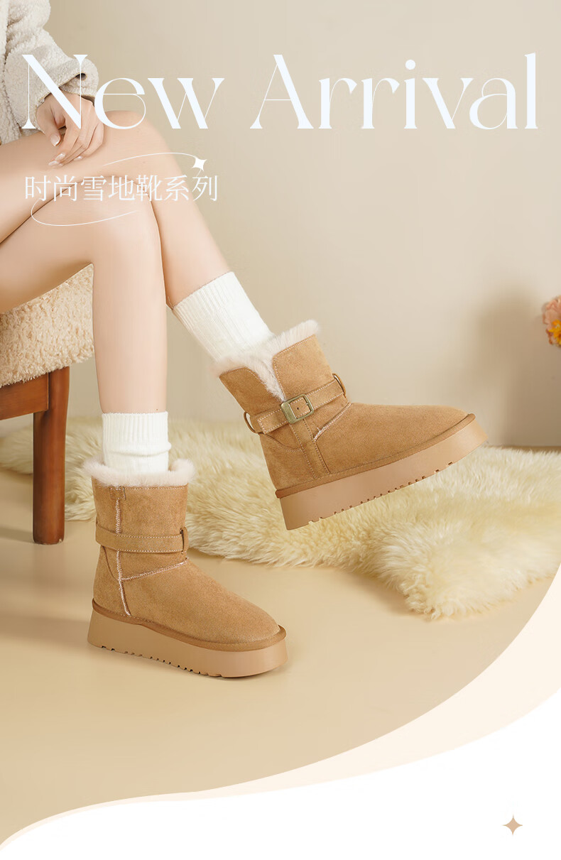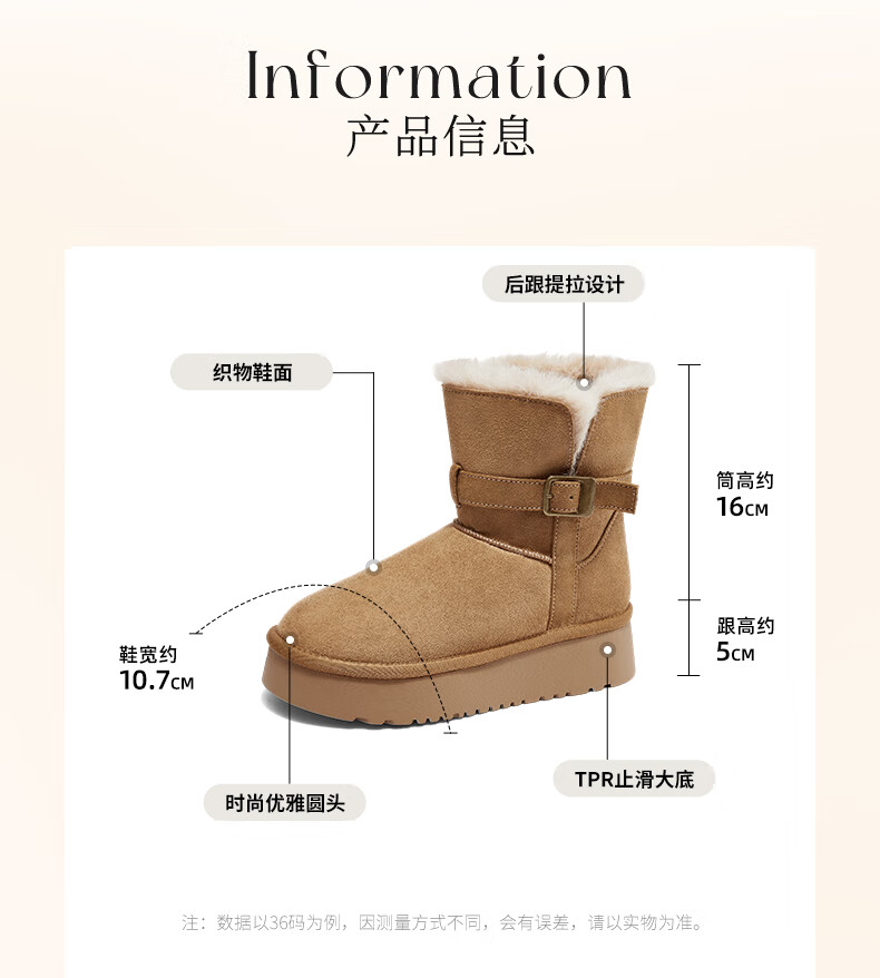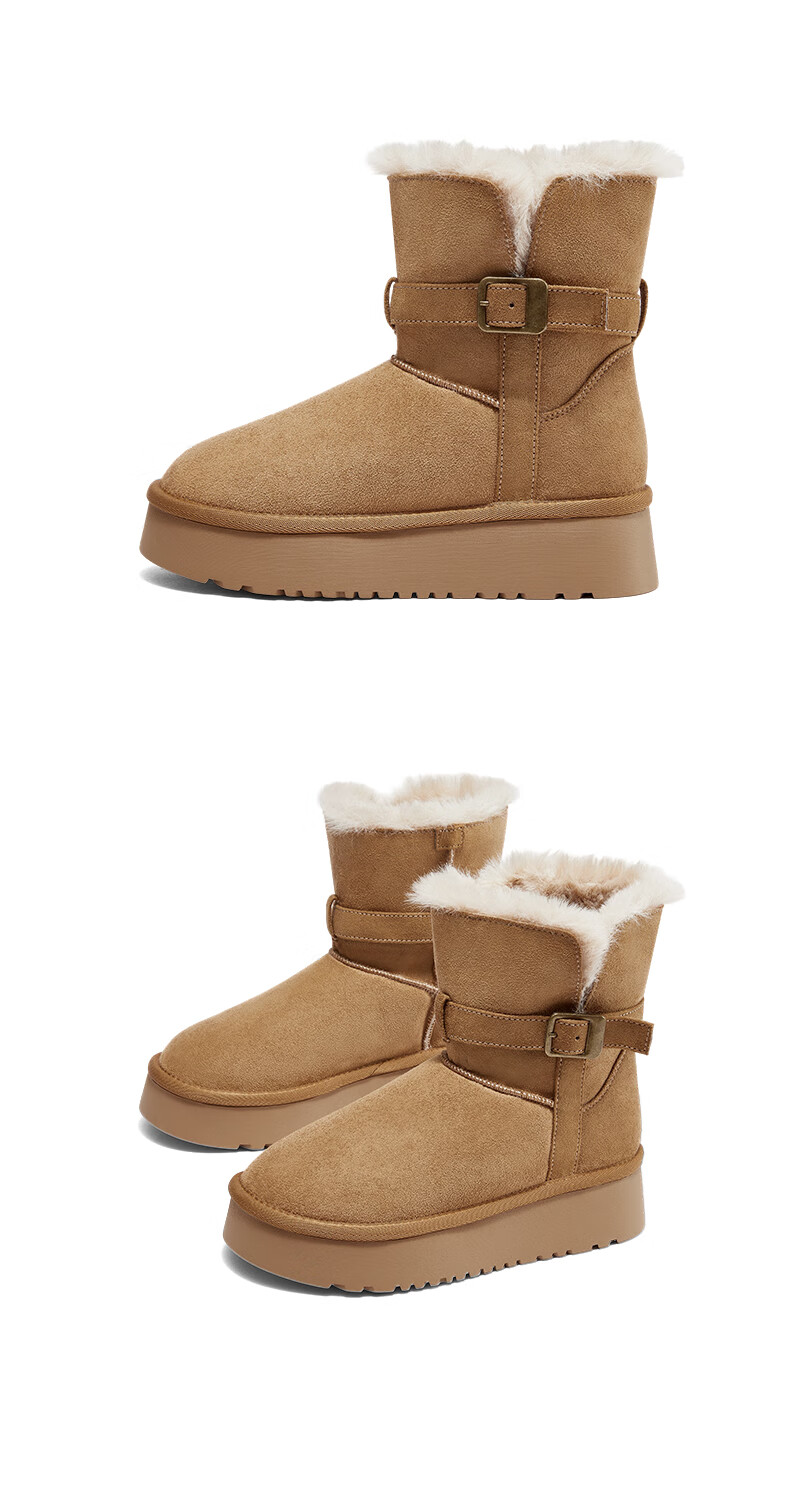 Daphne official thick-soled snow boots for women 2025 winter new velvet warm short boots for women to increase height and cold-proof northeastern cotton shoes khaki color folded two-wear 5cm thick sole 37