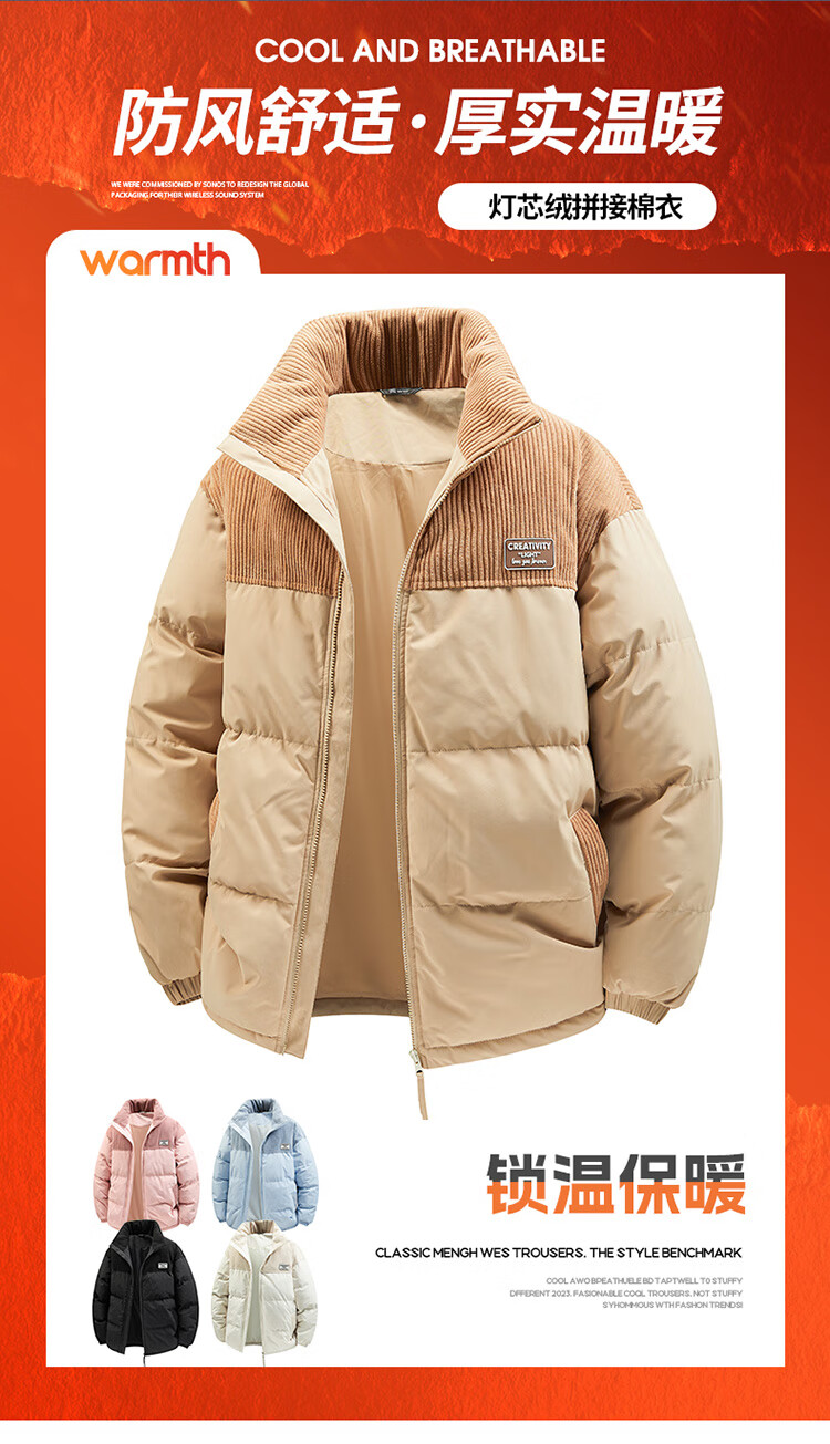 Pierre Cardin Japanese retro corduroy spliced thermal storage and heat-locking jacket, comfortable, breathable and windproof letter embroidered cotton coat, black XL