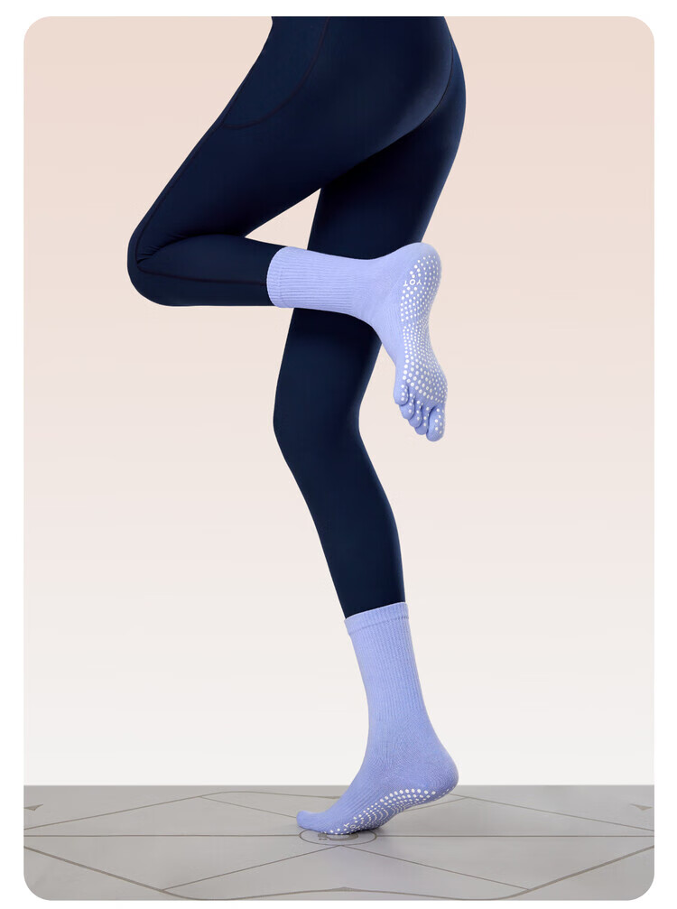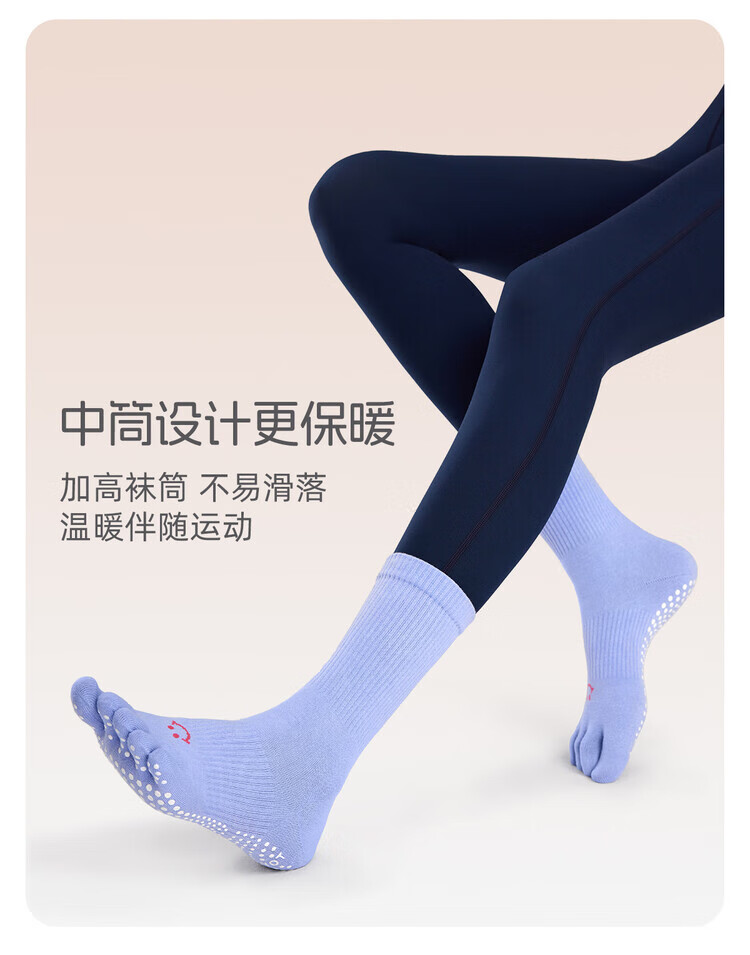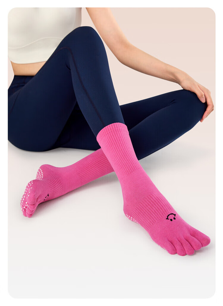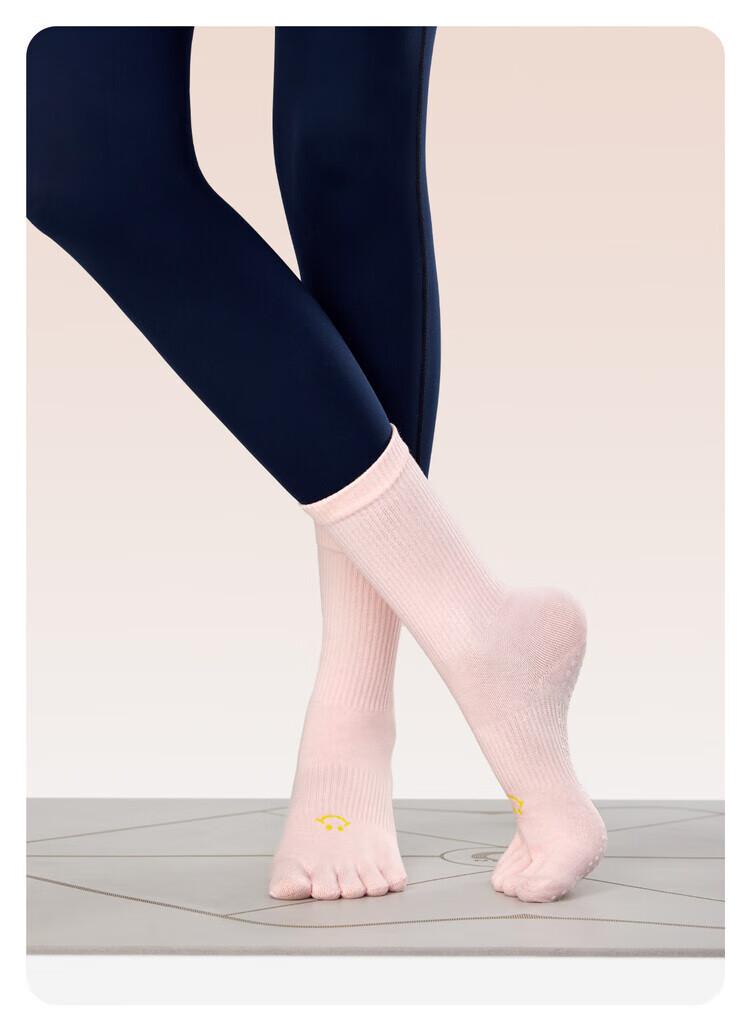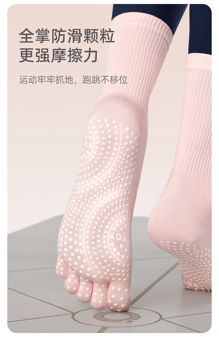 Yottoy yoga socks non-slip professional yoga Pilates five-toe socks for sports and fitness indoor dancing spring and summer split toe socks Smiley yoga socks-Mushan Purple S size (34-36 size) 5A suppression
