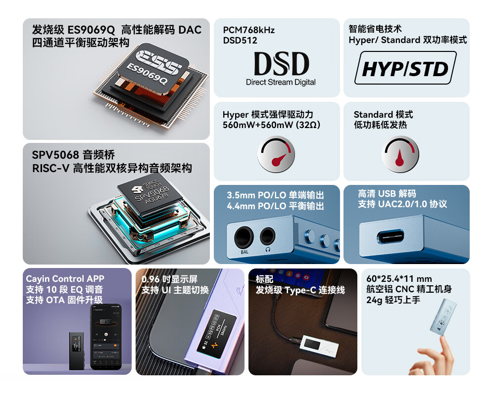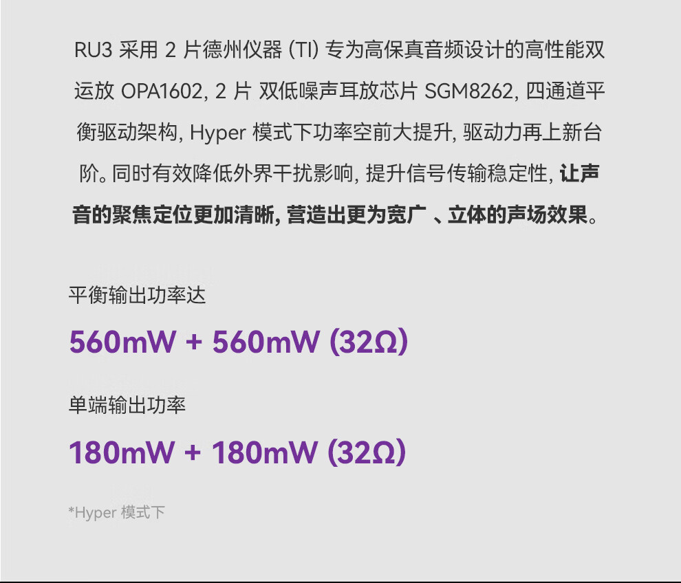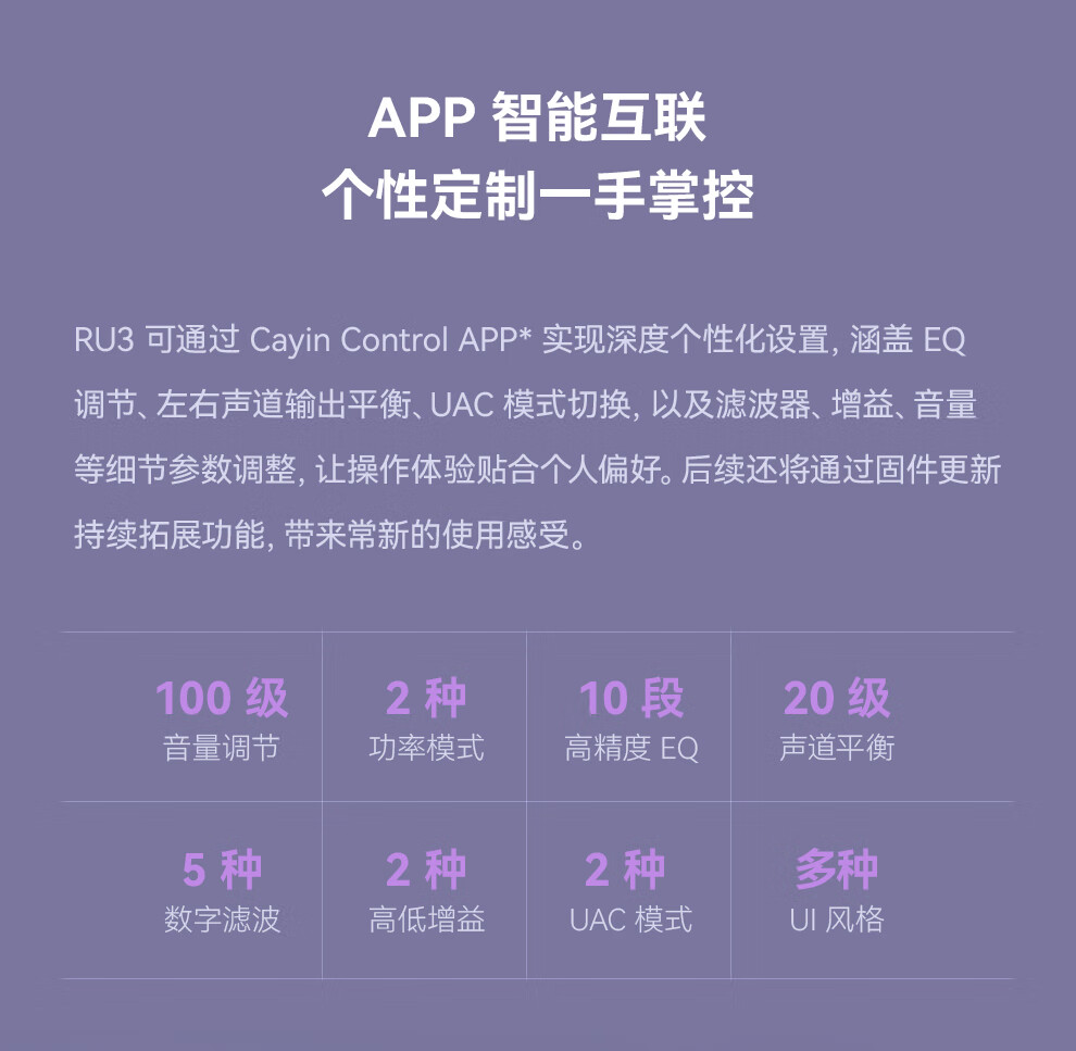 CAYIN Kaiyin RU3 portable HIFI fever-grade decoding 4.4 balanced typec oral amp power amplifier lossless decoding amp small tail RU3 Dream Purple