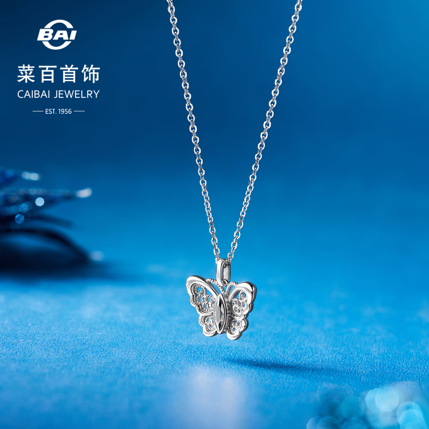 Caibai Jewelry Platinum Pendant Pt950 Platinum Fashionable Sweet Filigree Butterfly Pendant Price BJ Platinum Pendant About 2.42g