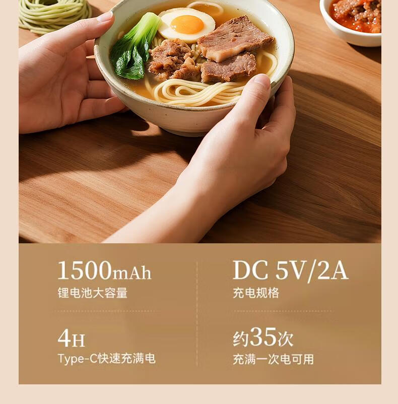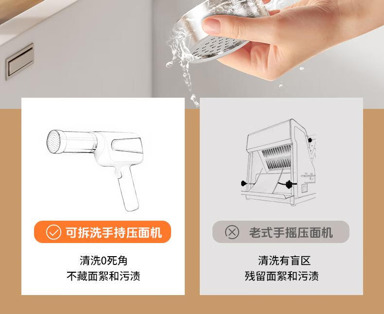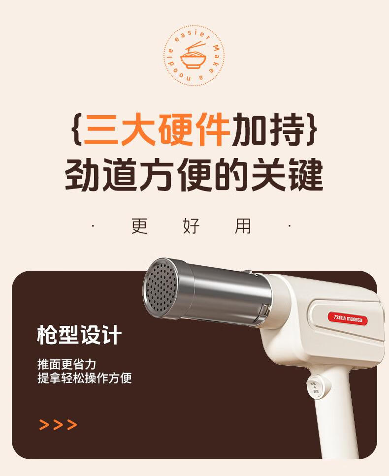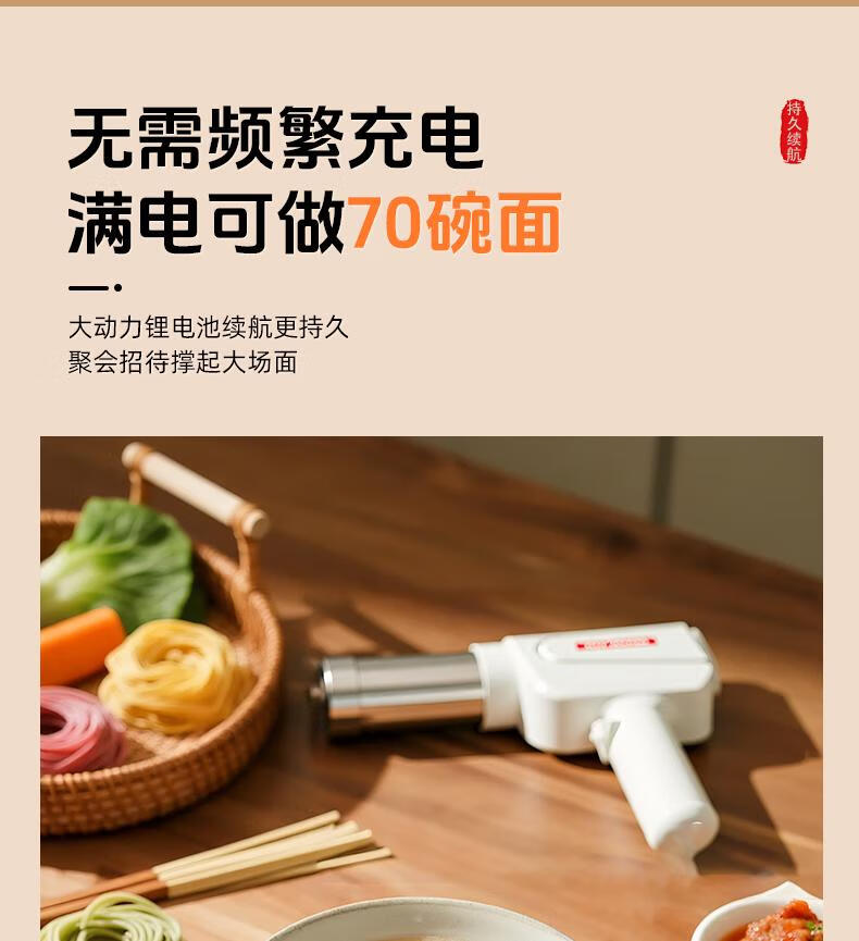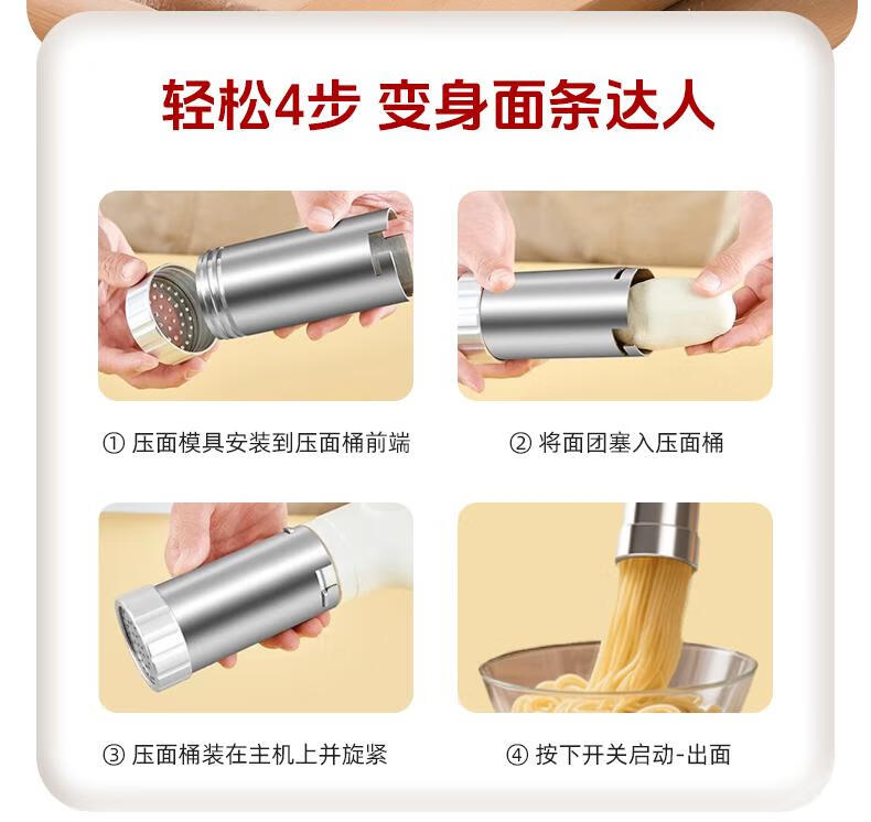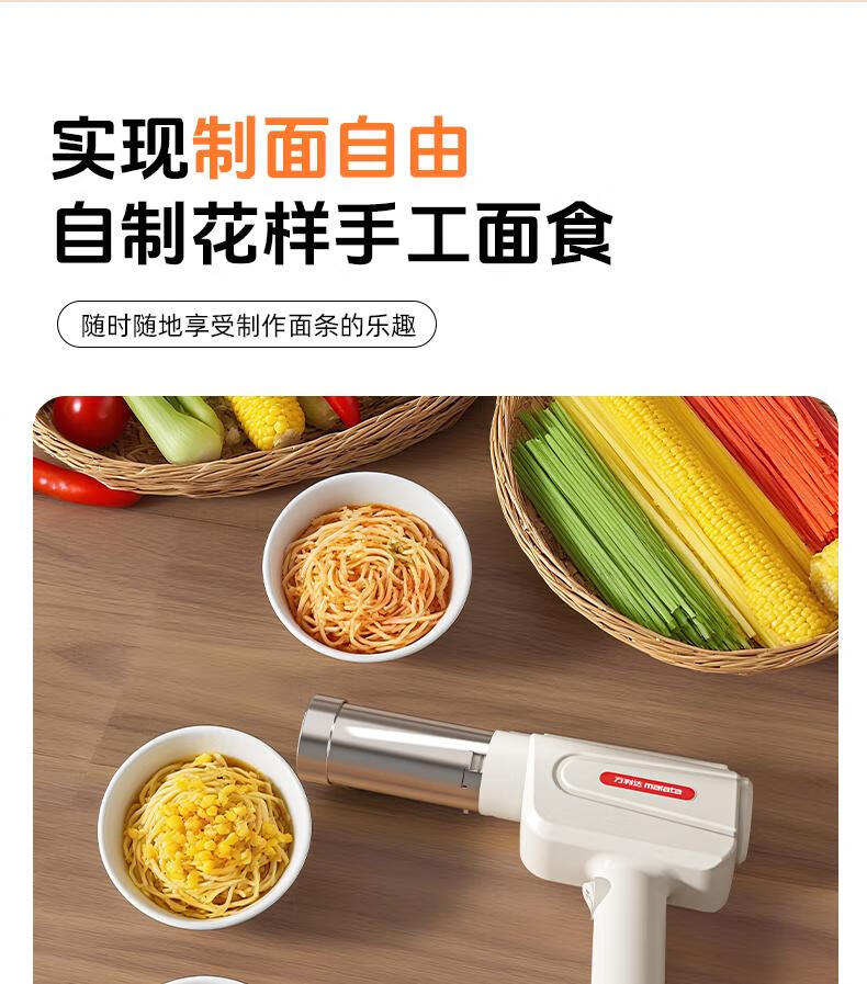 Home-use fully automatic electric handheld noodle machine. Charging is convenient and practical. New portable artifact. Stainless steel charging model (5 kinds of molds) comes with enema measuring cup.