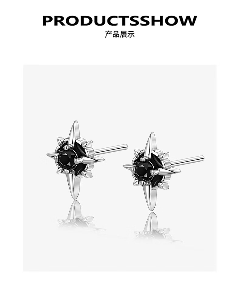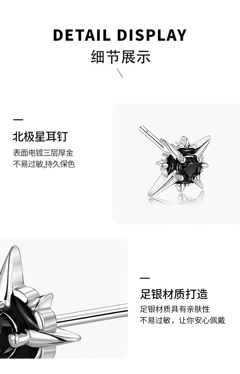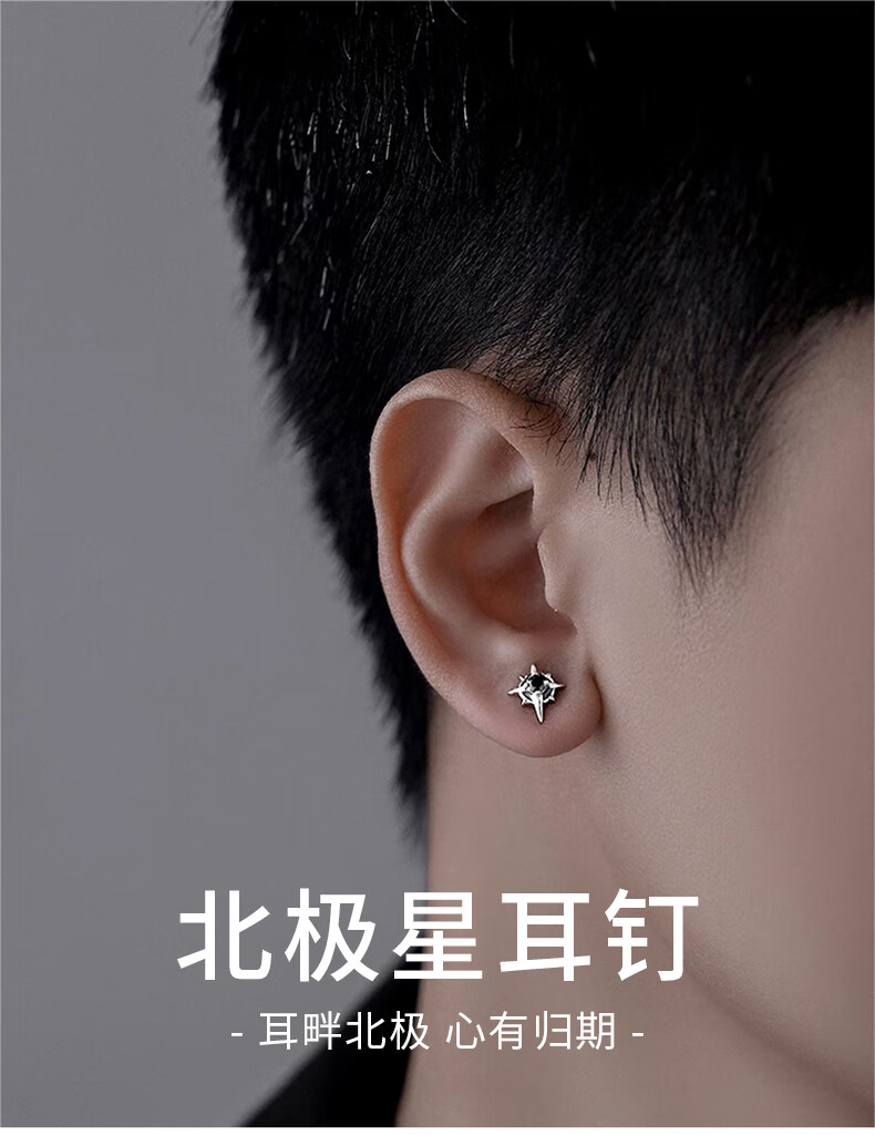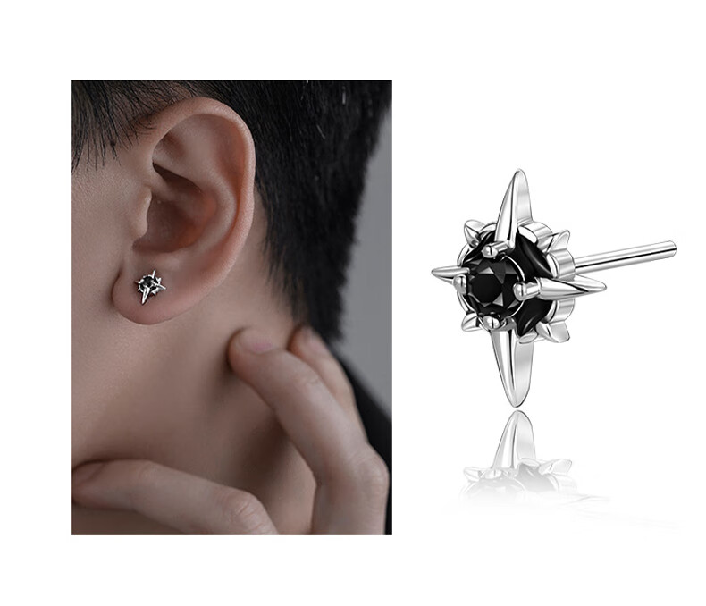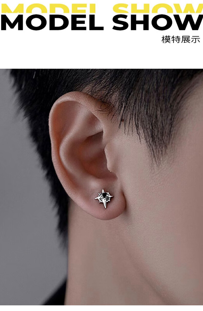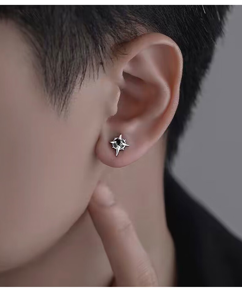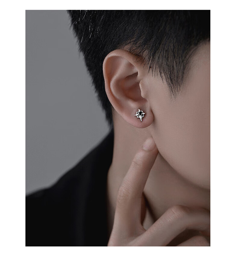 China Gold Pure Silver Polaris Earrings Men's Fashion Trendy High-end Earrings Practical Birthday Gifts for Boyfriend Polaris Earrings - Black*Single*Shipping from Yakura*Same Day/Next Day Delivery