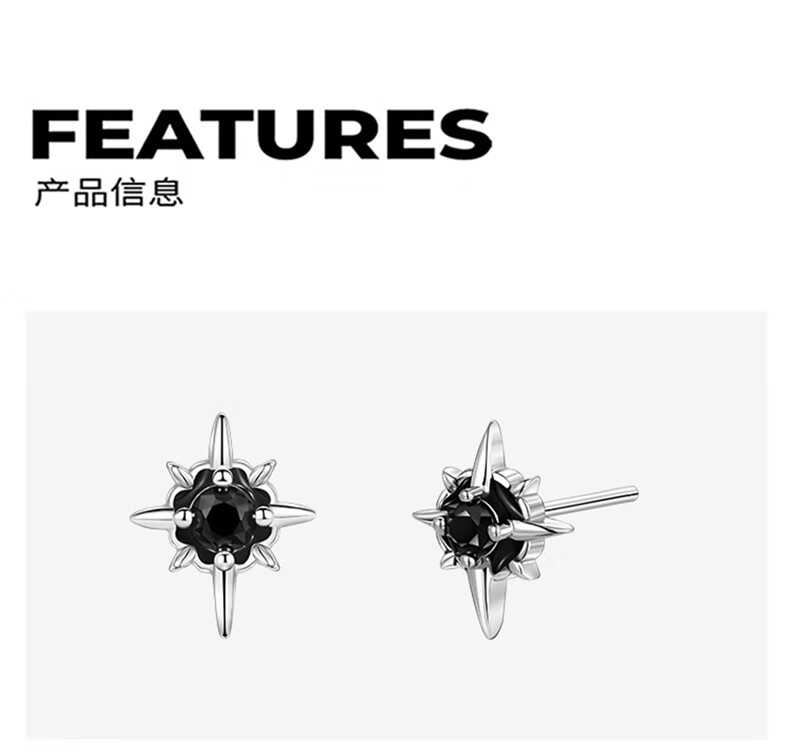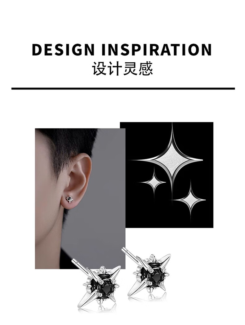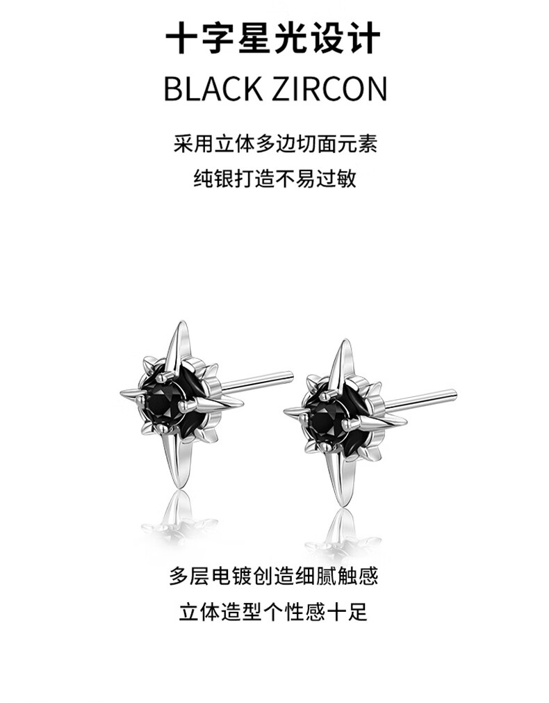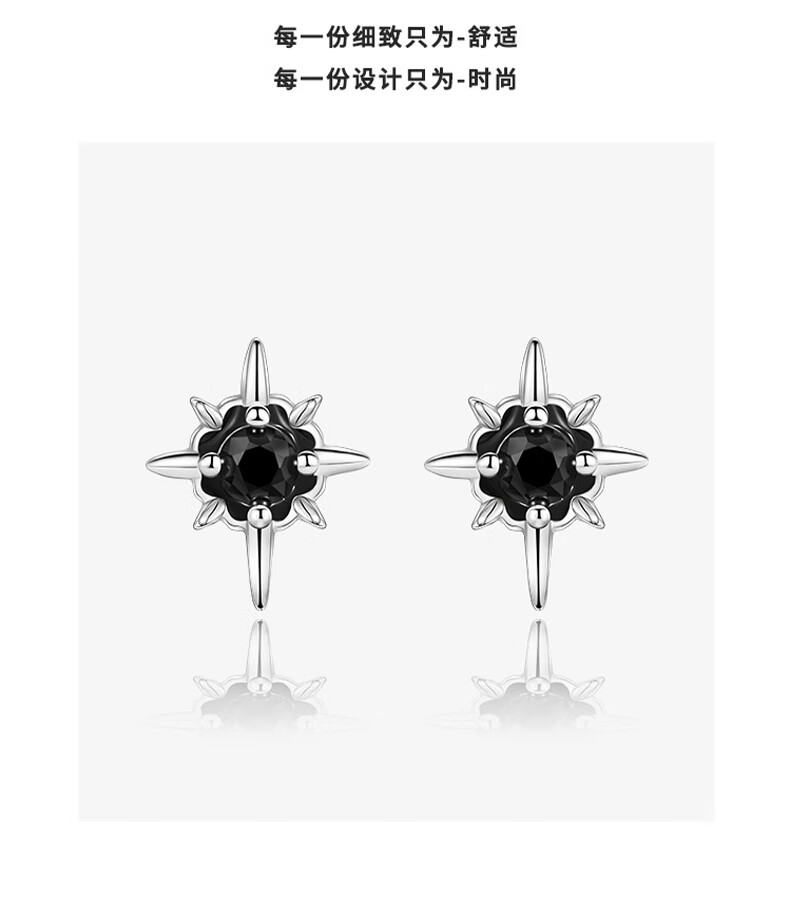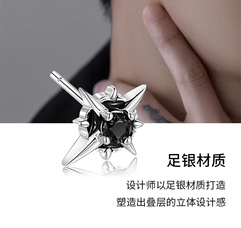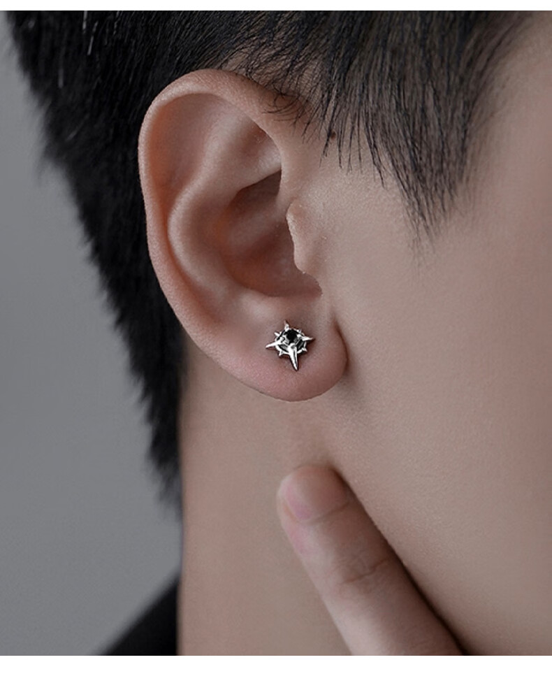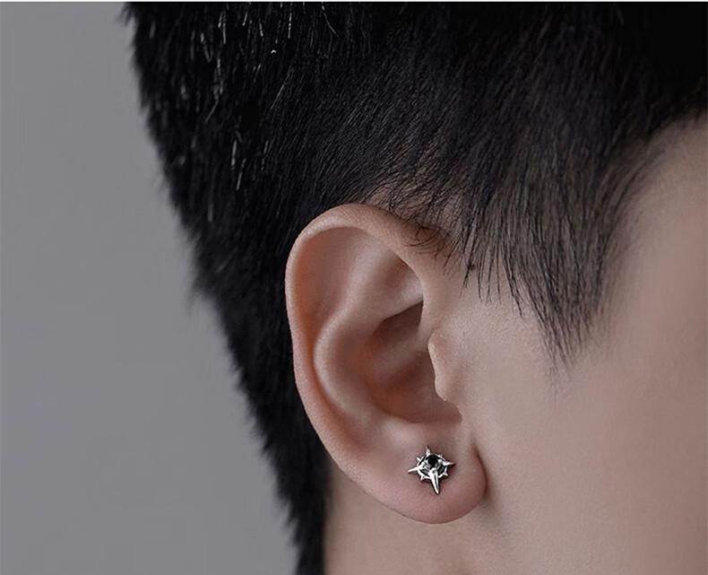 China Gold Pure Silver Polaris Earrings Men's Fashion Trendy High-end Earrings Practical Birthday Gifts for Boyfriend Polaris Earrings - Black*Single*Shipping from Yakura*Same Day/Next Day Delivery