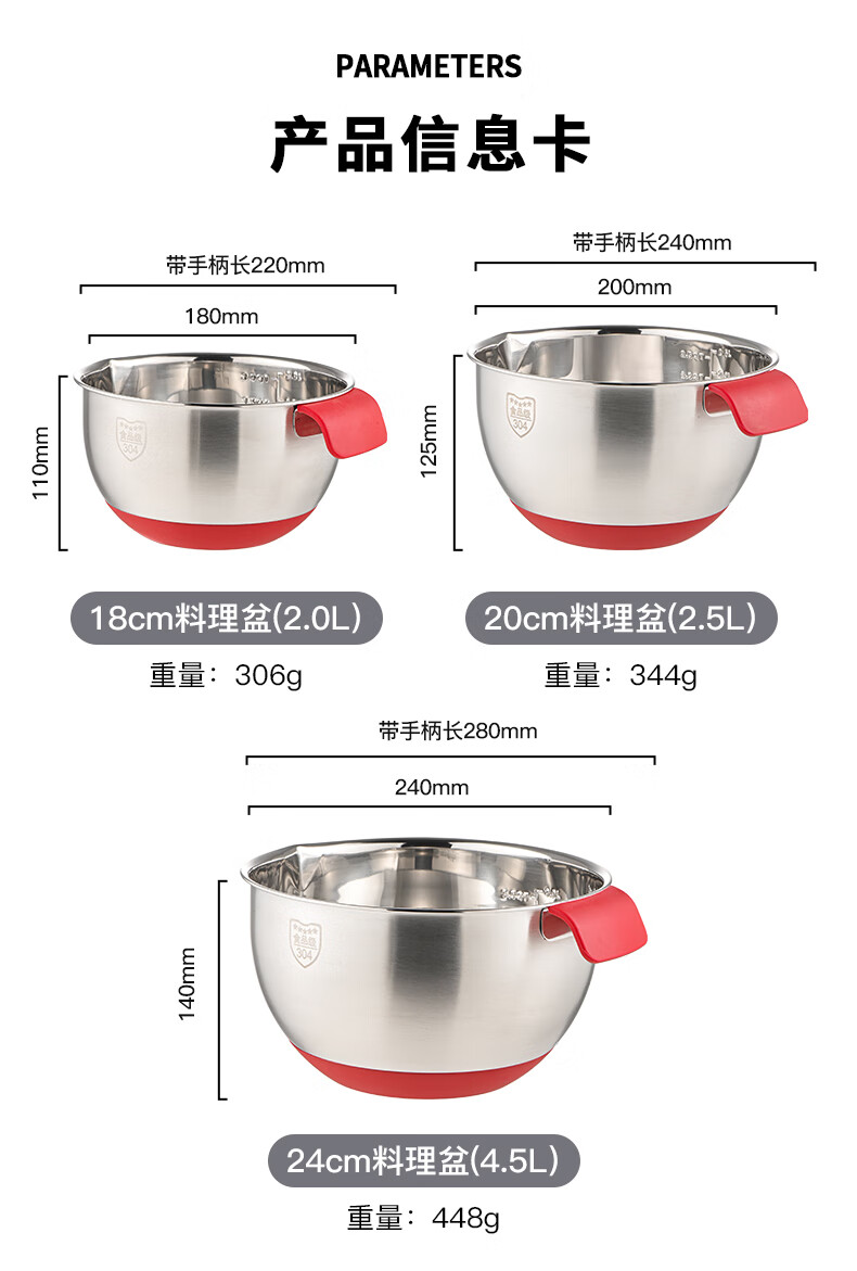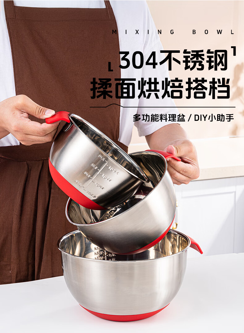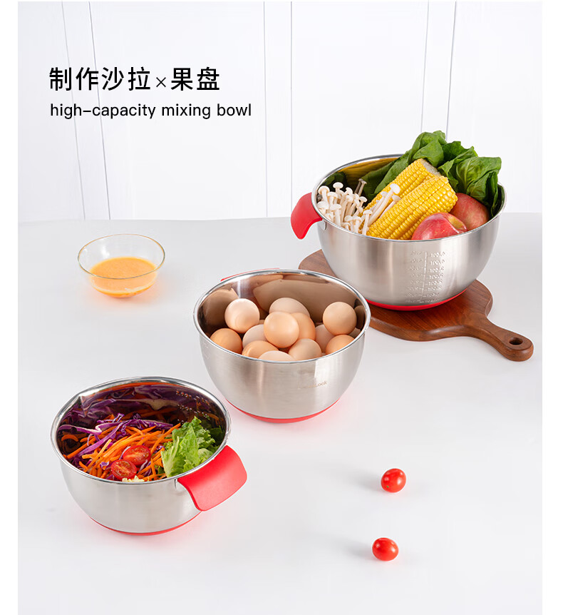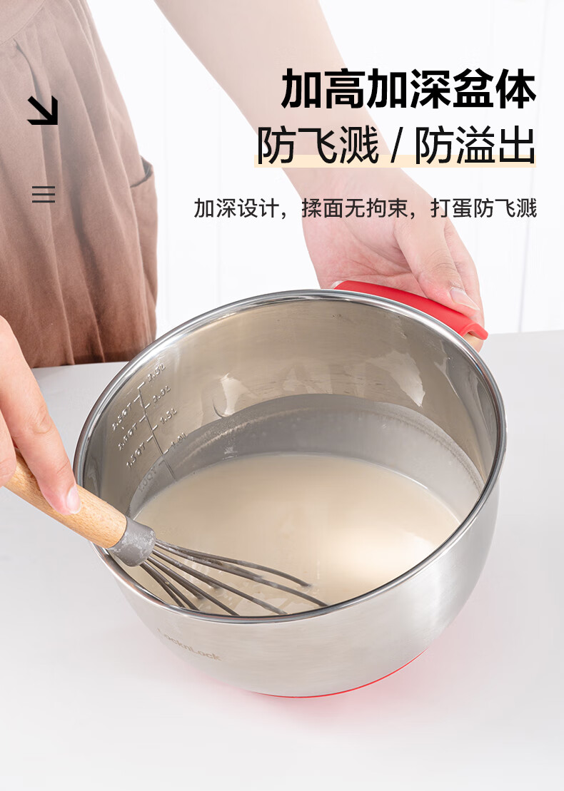 LOCK&LOCK 304 stainless steel cooking basin and basin egg beater home kitchen sink multi-function 18cm-stainless steel-single 2000ml