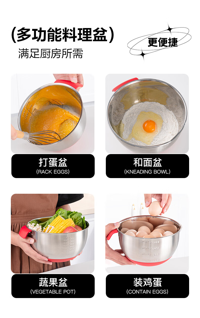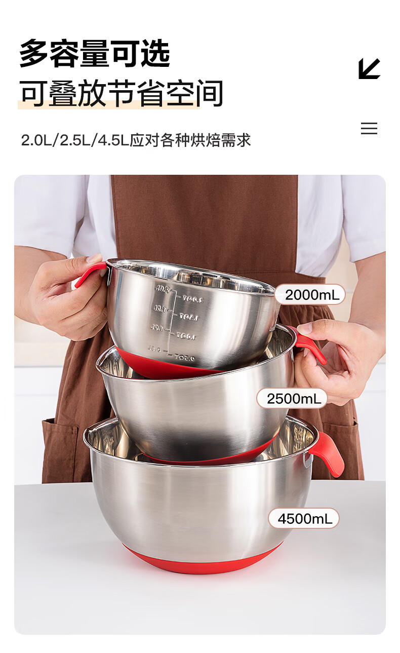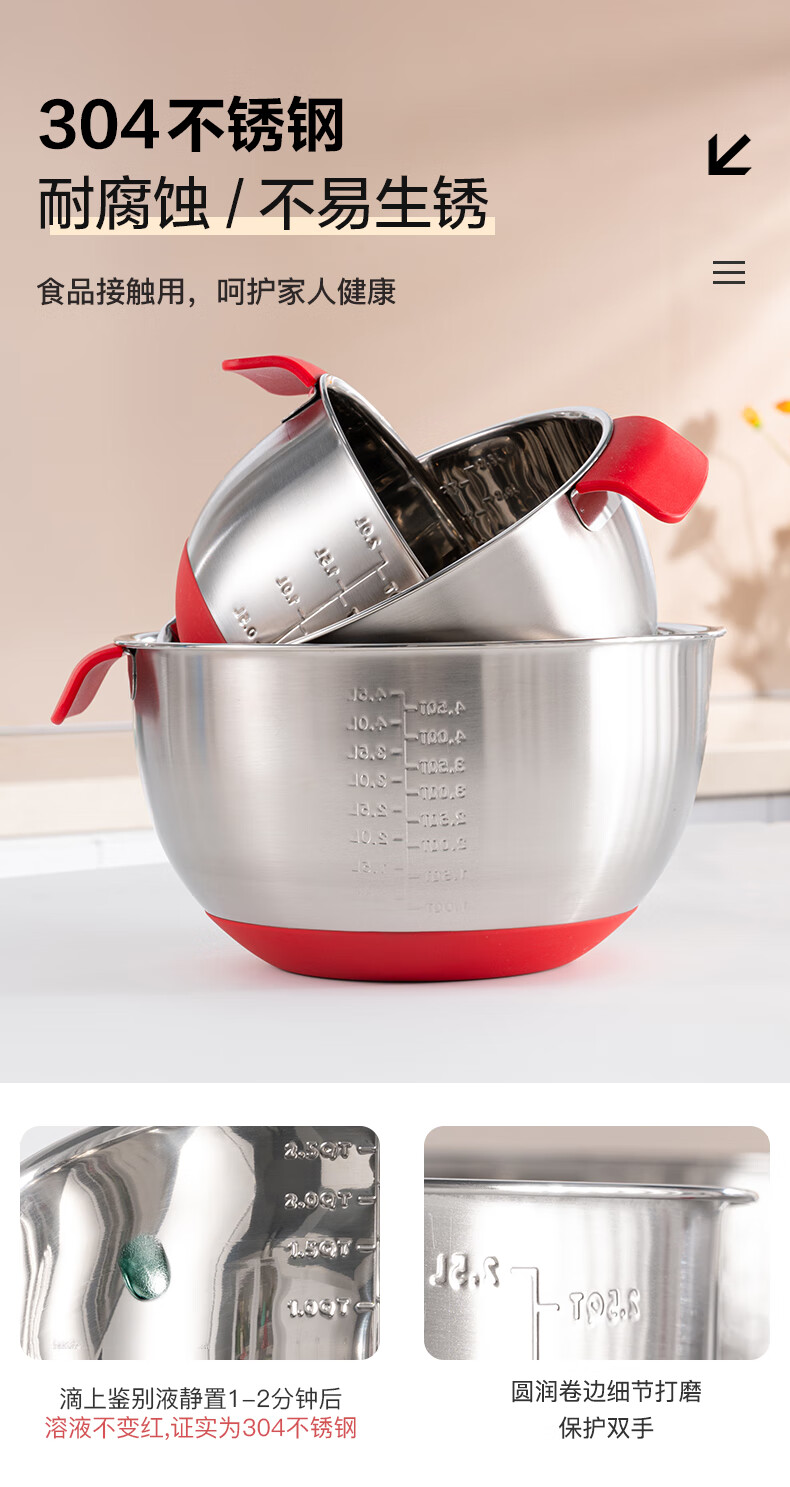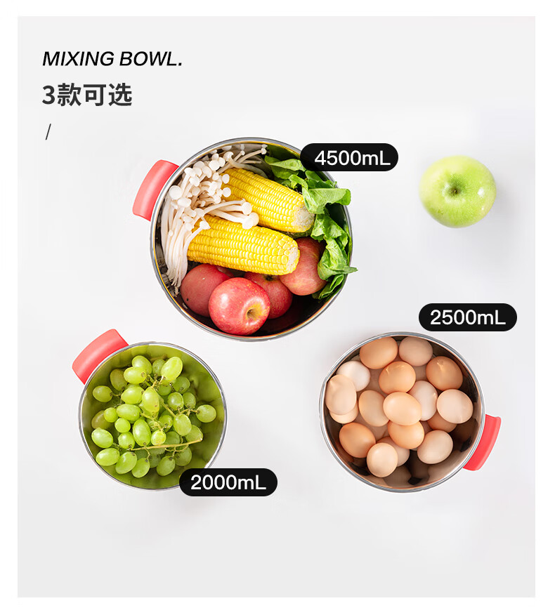 LOCK&LOCK 304 stainless steel cooking basin and basin egg beater home kitchen sink multi-function 18cm-stainless steel-single 2000ml