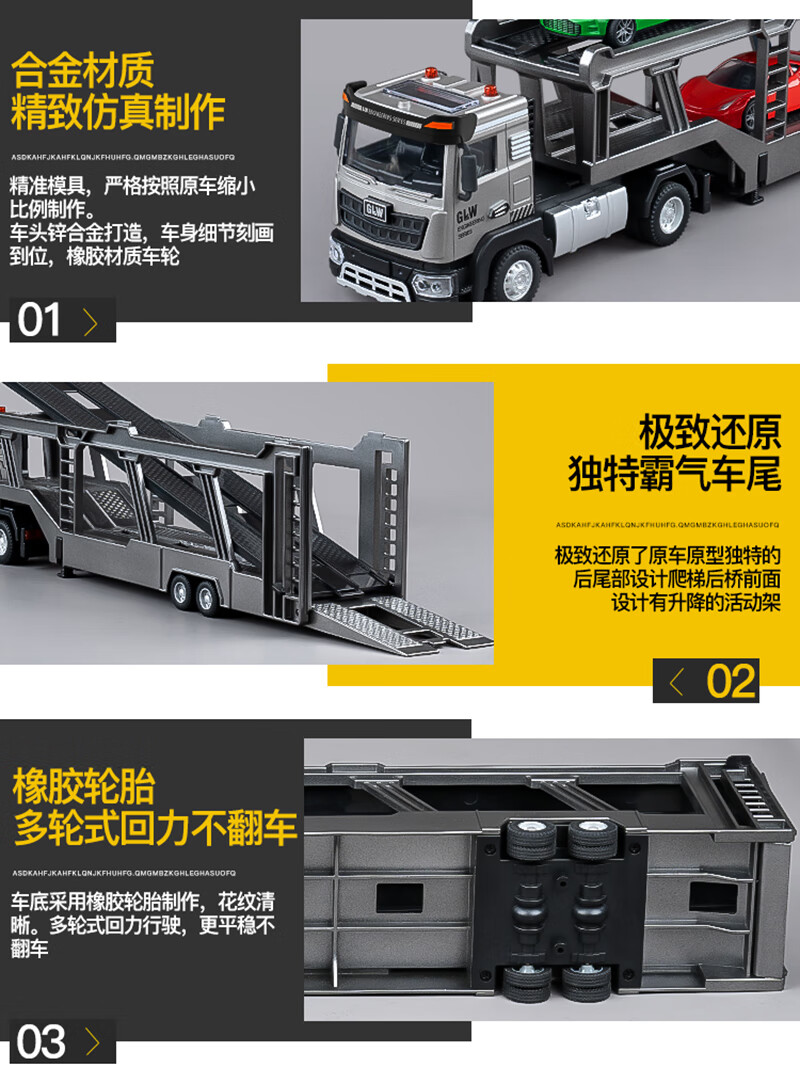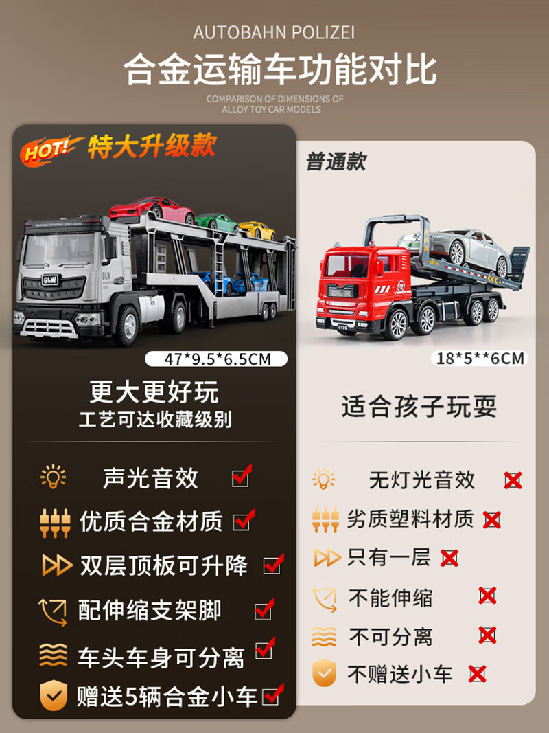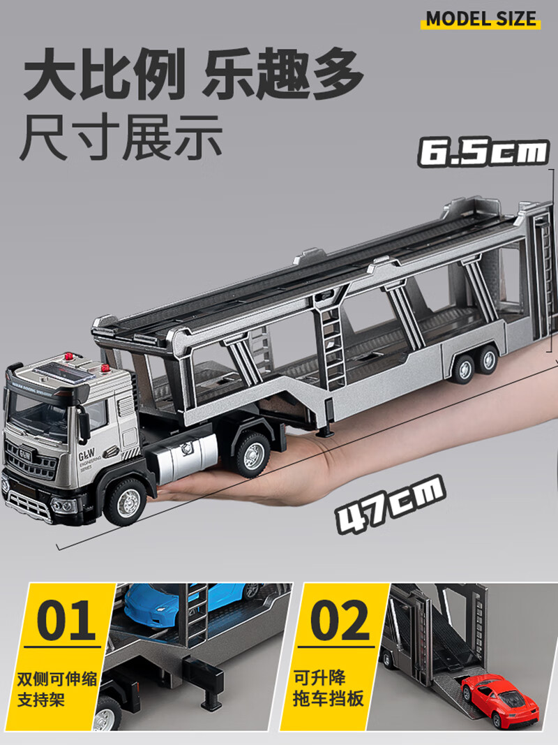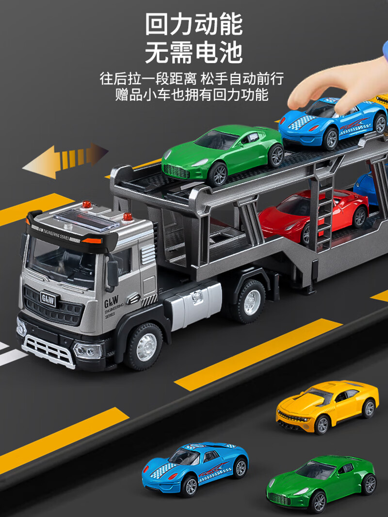 Shantou Lincun oversized alloy car transport vehicle double-decker truck engineering vehicle toy boy children Mid-Autumn Festival and National Day gift silver extra-long double-decker transport vehicle + 5 cars