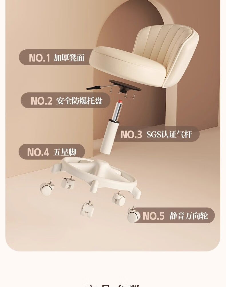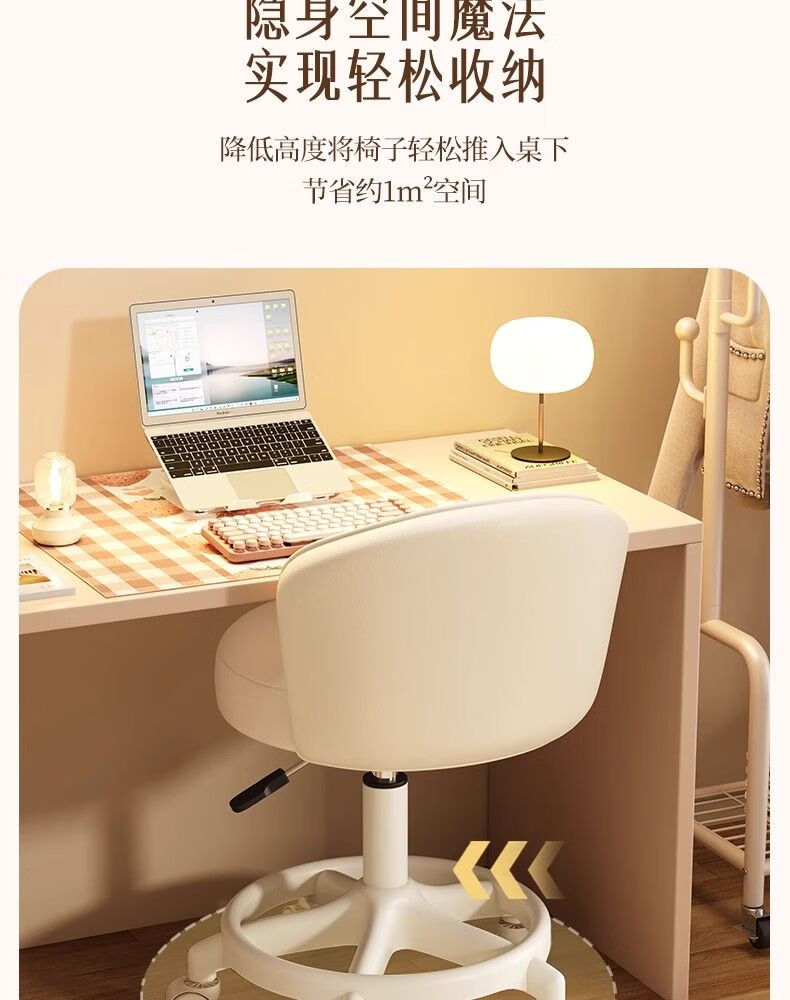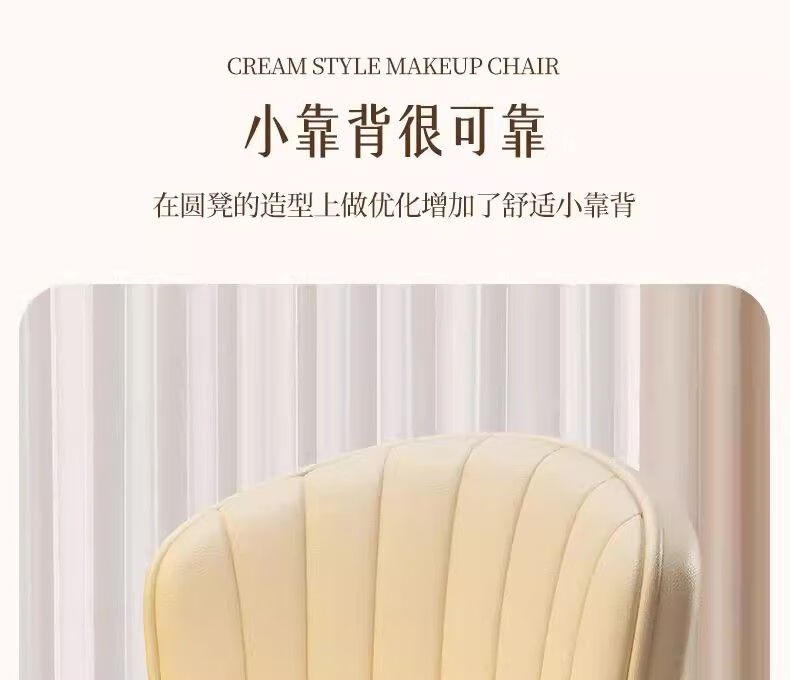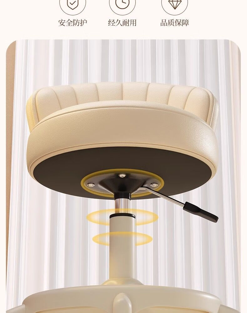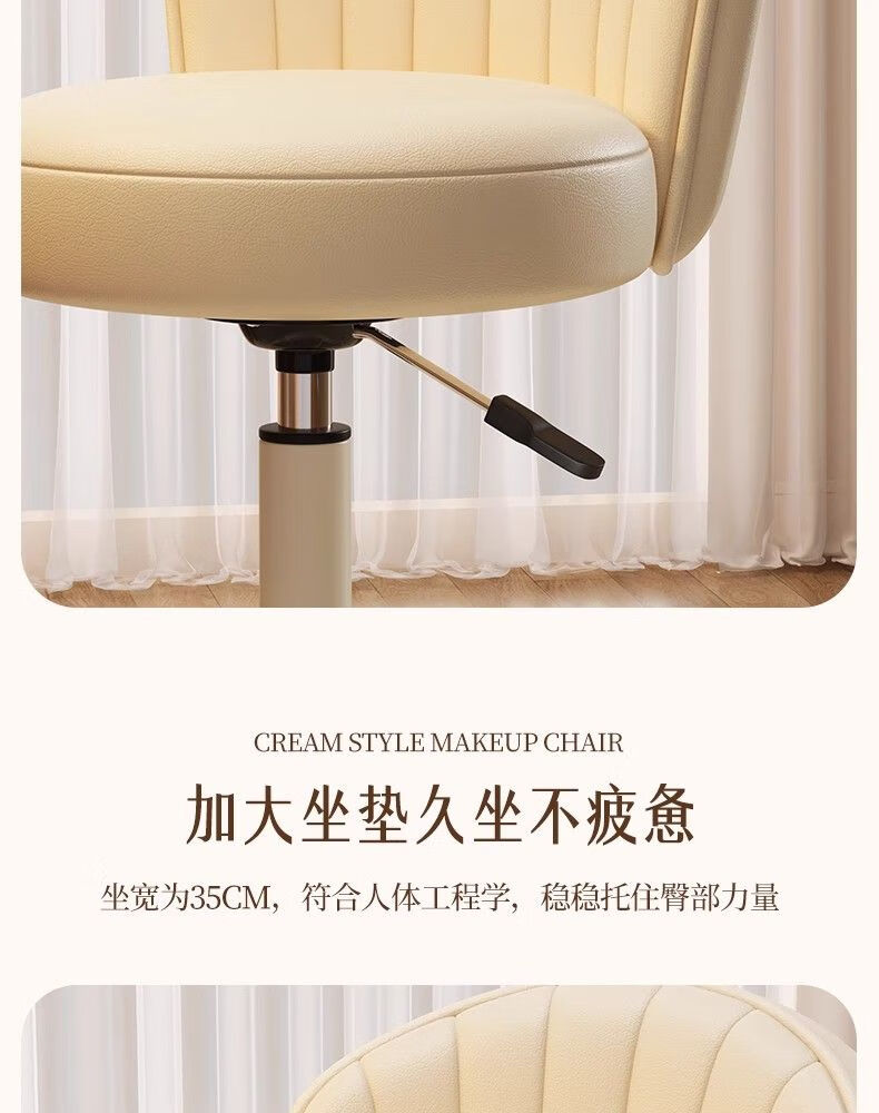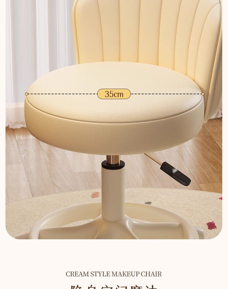 Japanese Unprinted Cream Style Makeup Chair Home Chair Backrest Dressing Table Stool Bedroom Lift Swivel Chair A Stool Slip Standard Five Claws Beige - Three-Proof Microfiber Leather - Explosion-Proof Air Rod