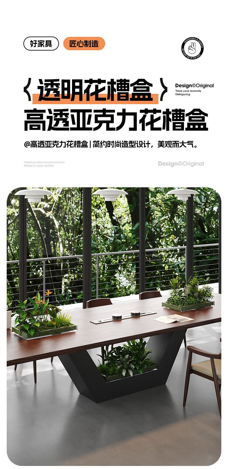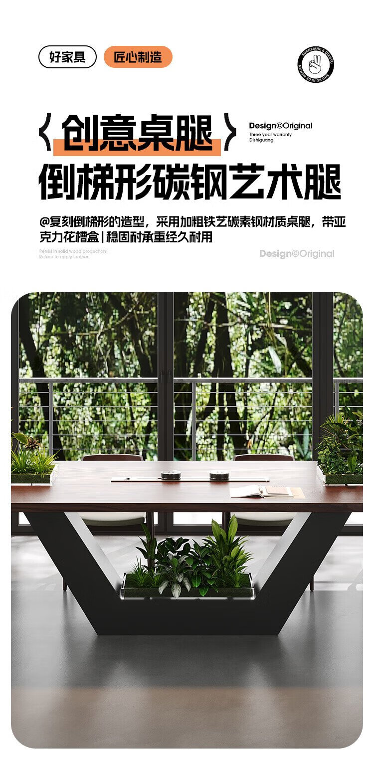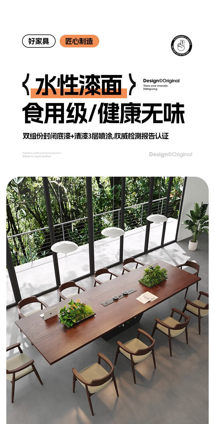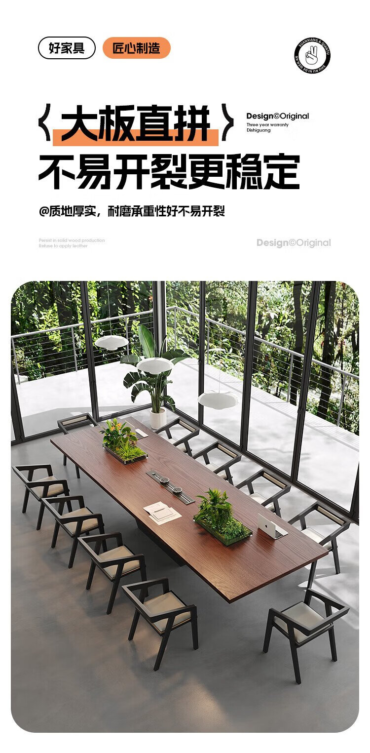 Oscarden large conference room table and chair combination, light luxury and high-end solid wood large table workbench with planter slots and embedded sockets, one table and ten chairs, 3m table + Hiroshima chairs*10