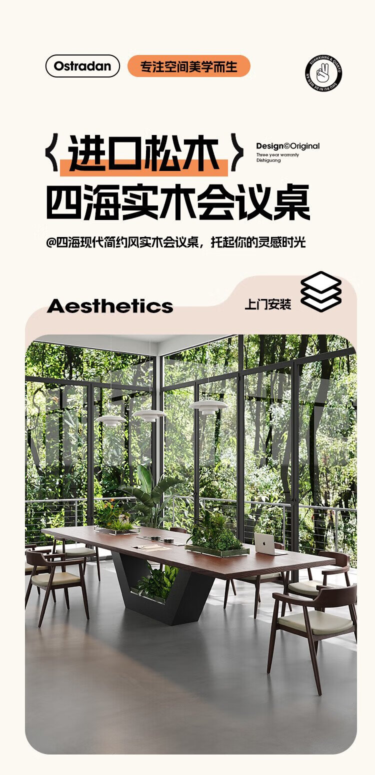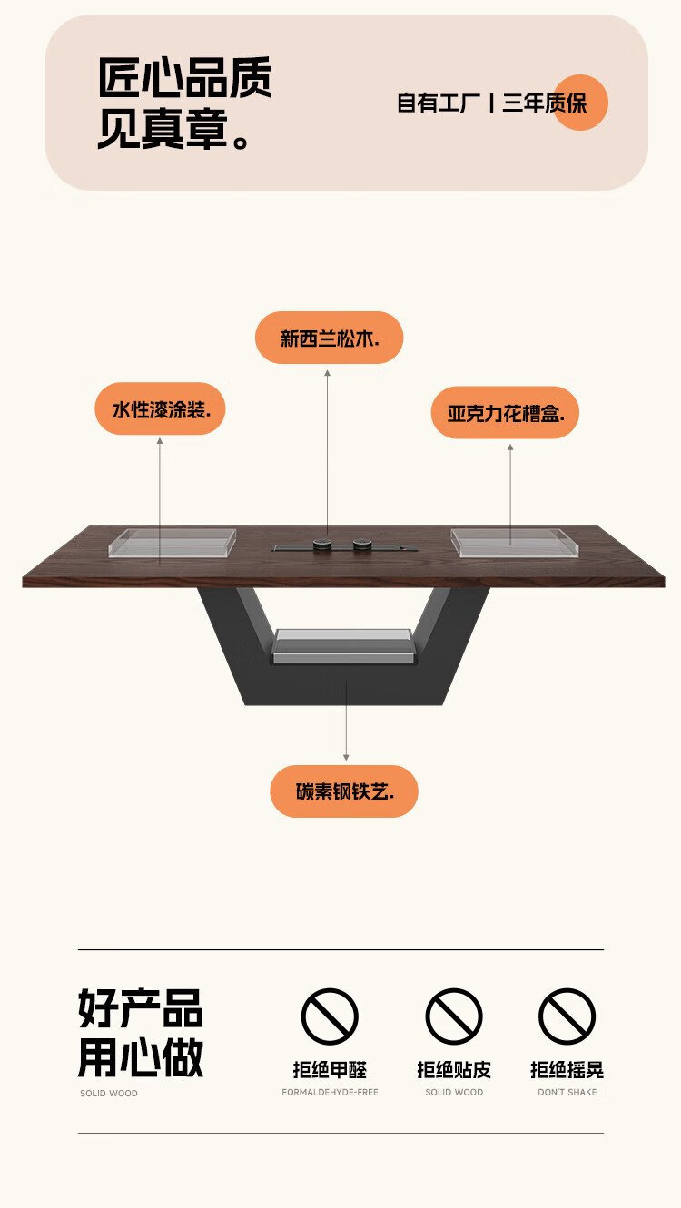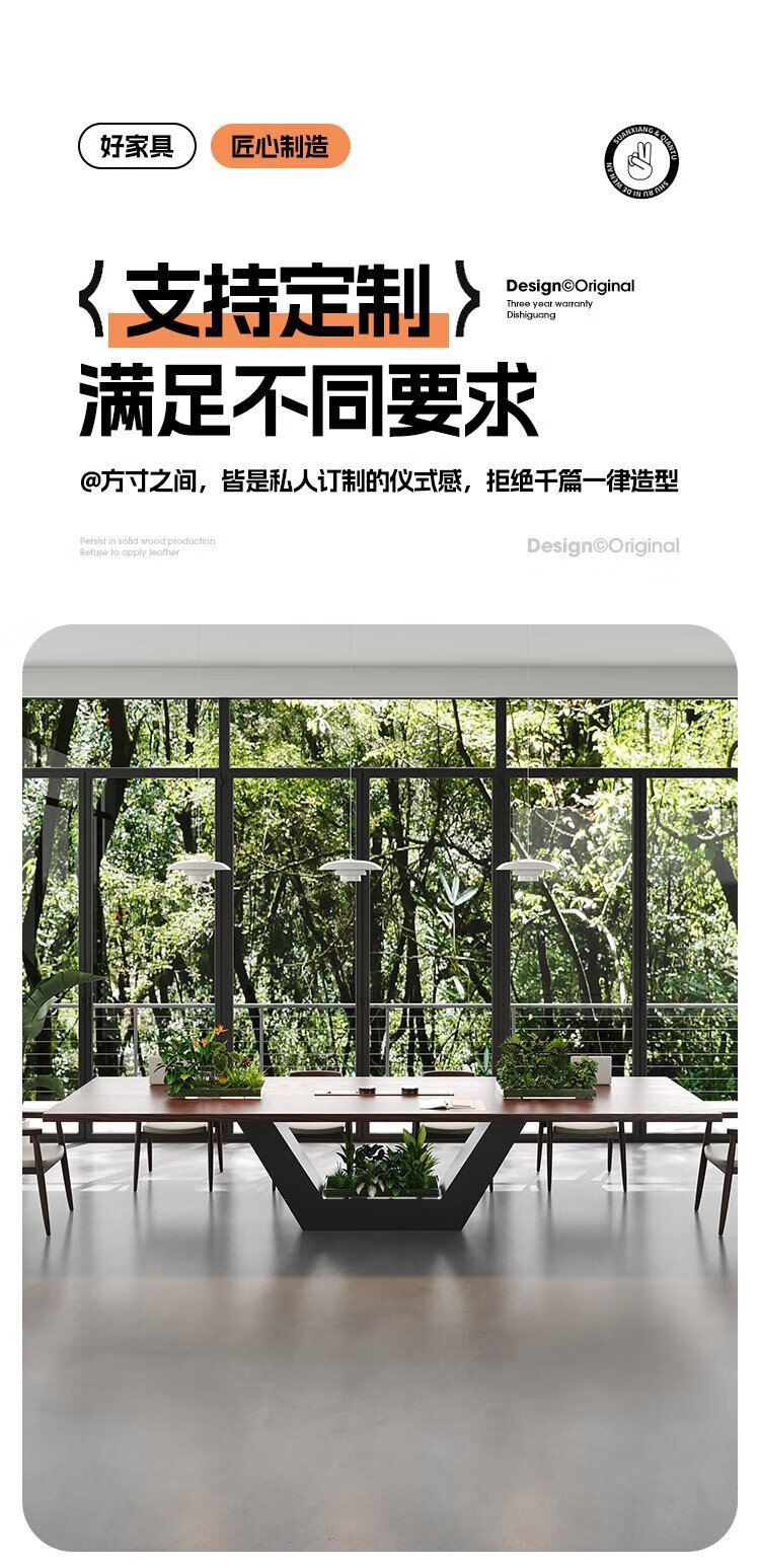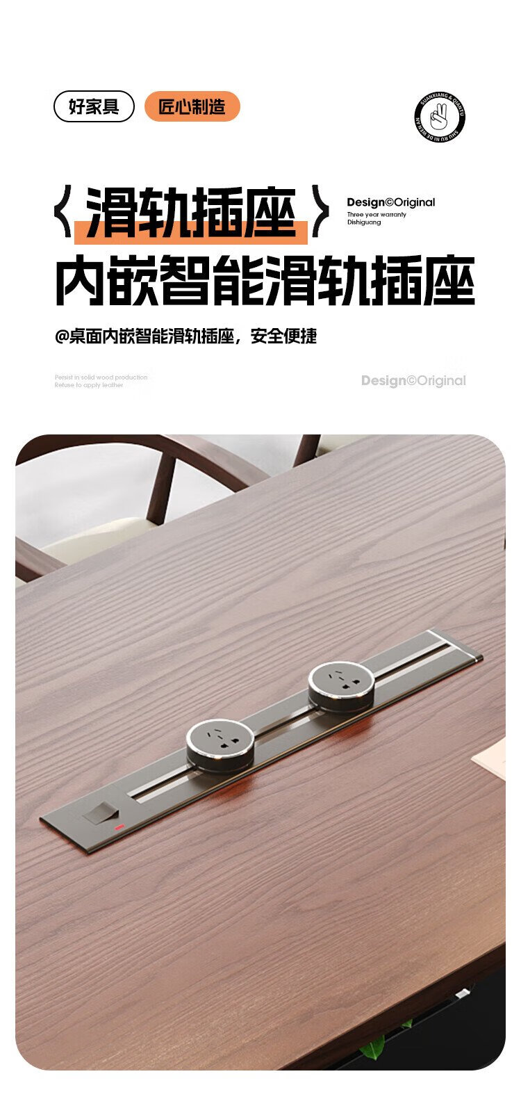 Oscarden large conference room table and chair combination, light luxury and high-end solid wood large table workbench with planter slots and embedded sockets, one table and ten chairs, 3m table + Hiroshima chairs*10