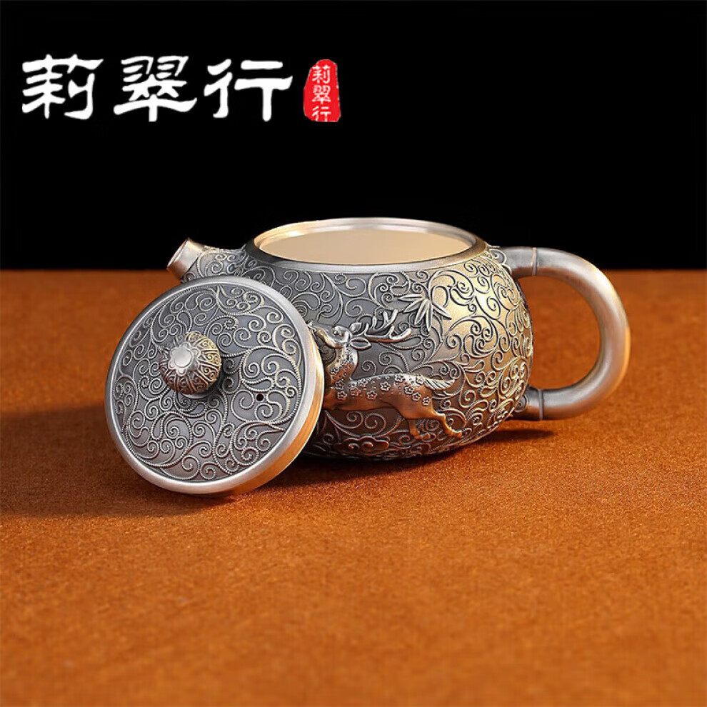 Li Cuixing 999 pure silver teapot sterling silver tea set handmade silver teapot Zhuilu about 298g 350ml (only 1 left)