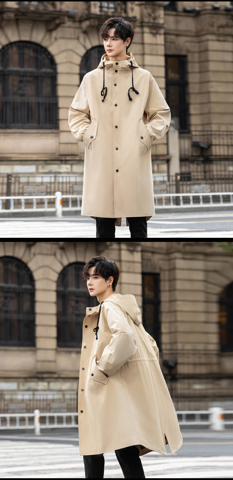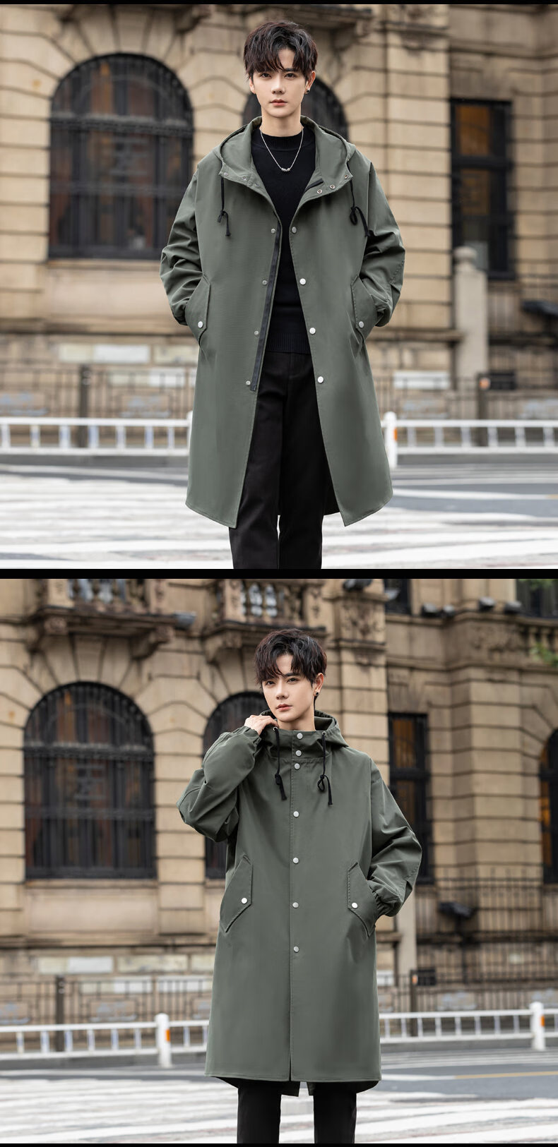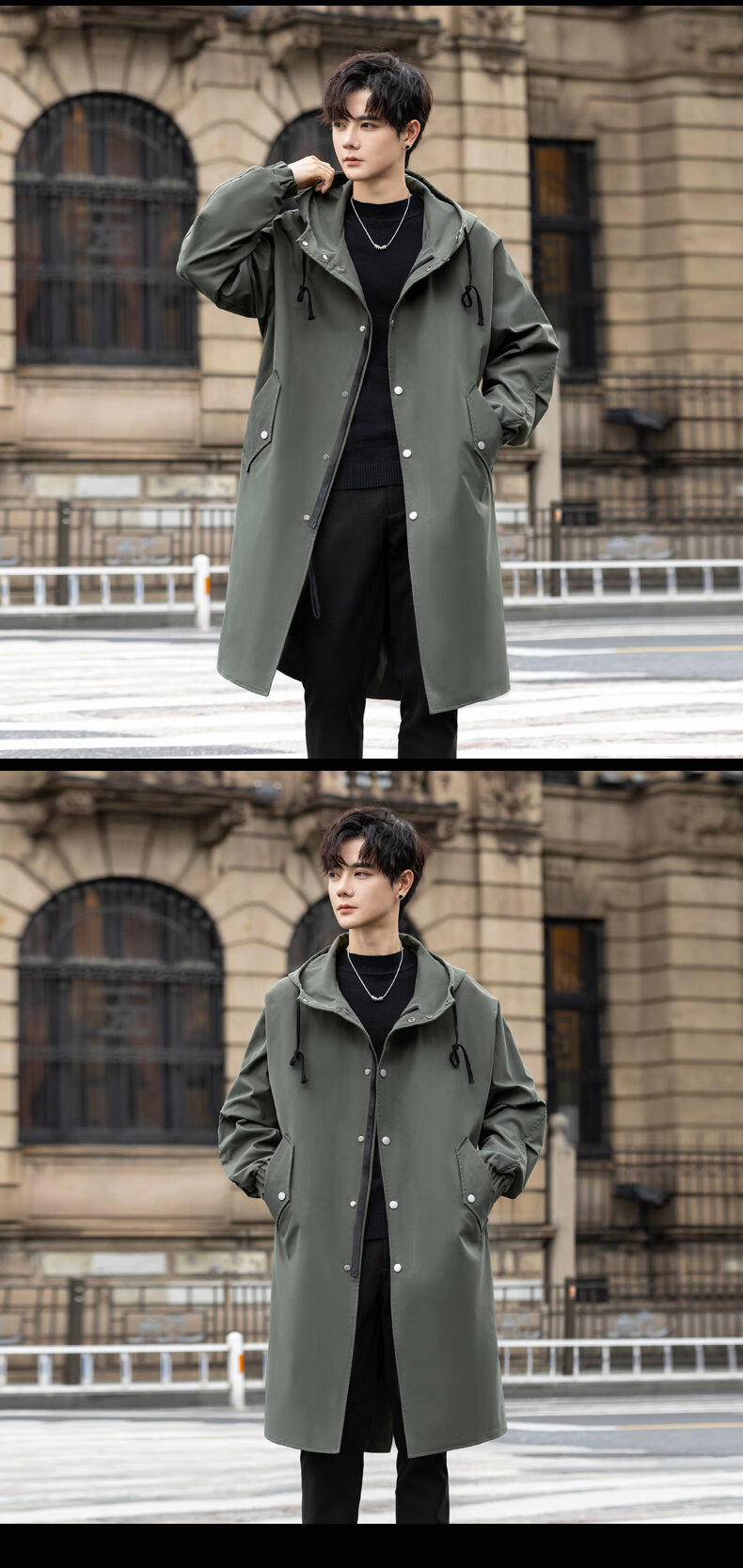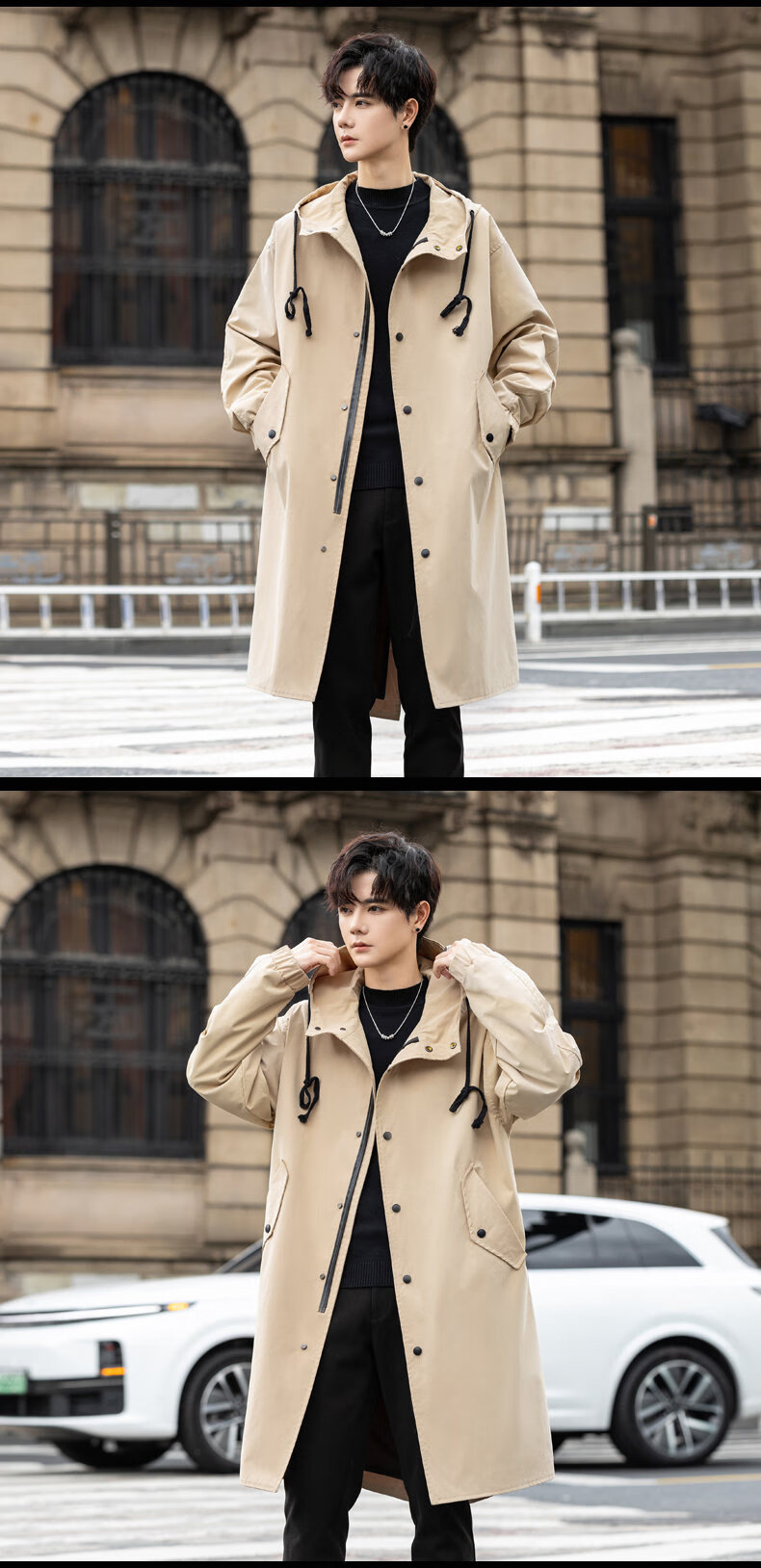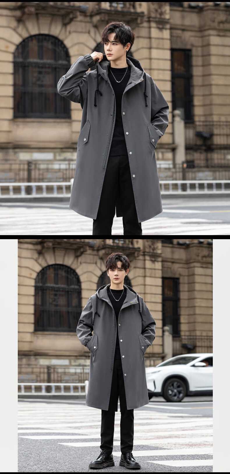 皮尔卡丹(pierre cardin)冲锋衣中长款过膝连帽风衣男春秋季薄外套秋冬季加绒加厚防寒大衣 黑色 S