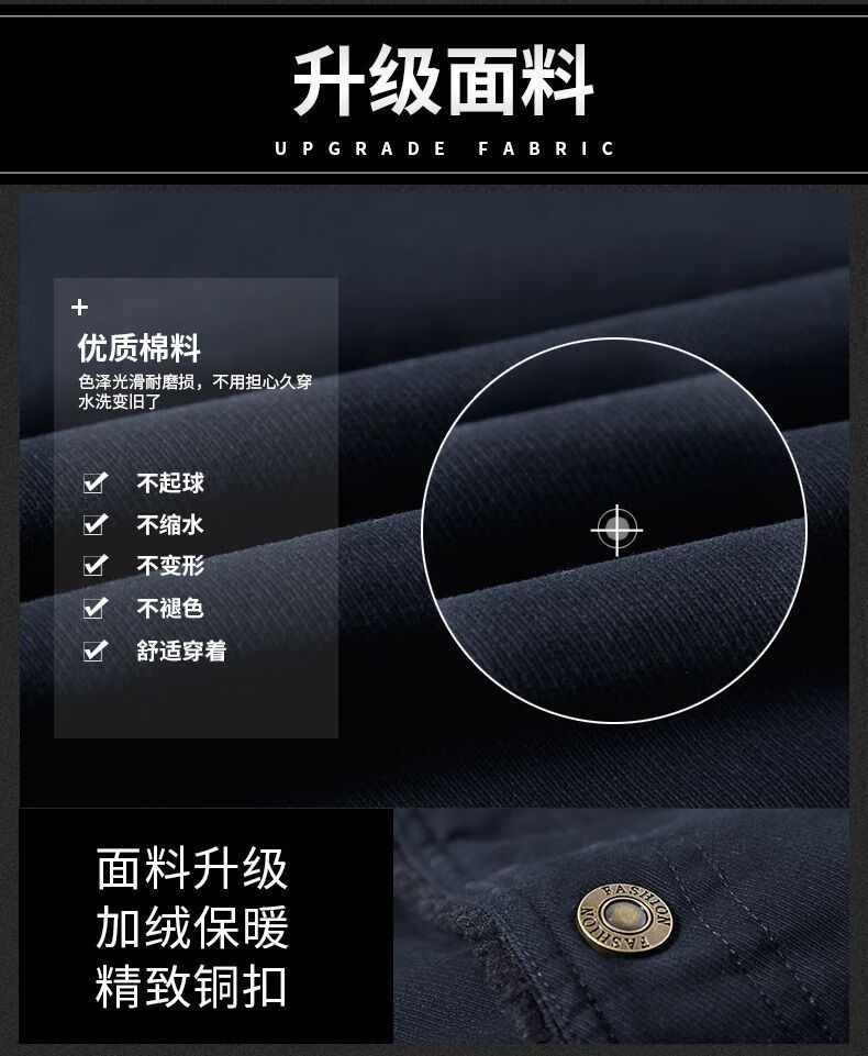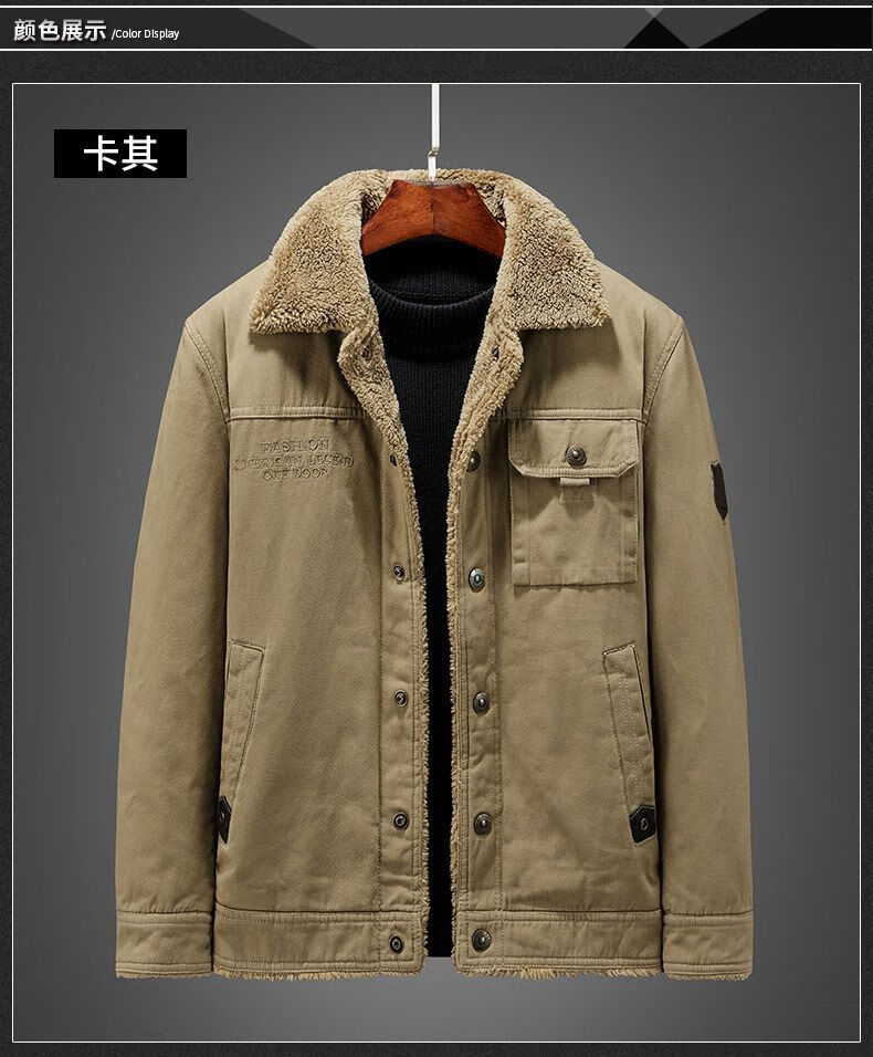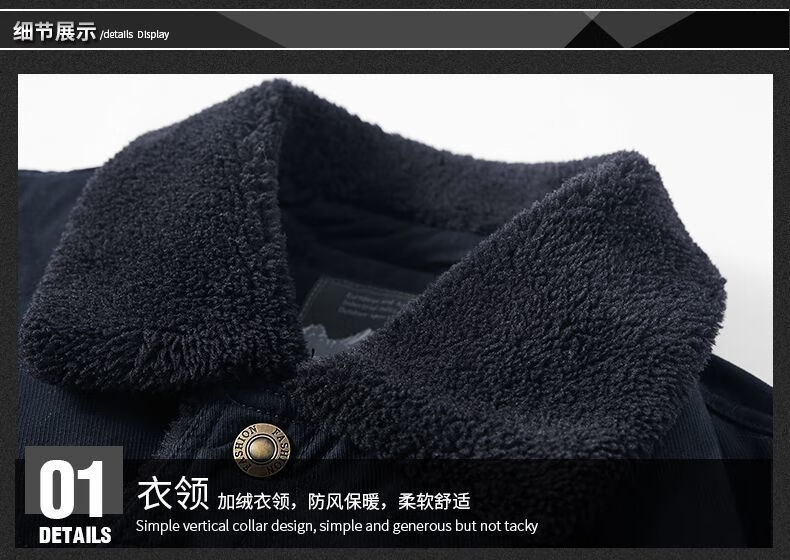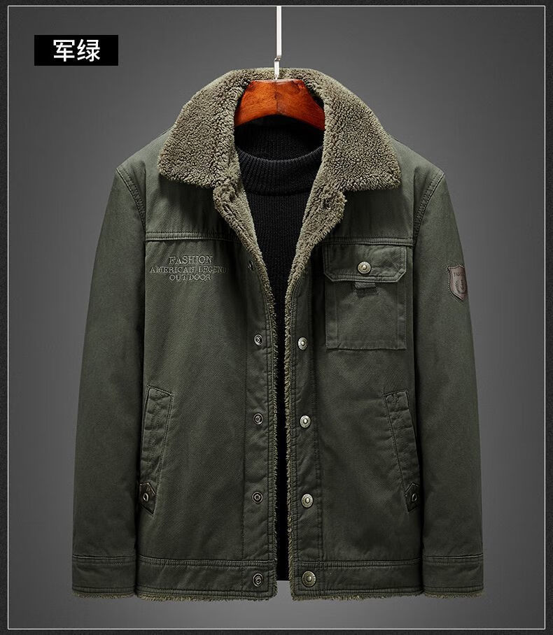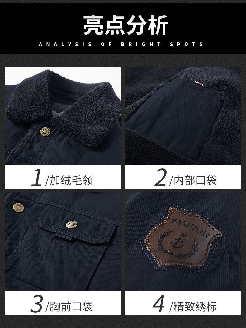 Hengyuanxiang Men's Autumn and Winter Shearling Jacket with Fur Collar Men's Velvet Thickened Loose Casual Jacket Warm Workwear Cotton Jacket Velvet Thickened Navy 316 4XL 180-195Jin Jin equals 0.5 kg