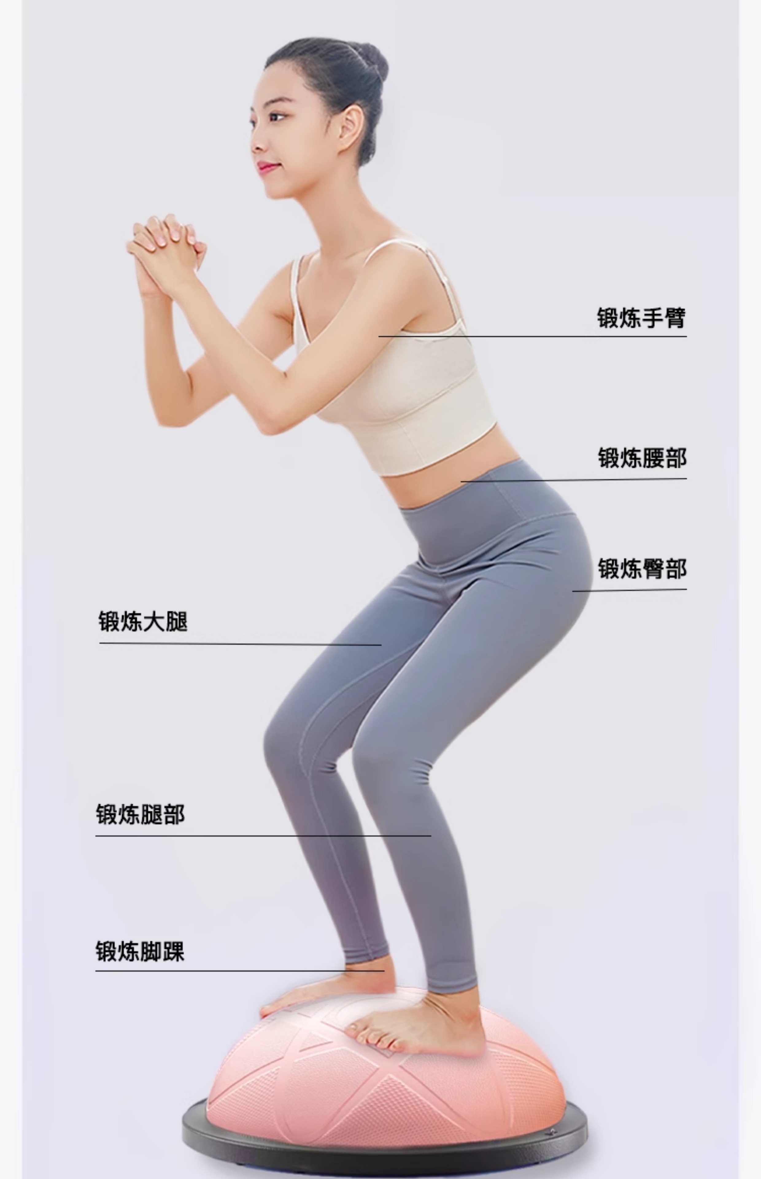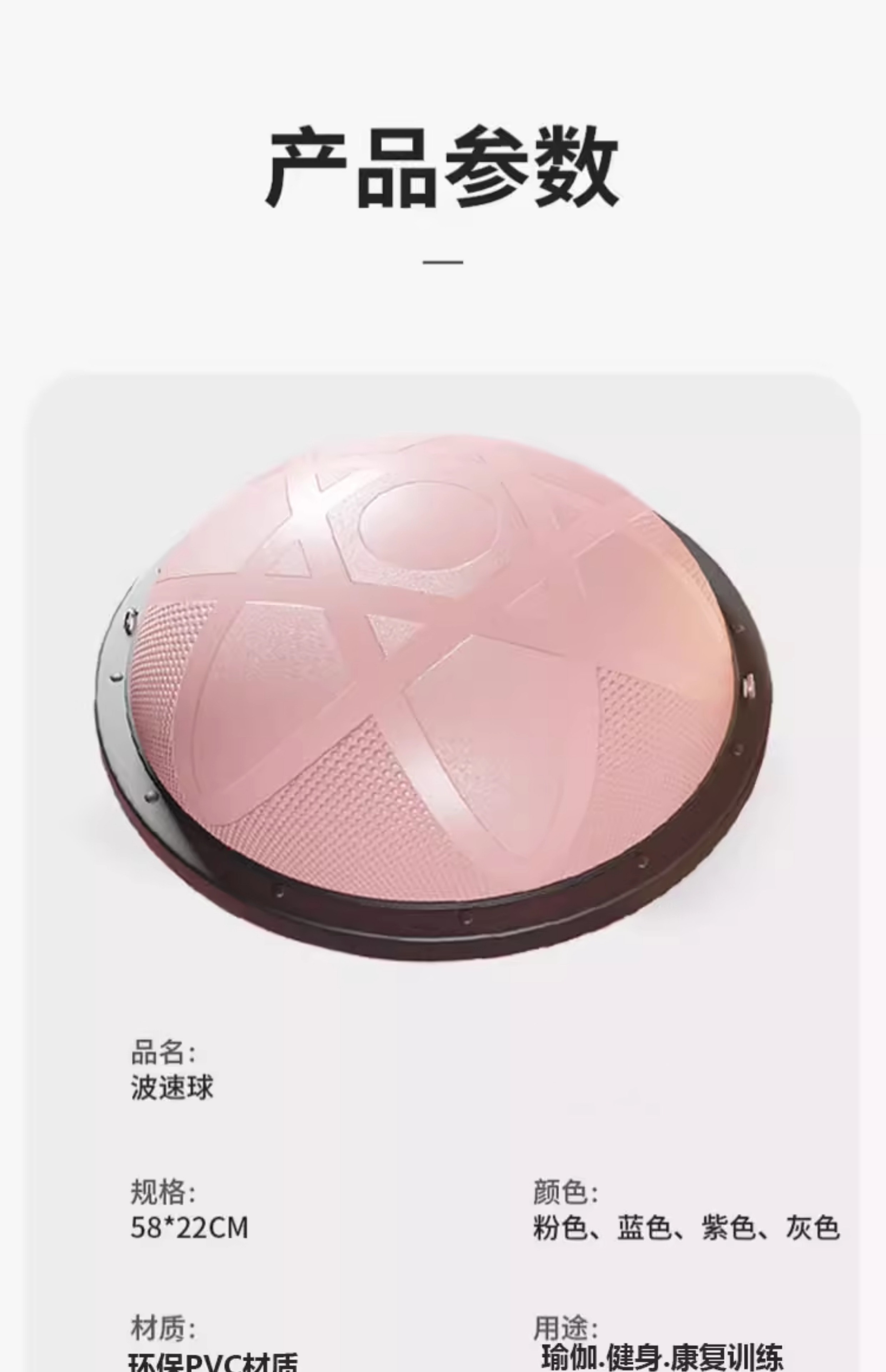 He Jiagong wave speed ball semicircle balance yoga ball home running fitness hemisphere Pilates Bobi ball Persian training u star pink 58cm