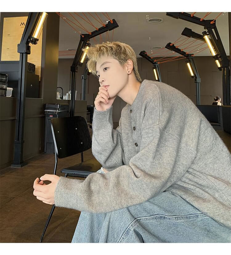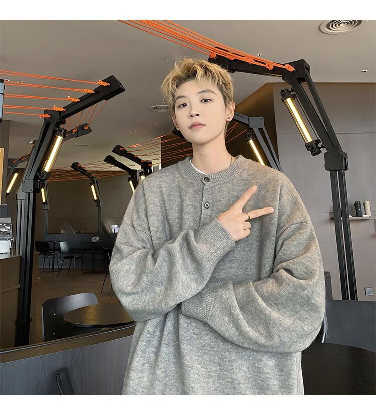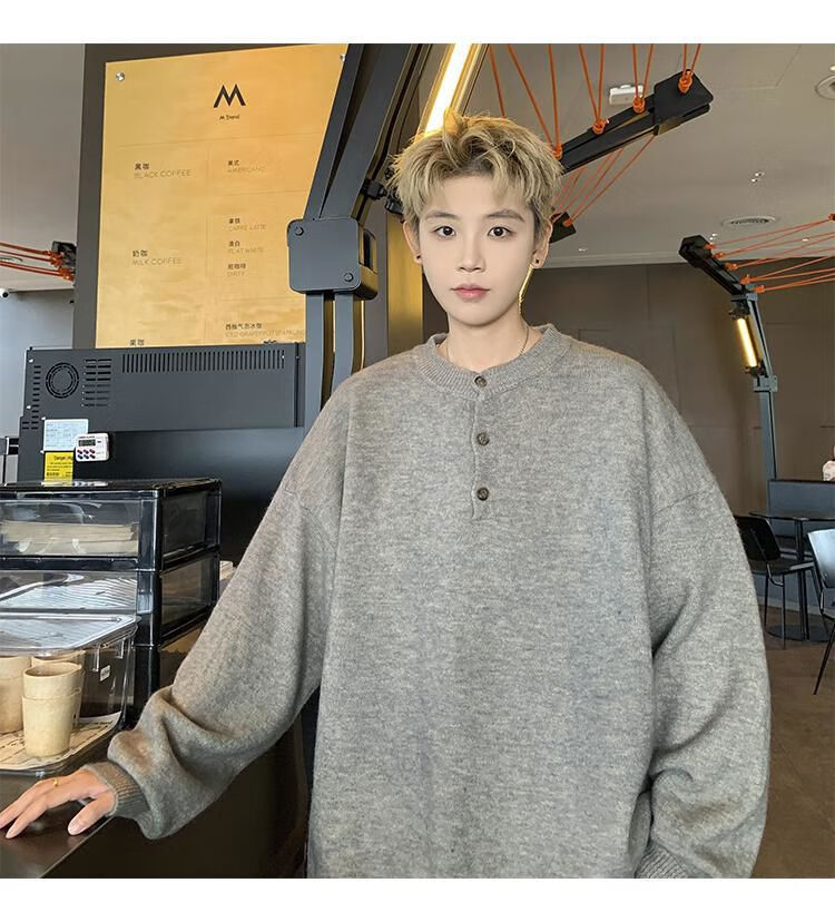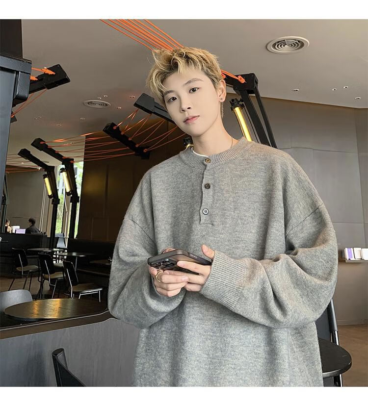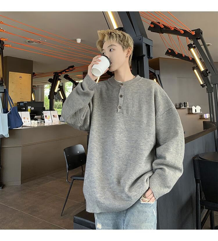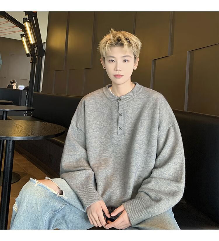 Xiaohongshu's same style gray American Henry collar sweater men's winter lazy style bottoming sweater cleanf light gray Henry collar M M95-115Jin Jin is equal to 0.5 kg
