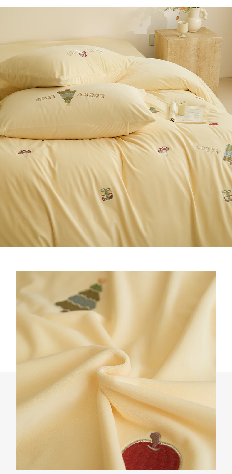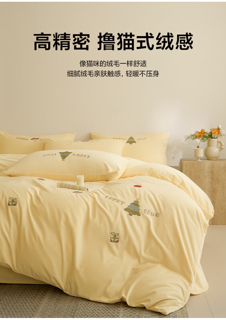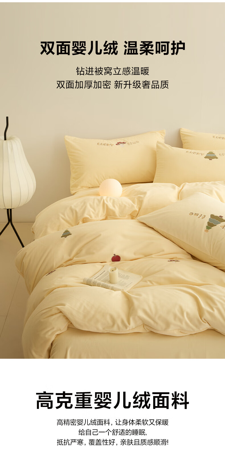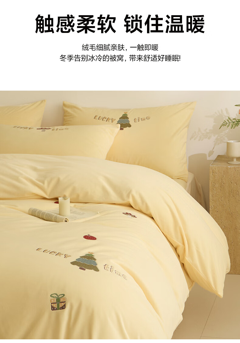 Yalu Class A baby milk velvet four-piece set double-sided velvet winter thickened warm coral velvet sheet quilt cover bedding Lucky Tree-Light Blue Thickened Class A maternal and infant grade milk velvet bed sheet style 1.8m four-piece quilt cover 200x230cm
