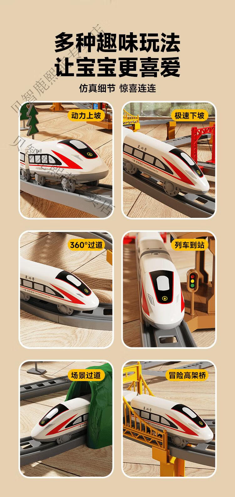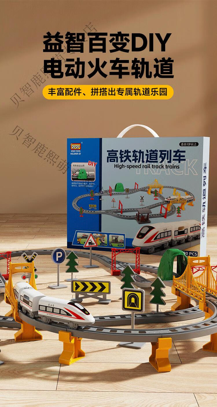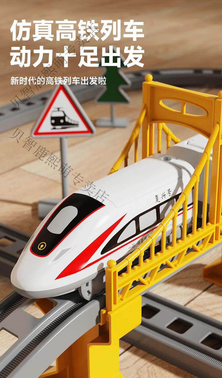 Beizhilu children's electric train with track high-speed train Fuxing train Harmony model car boy toy 119-piece set - great value double layer - double car battery version extra large electric track