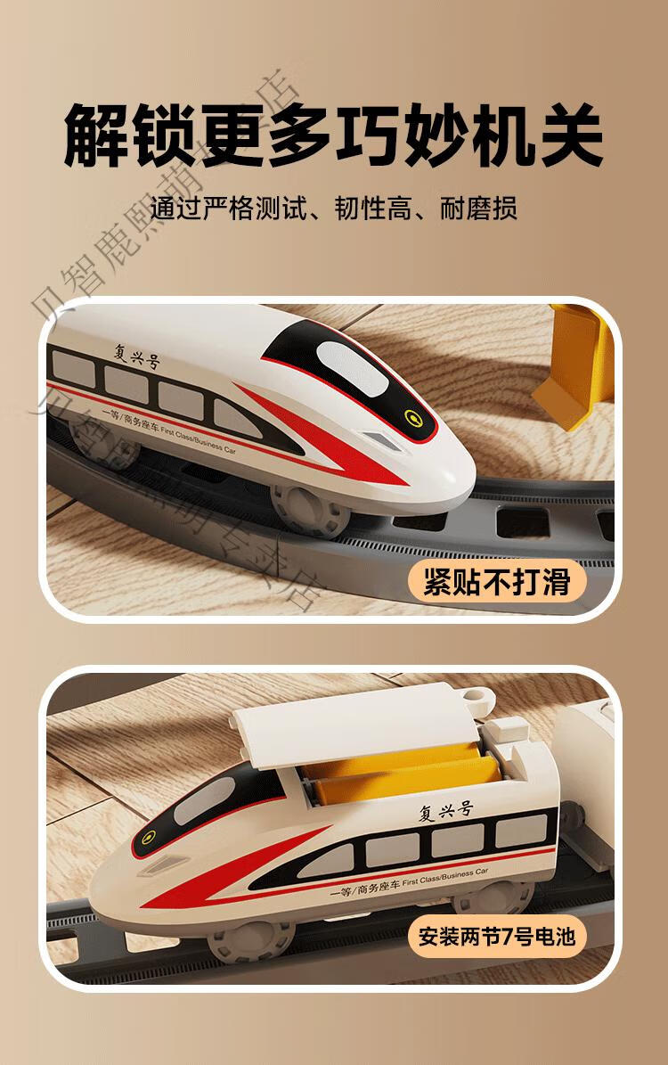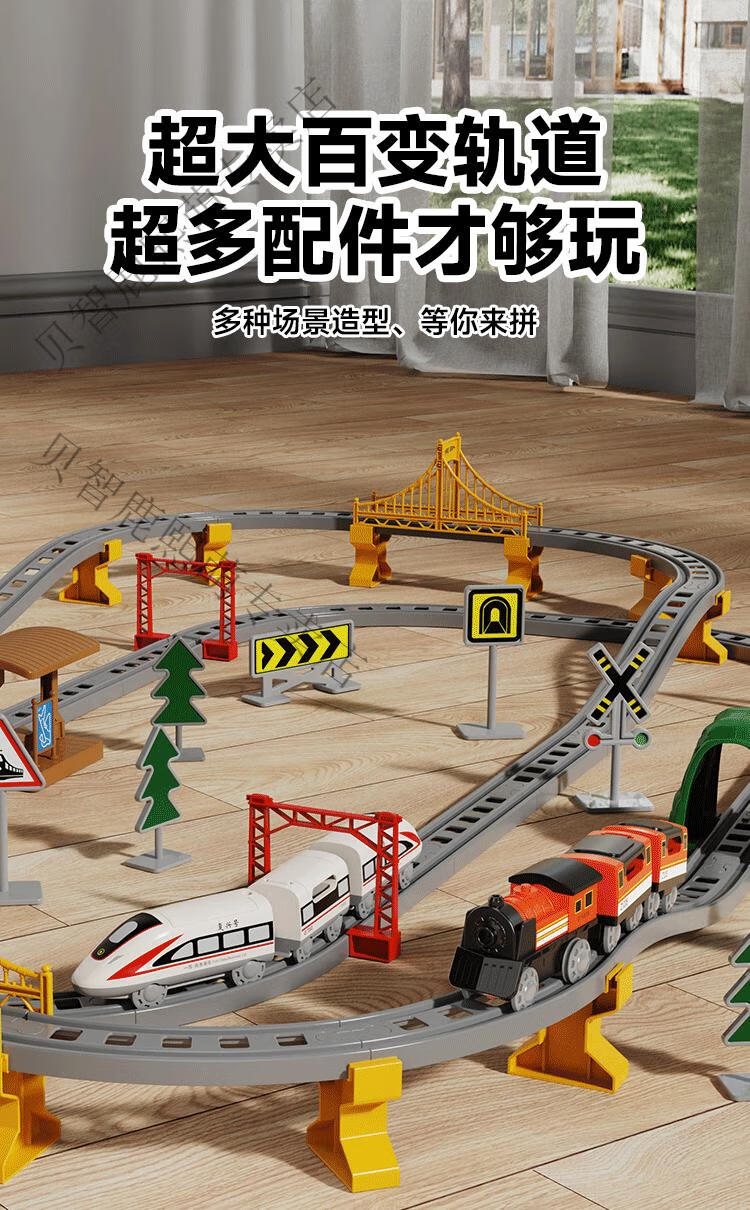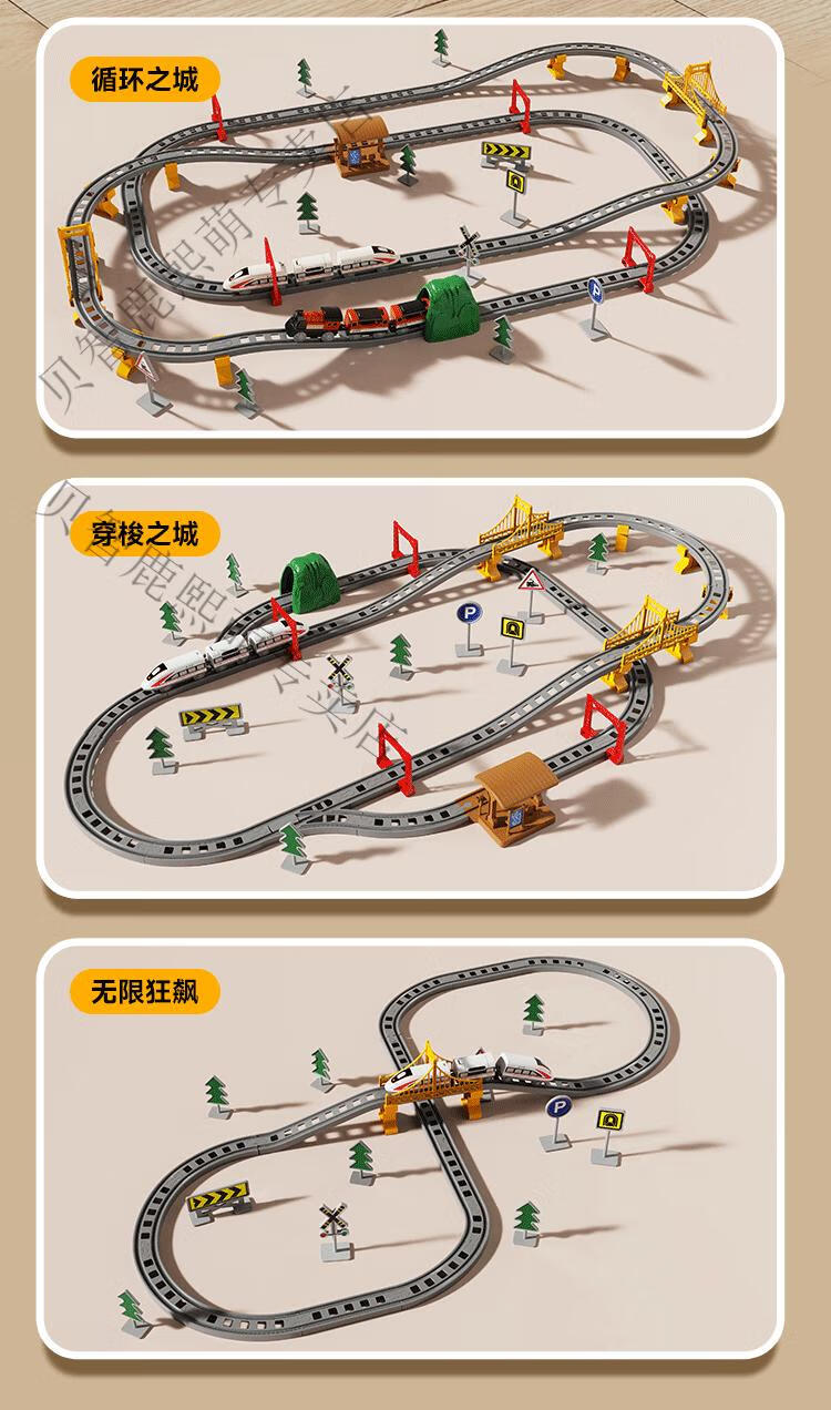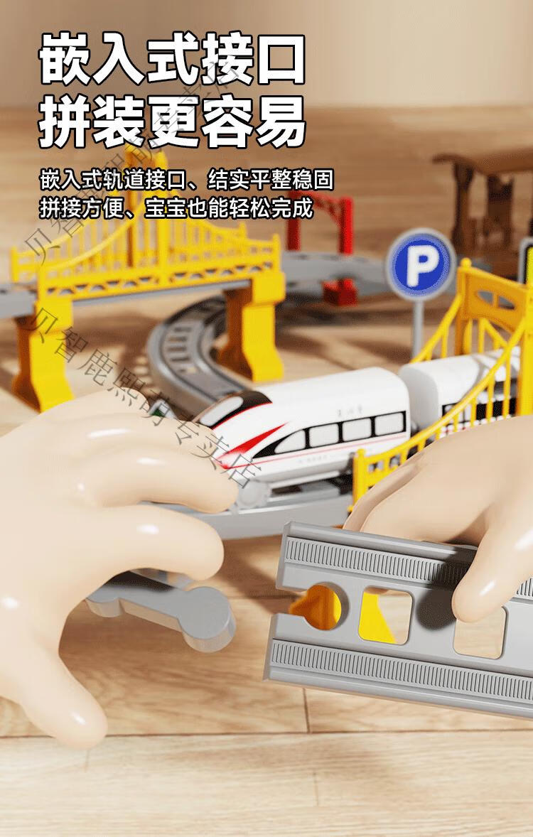 Beizhilu children's electric train with track high-speed train Fuxing train Harmony model car boy toy 119-piece set - great value double layer - double car battery version extra large electric track