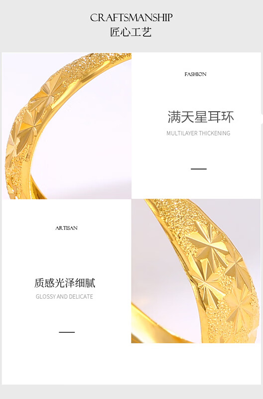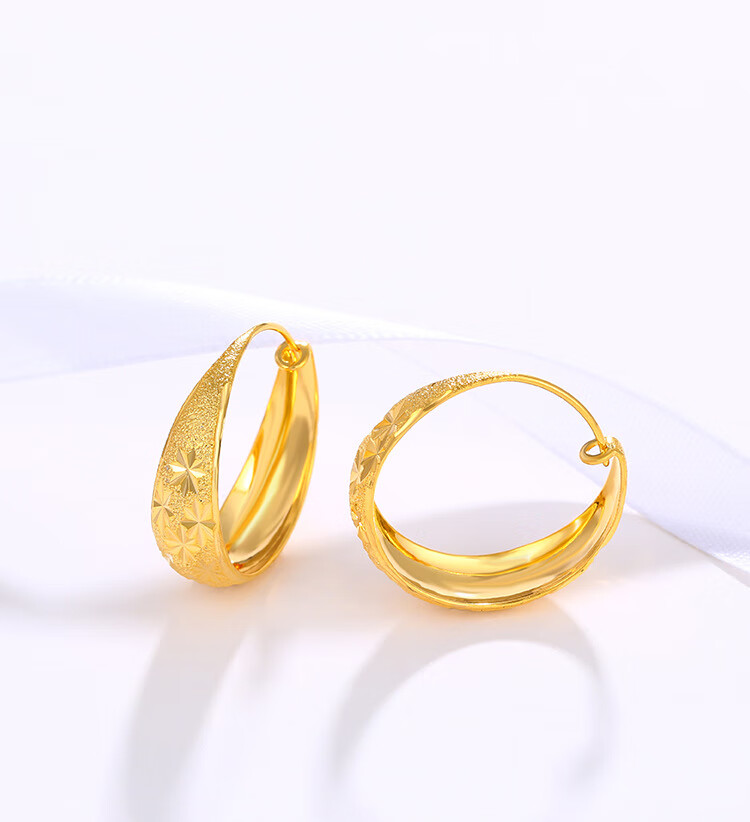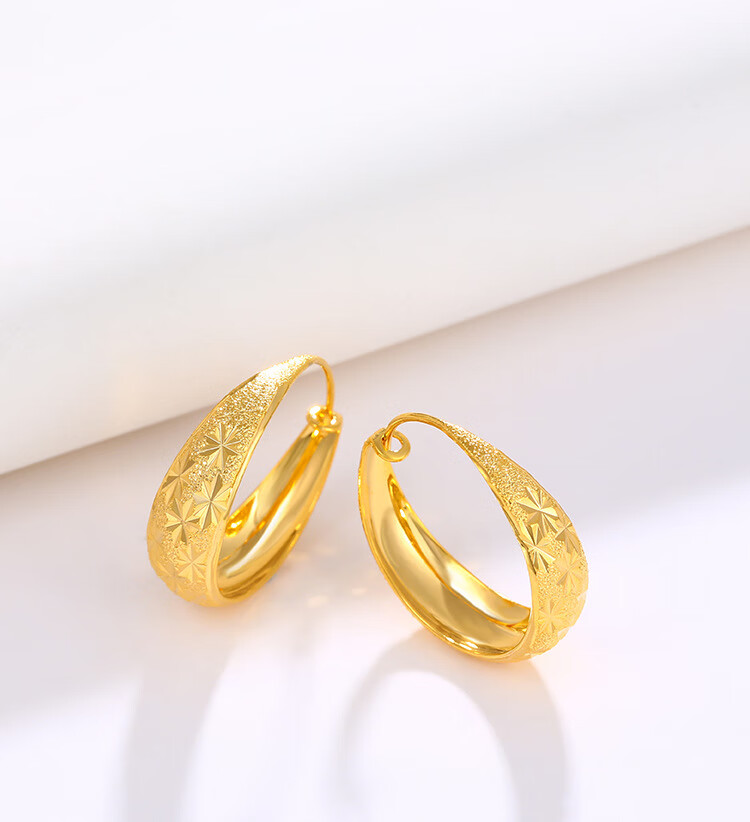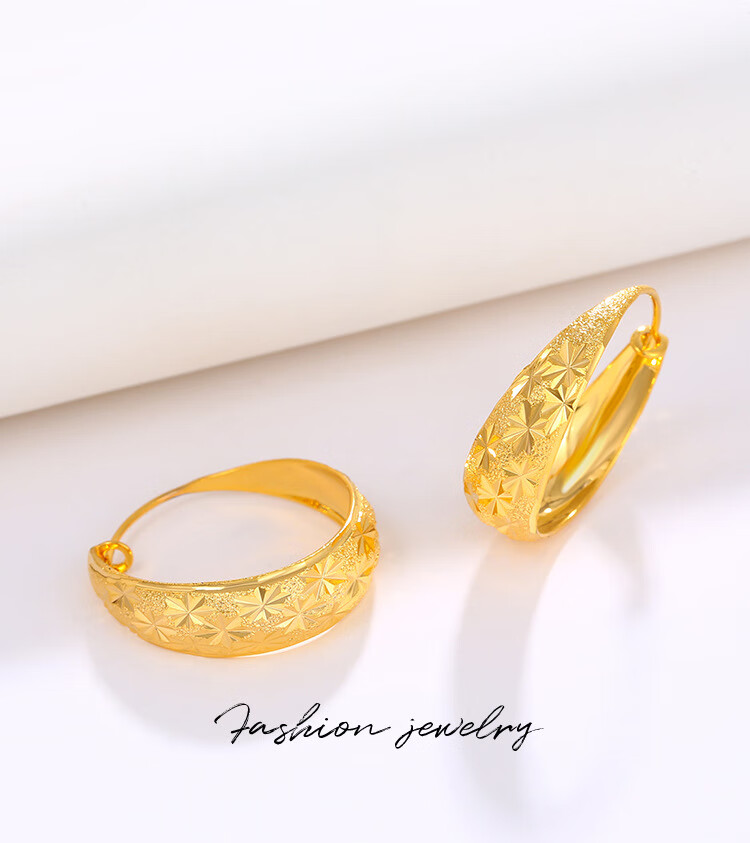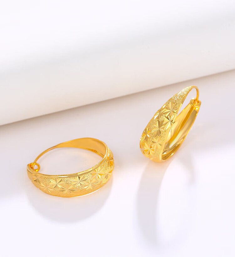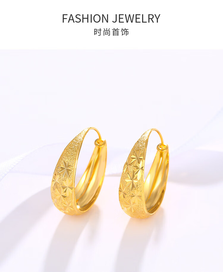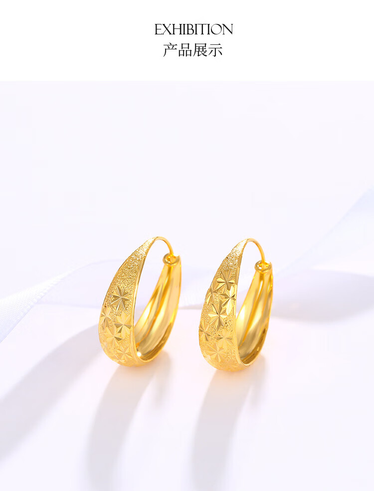 Puman Zhuji 24K gold earrings for women, baby's breath earrings, frosted ear buckles, retro, wedding gifts for mothers, new products, a pair of baby's breath earrings, gift box