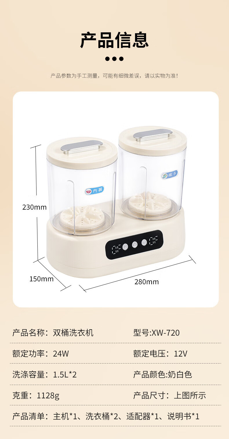 Xiaomi series double-bucket laundry cup sock washing machine fully automatic underwear and underwear small wash and remove all-in-one mini washing machine 3L laundry underwear and socks washed separately for healthier